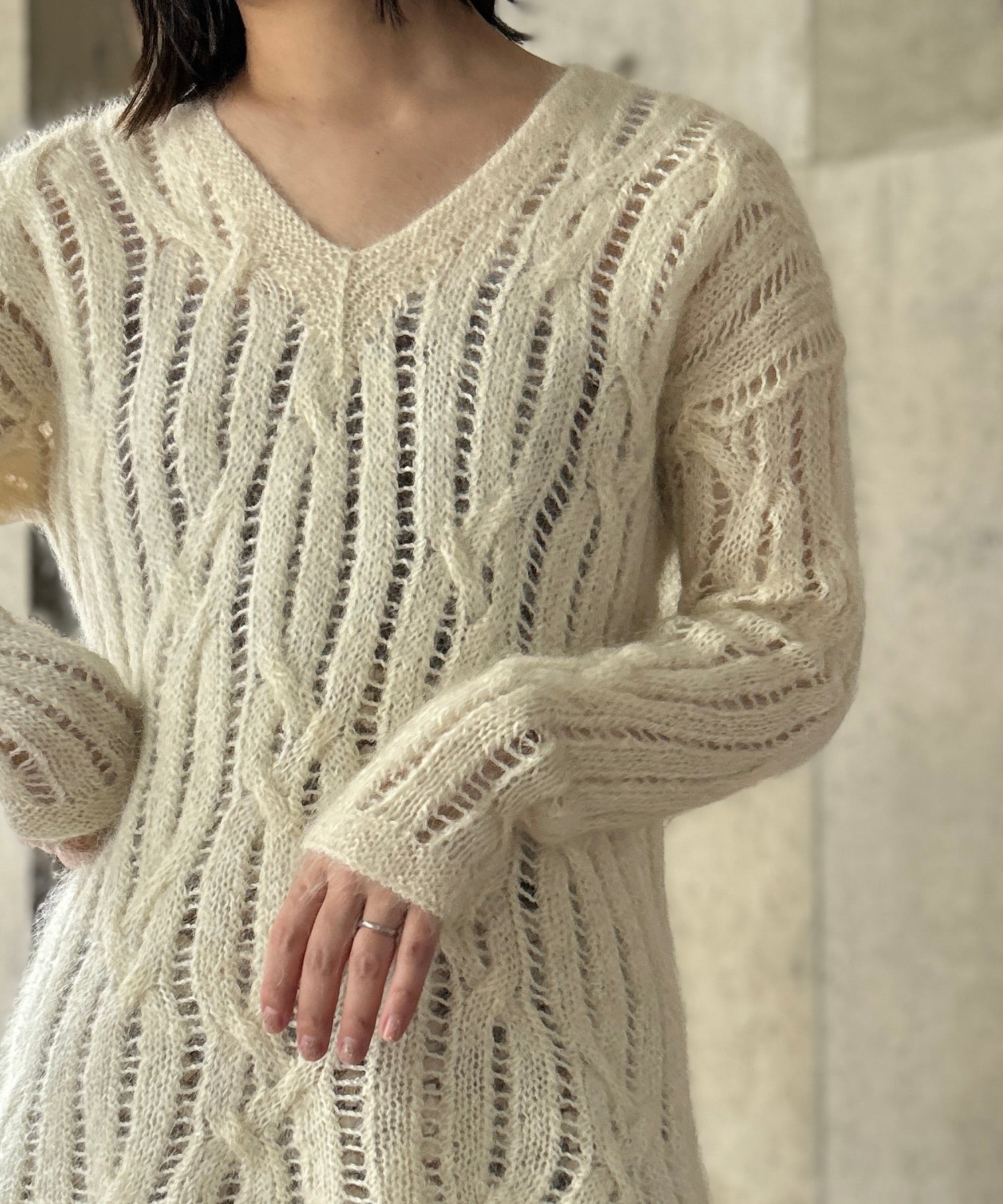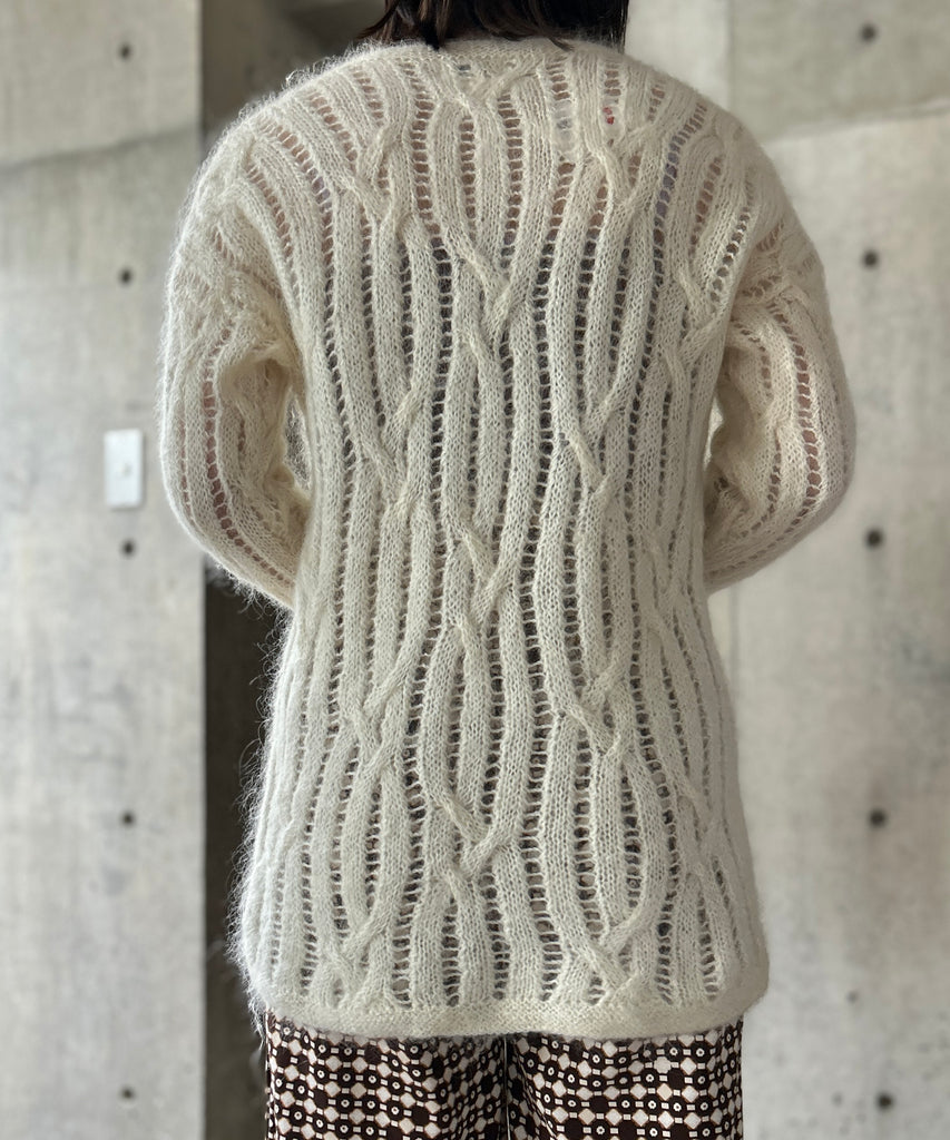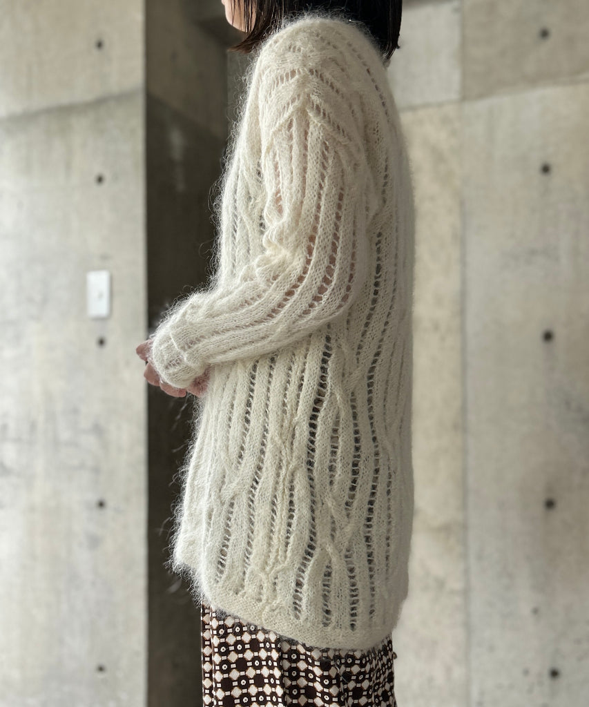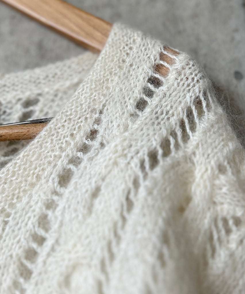 合わせやすい生成りカラー、少し肌が透けるシアーな生地感が女性らしい雰囲気。