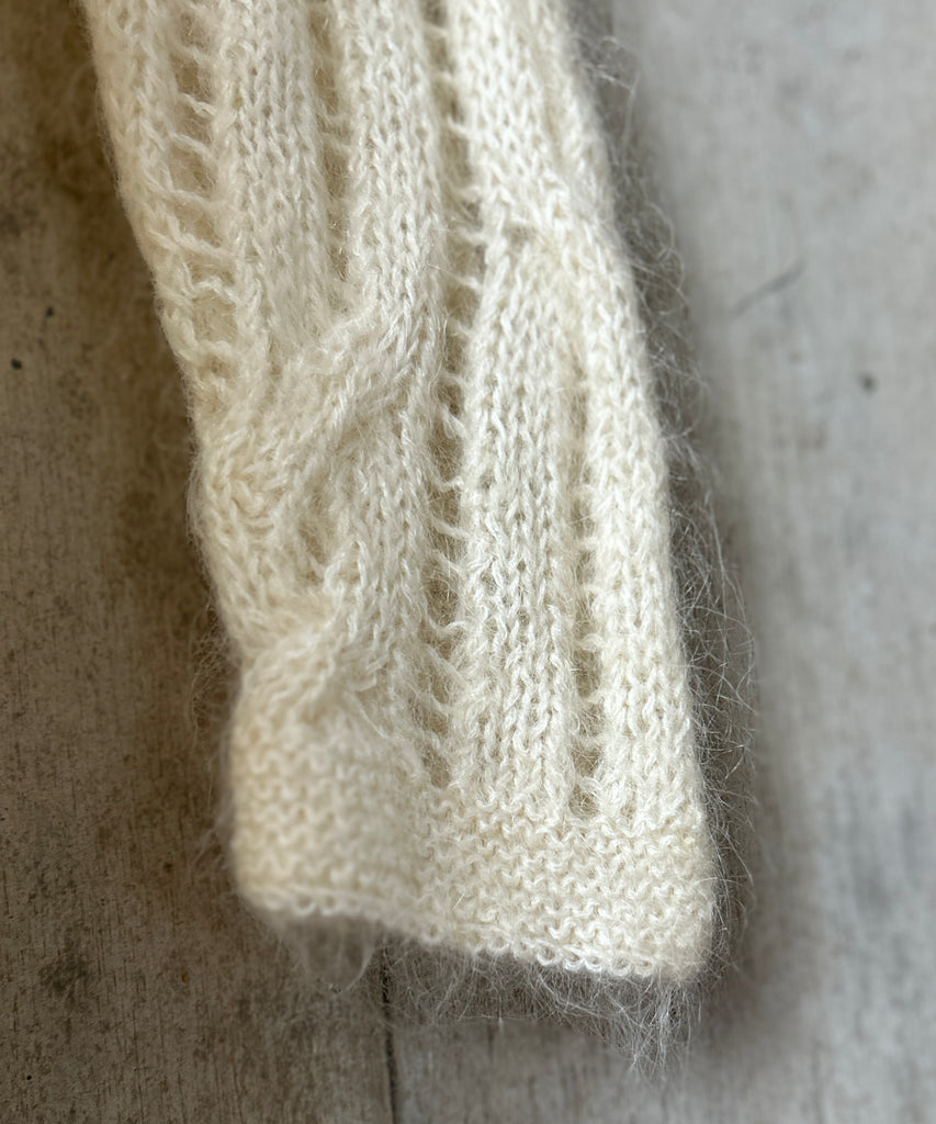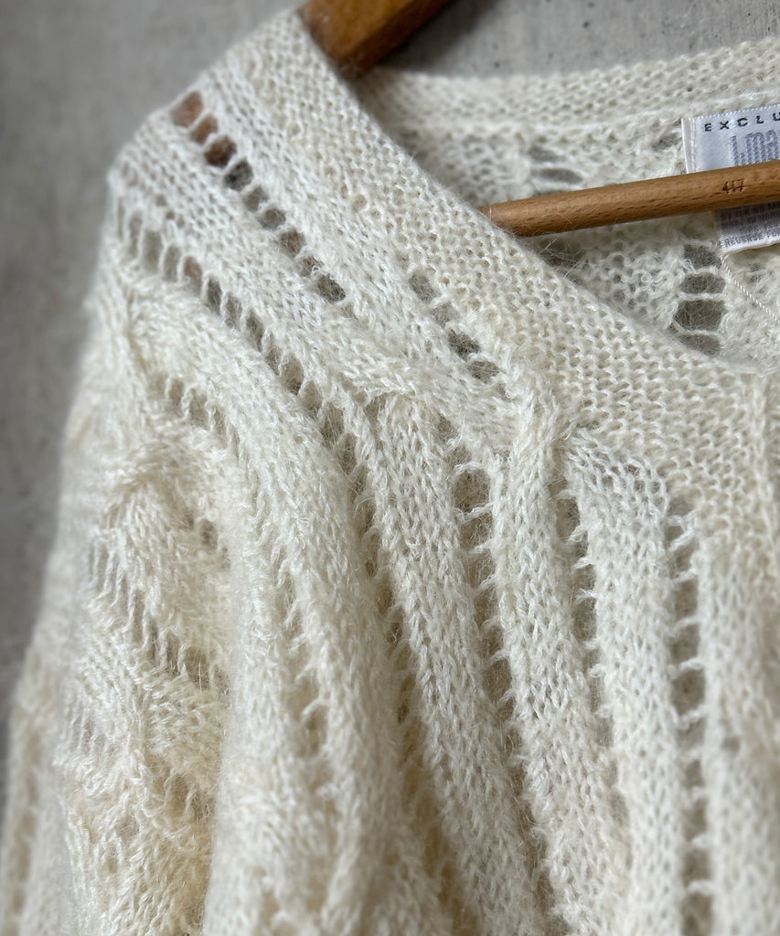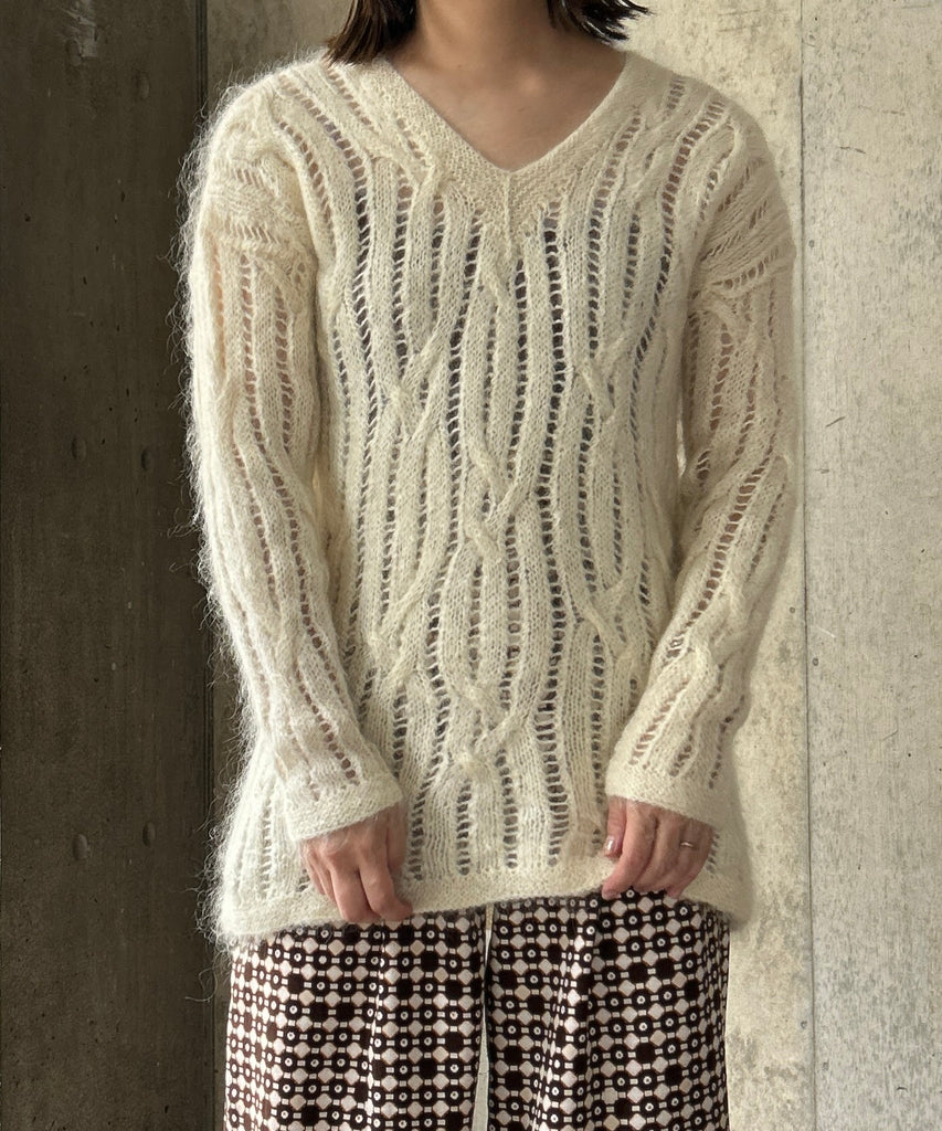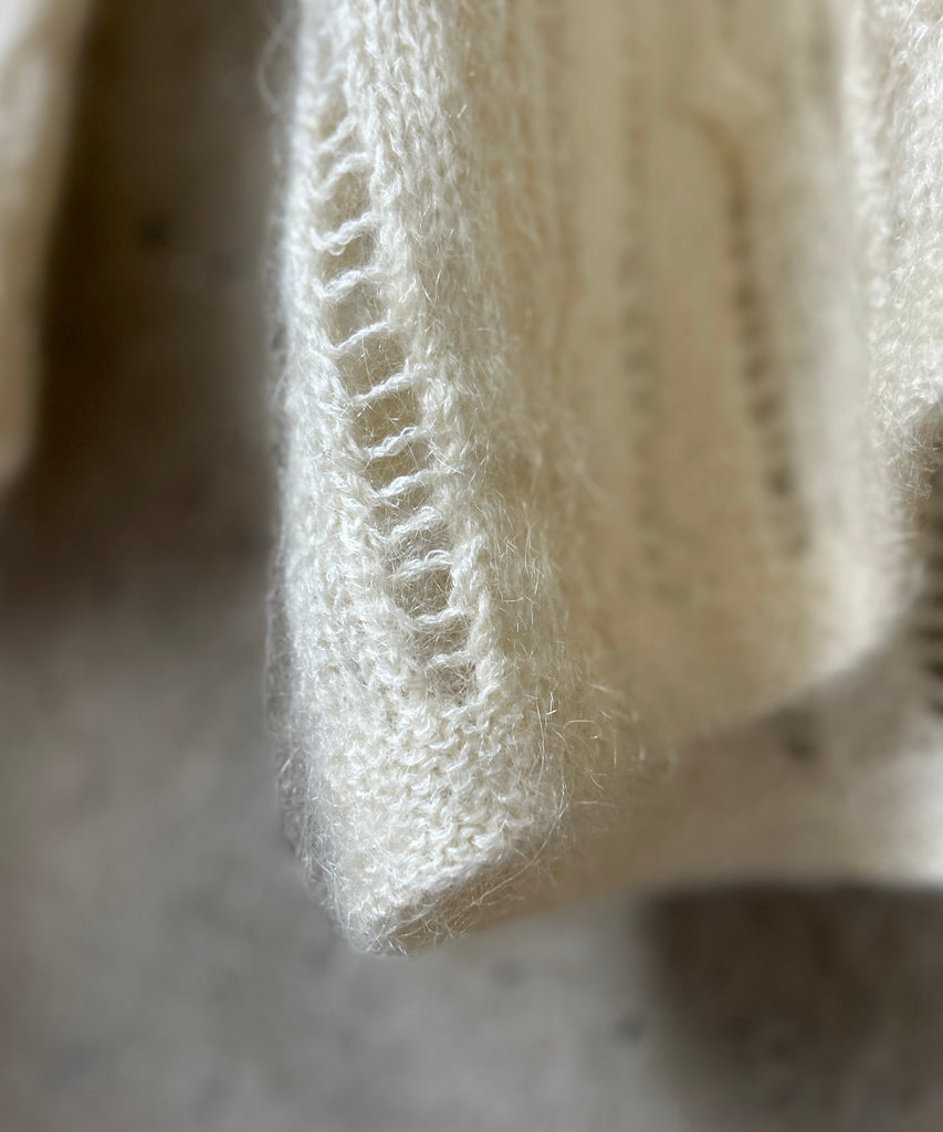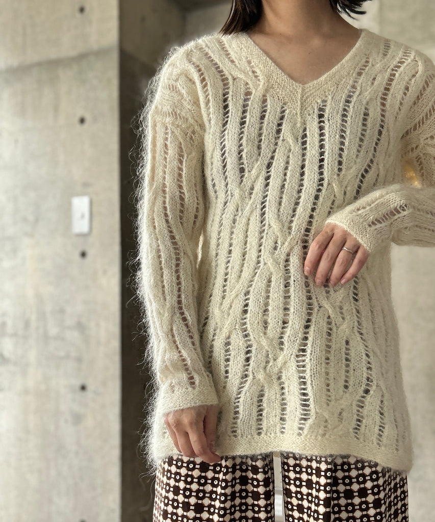 合わせやすい生成りカラー、少し肌が透けるシアーな生地感が女性らしい雰囲気。