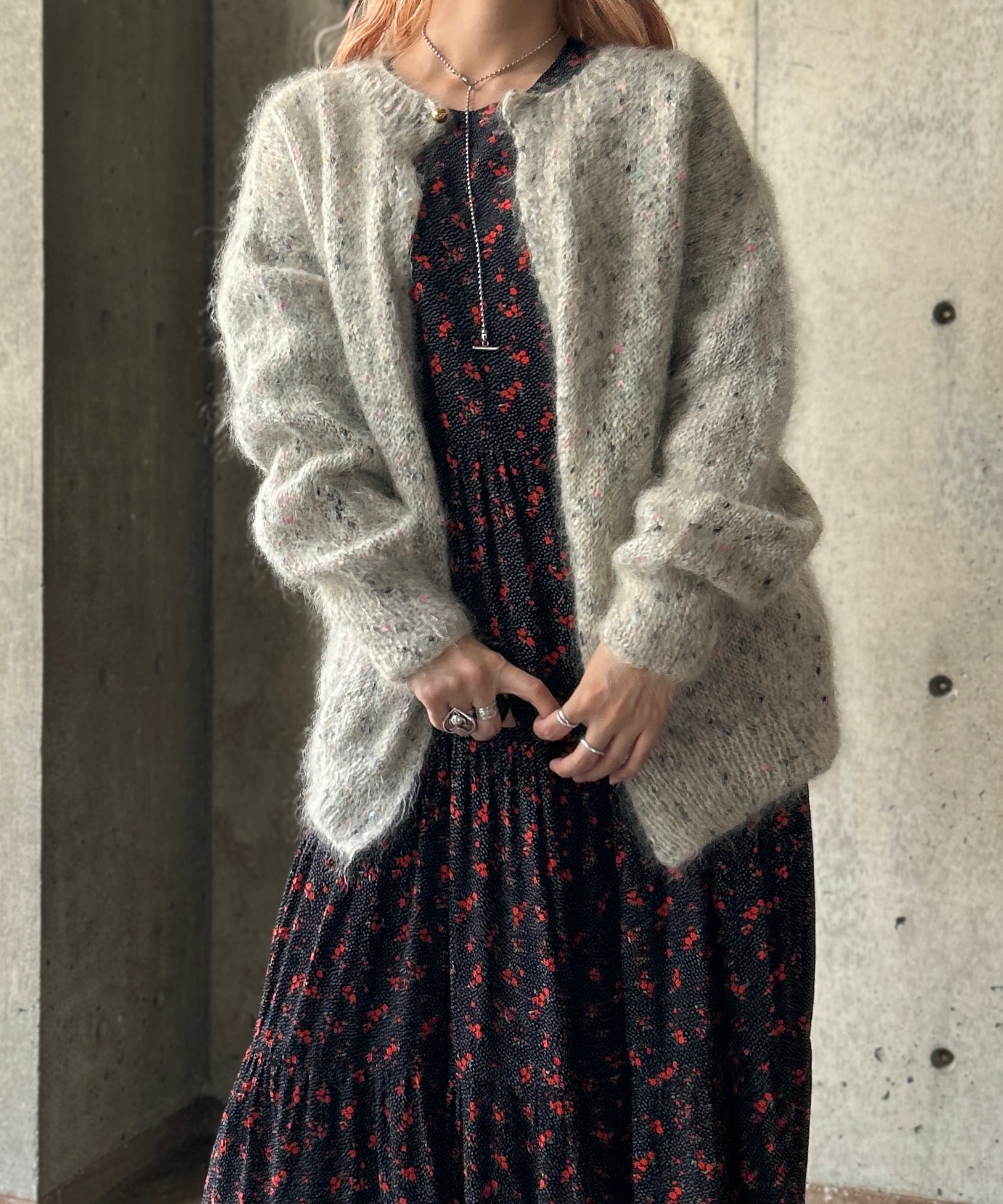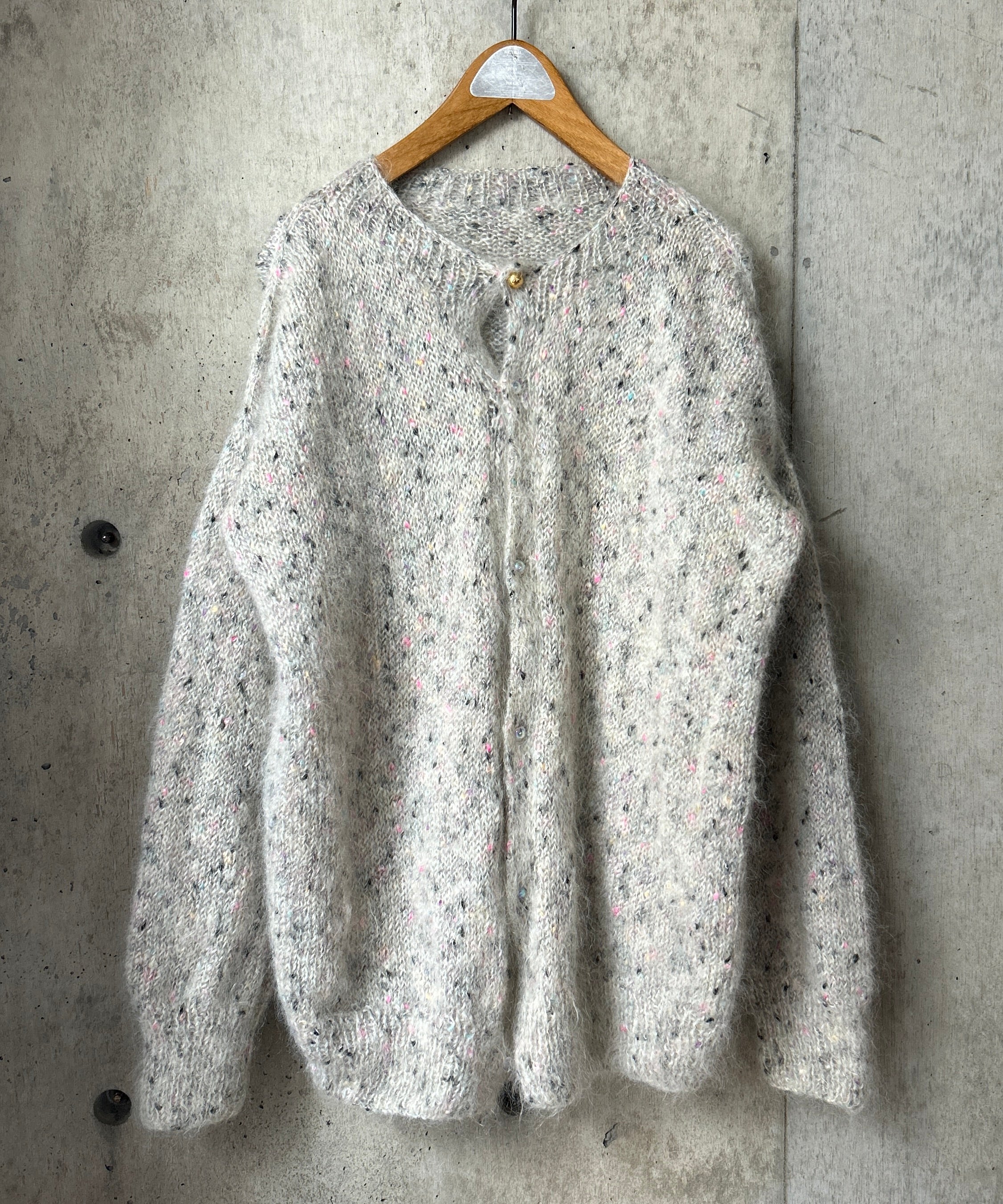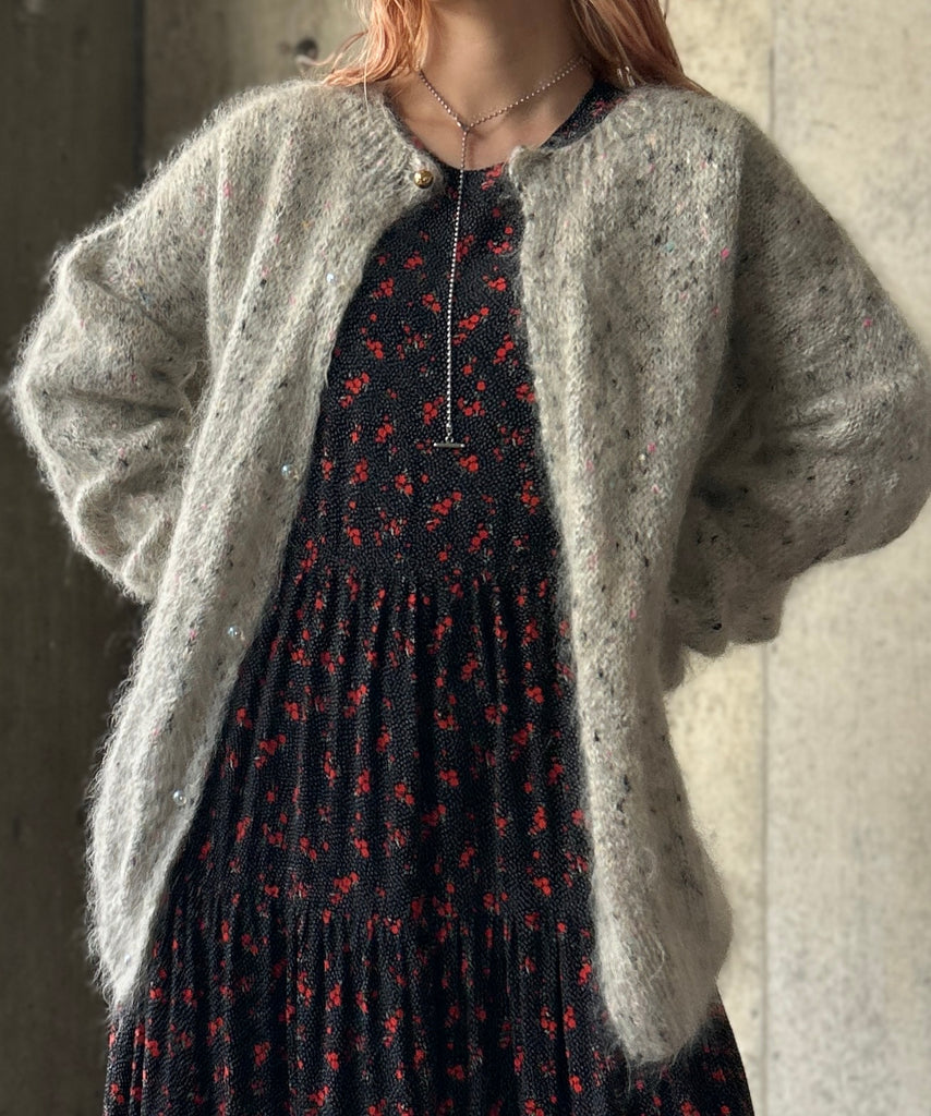 ミックスカラーのモヘアニットカーディガン。