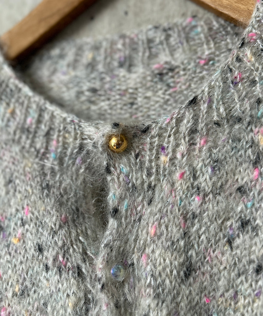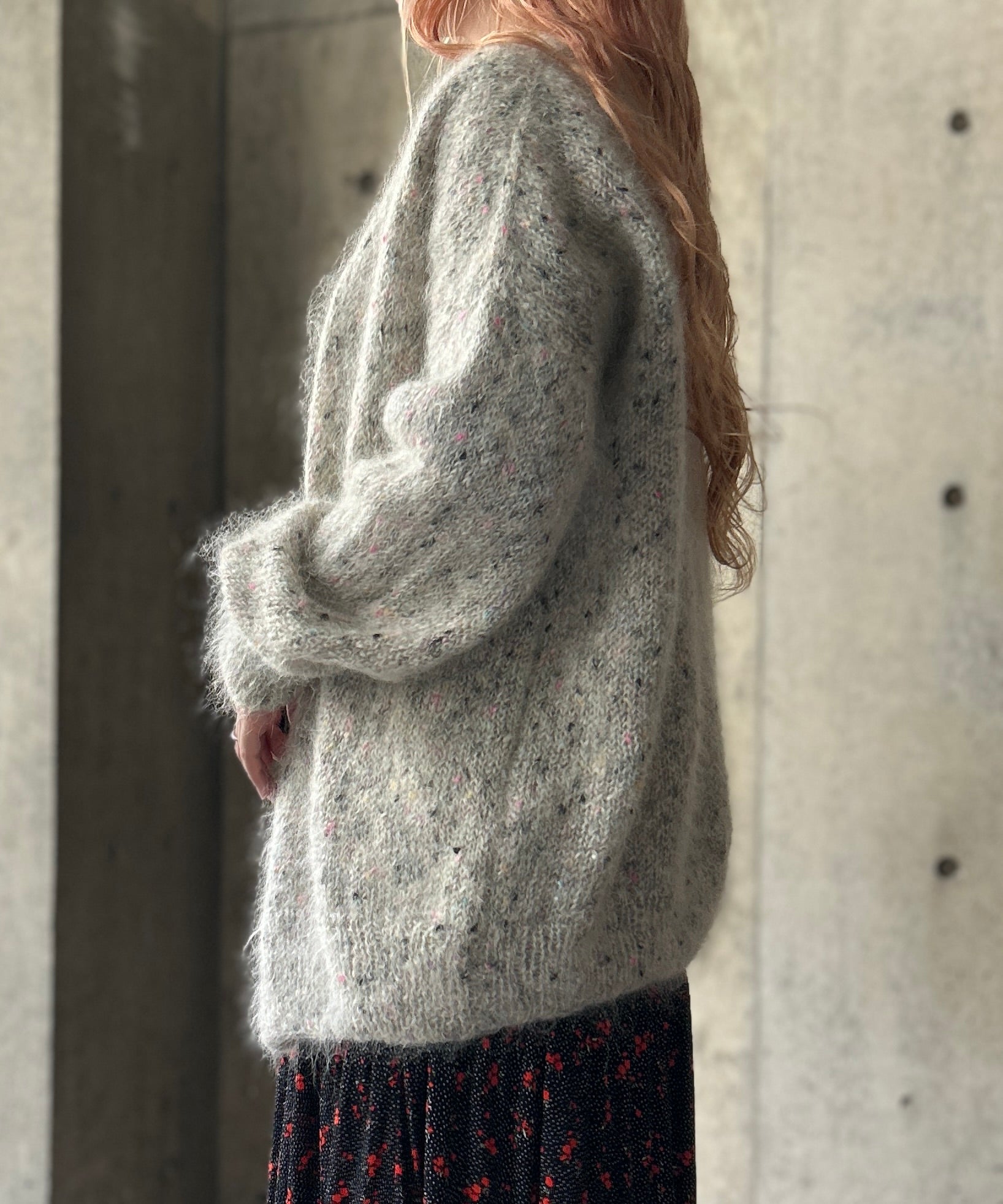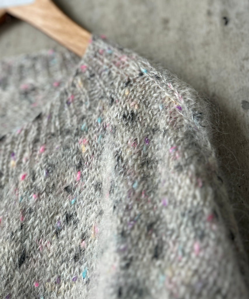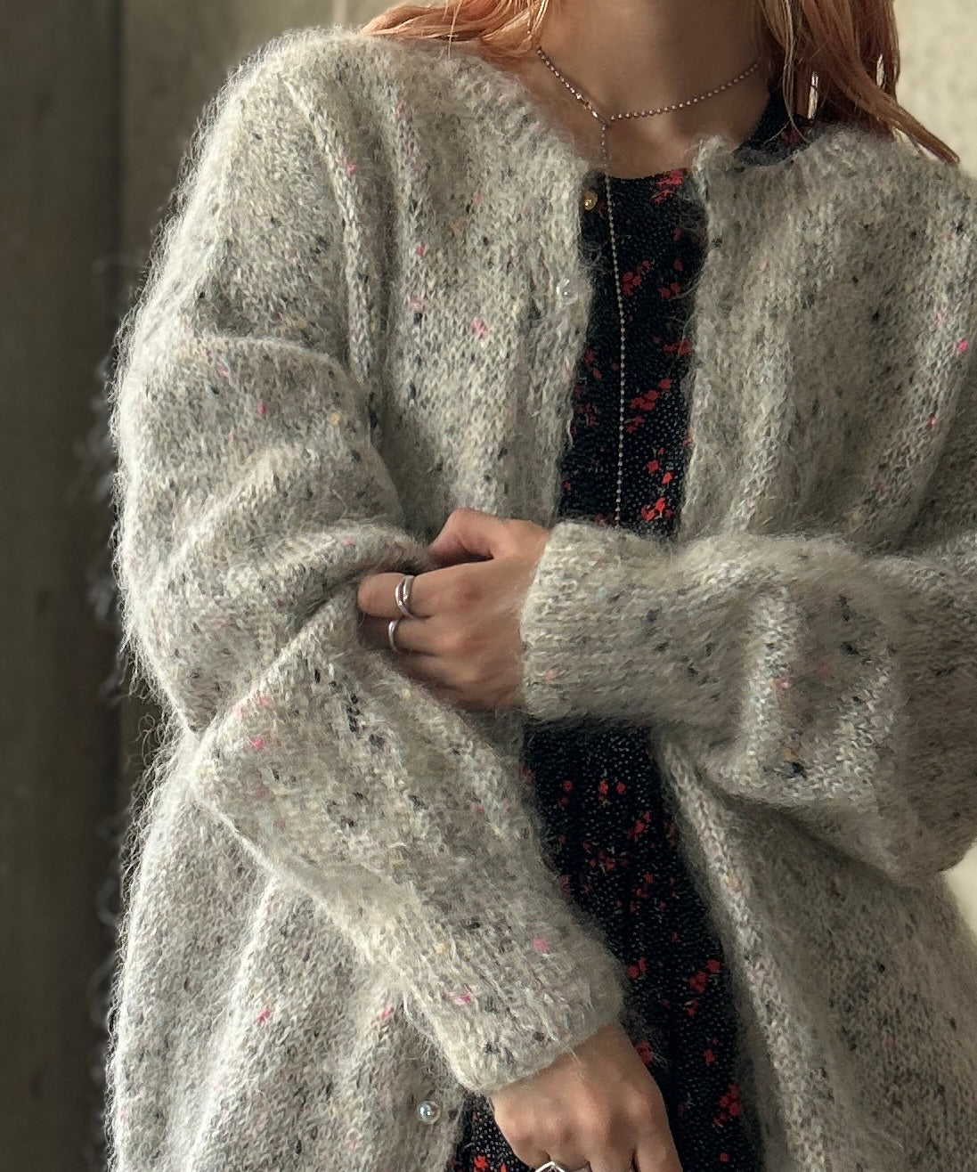ミックスカラーのモヘアニットカーディガン。