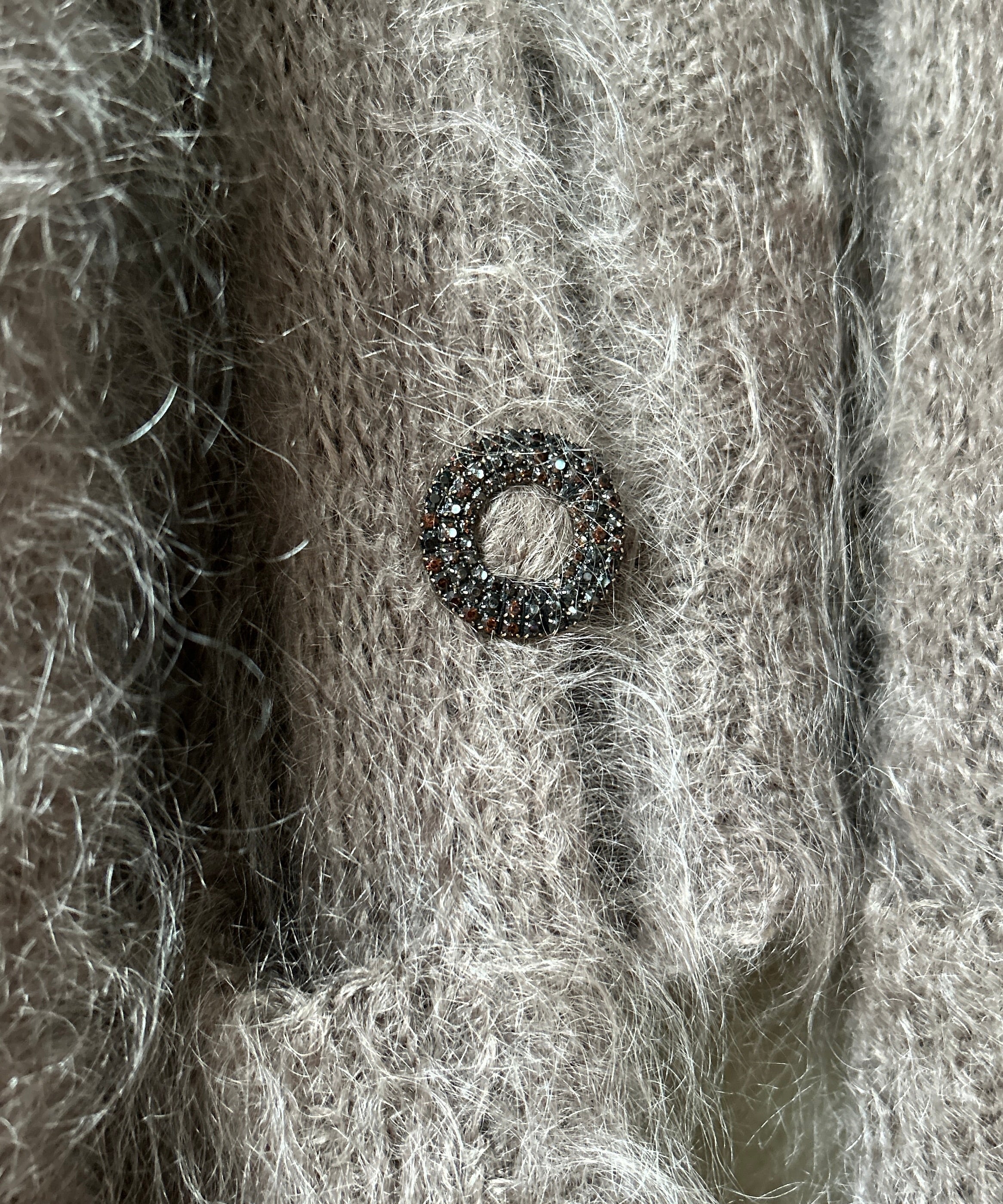 フロントはキラキラの華やかな金具でカチッと留める仕様。