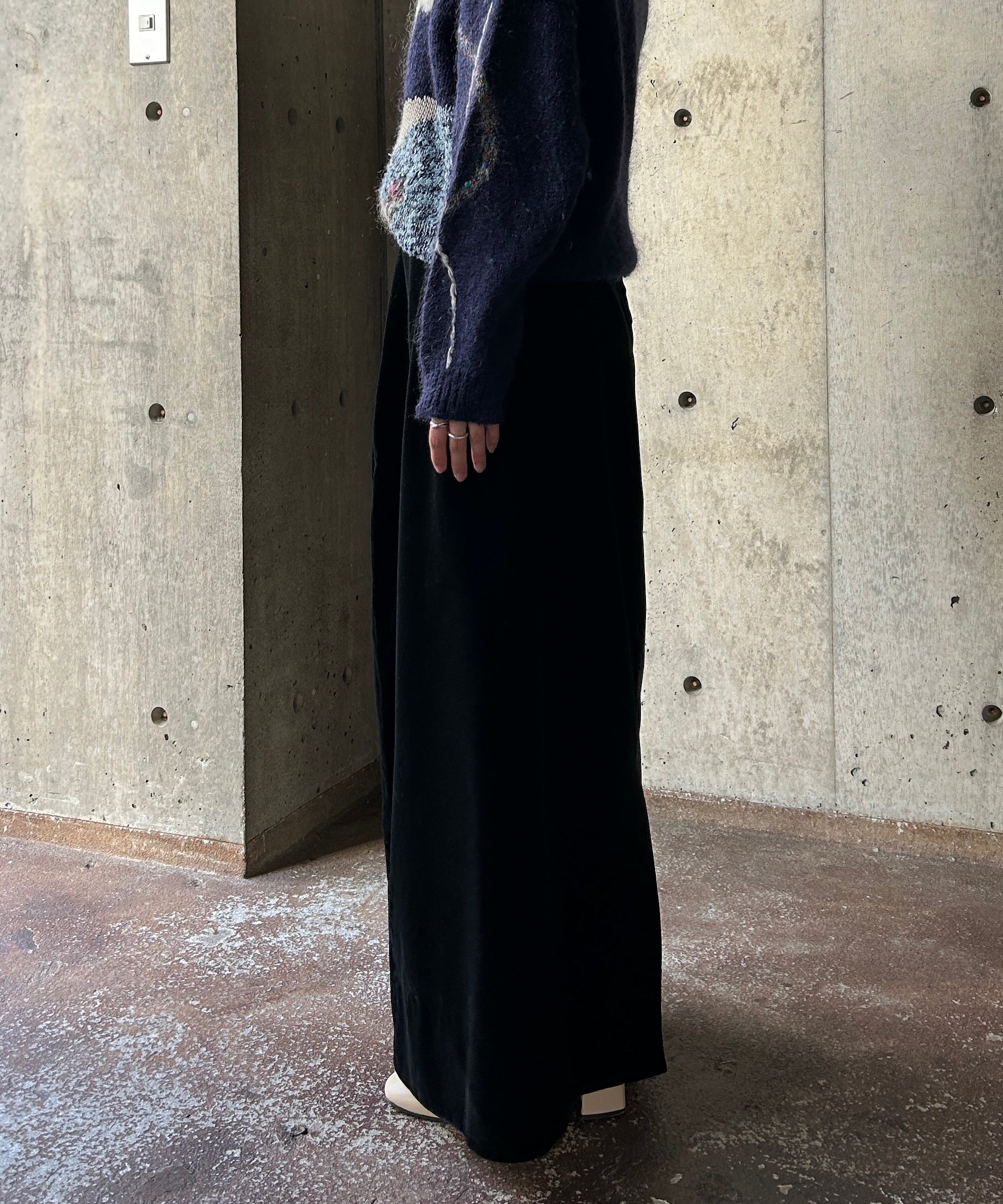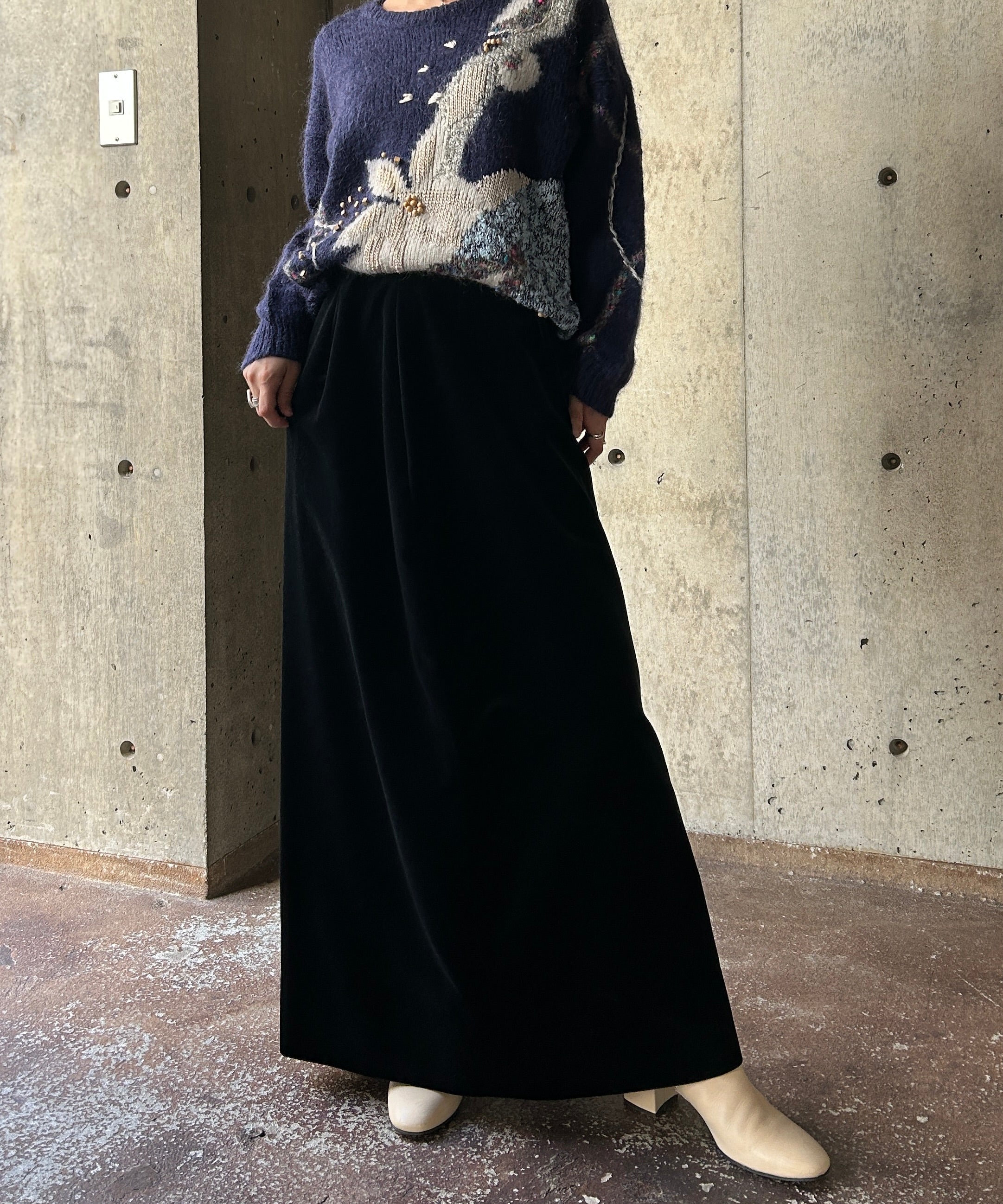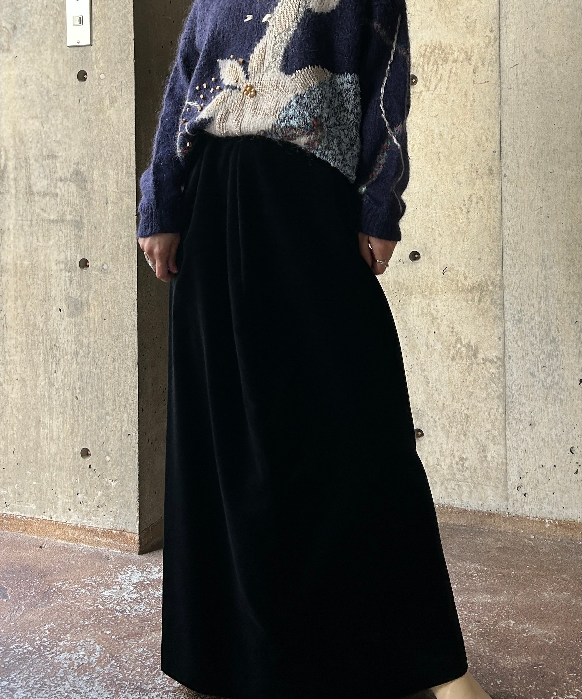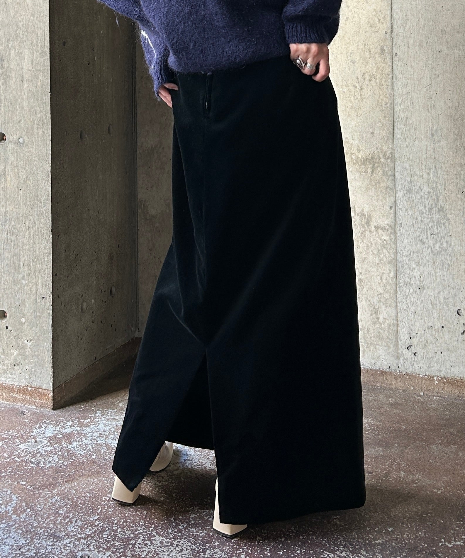 すとんとしたシルエットのベロアスカート。