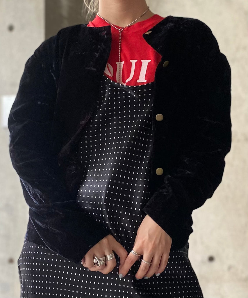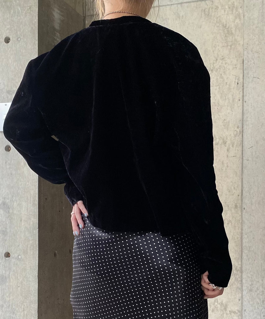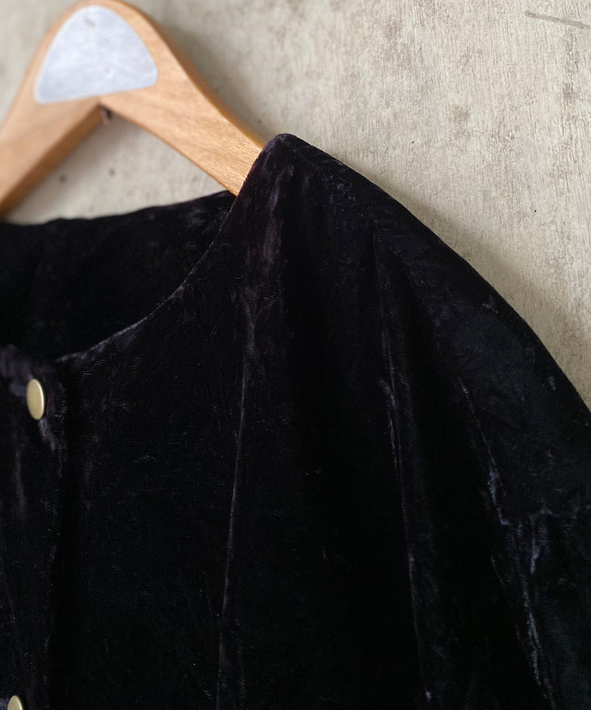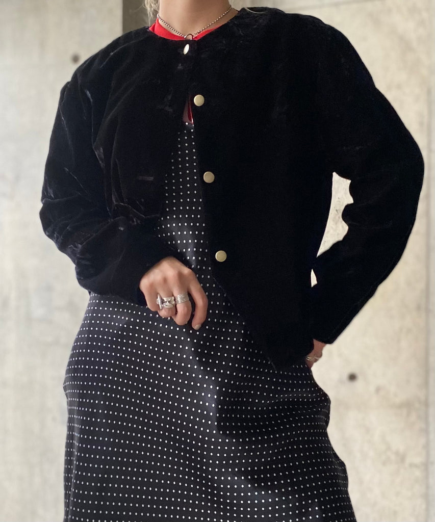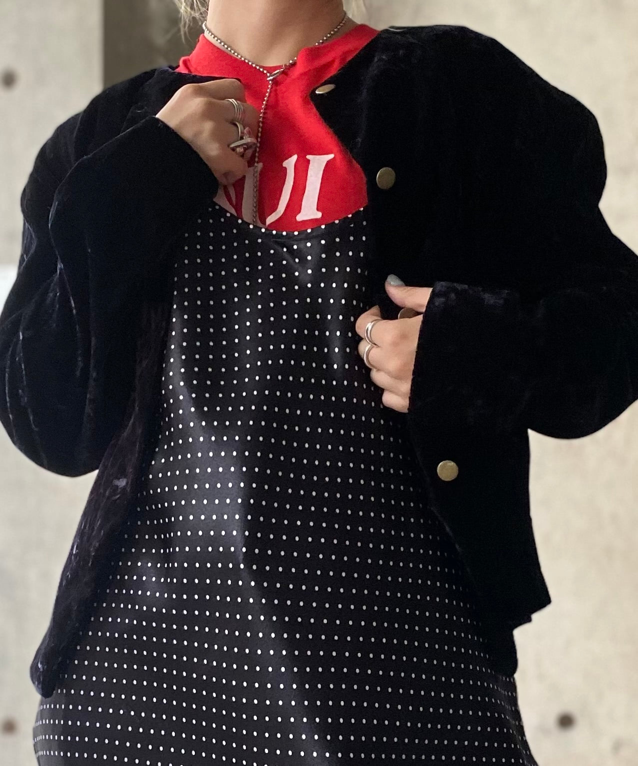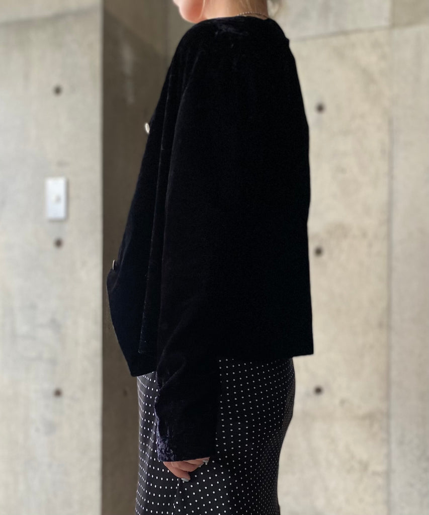 ノーカラーなのでフリルのブラウスなどをのぞかせてもgood。