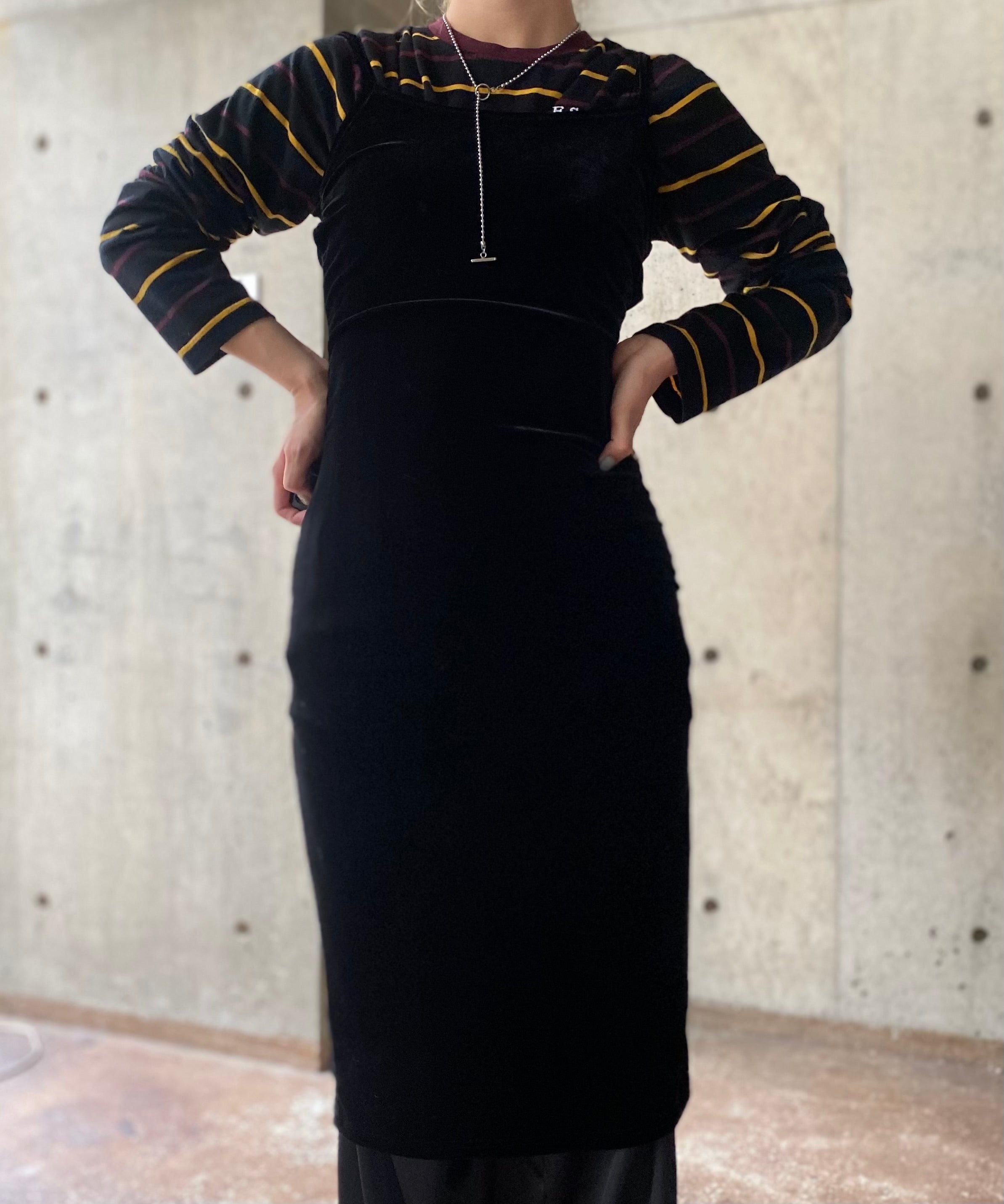 ベロア生地のキャミソールワンピース。