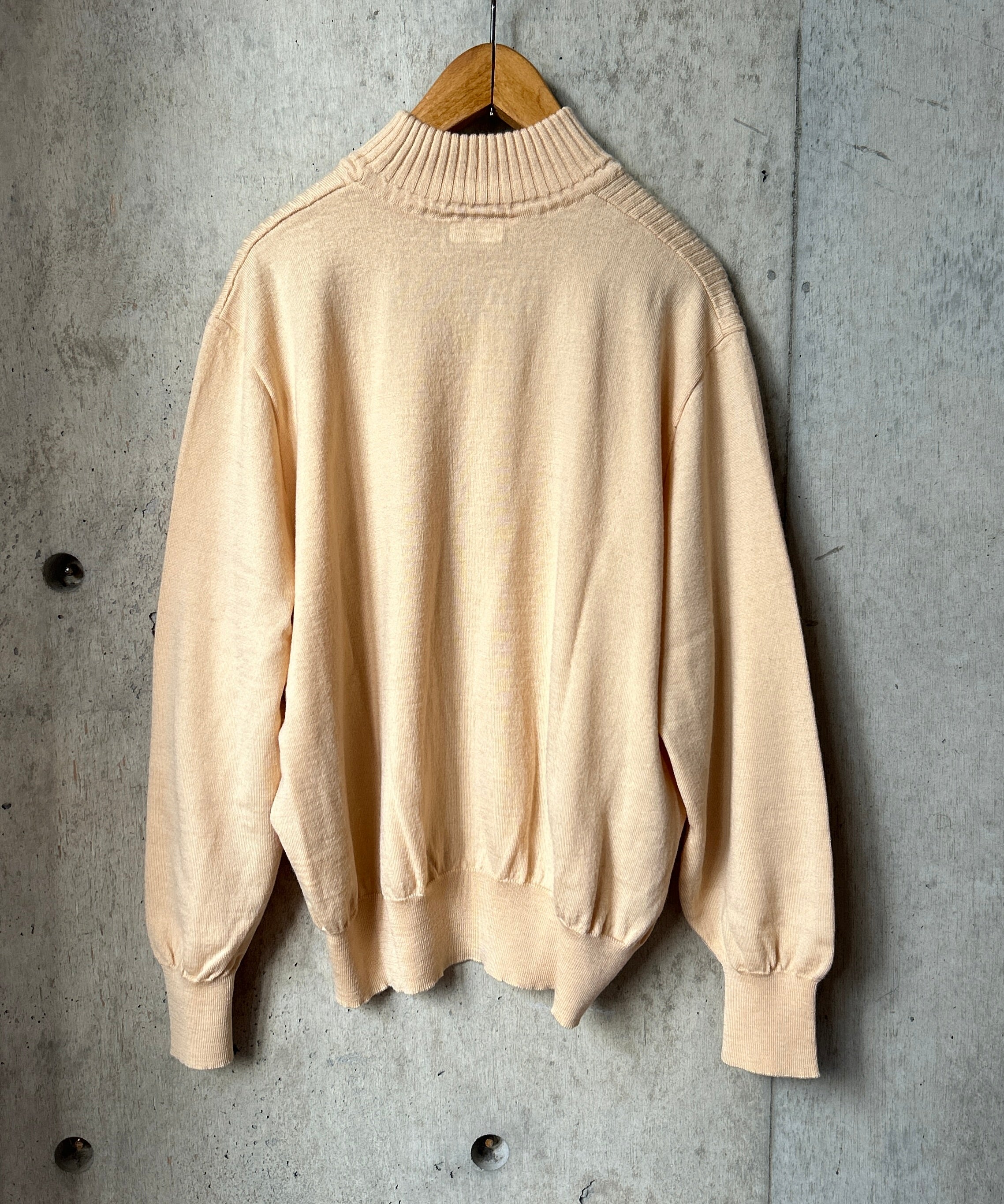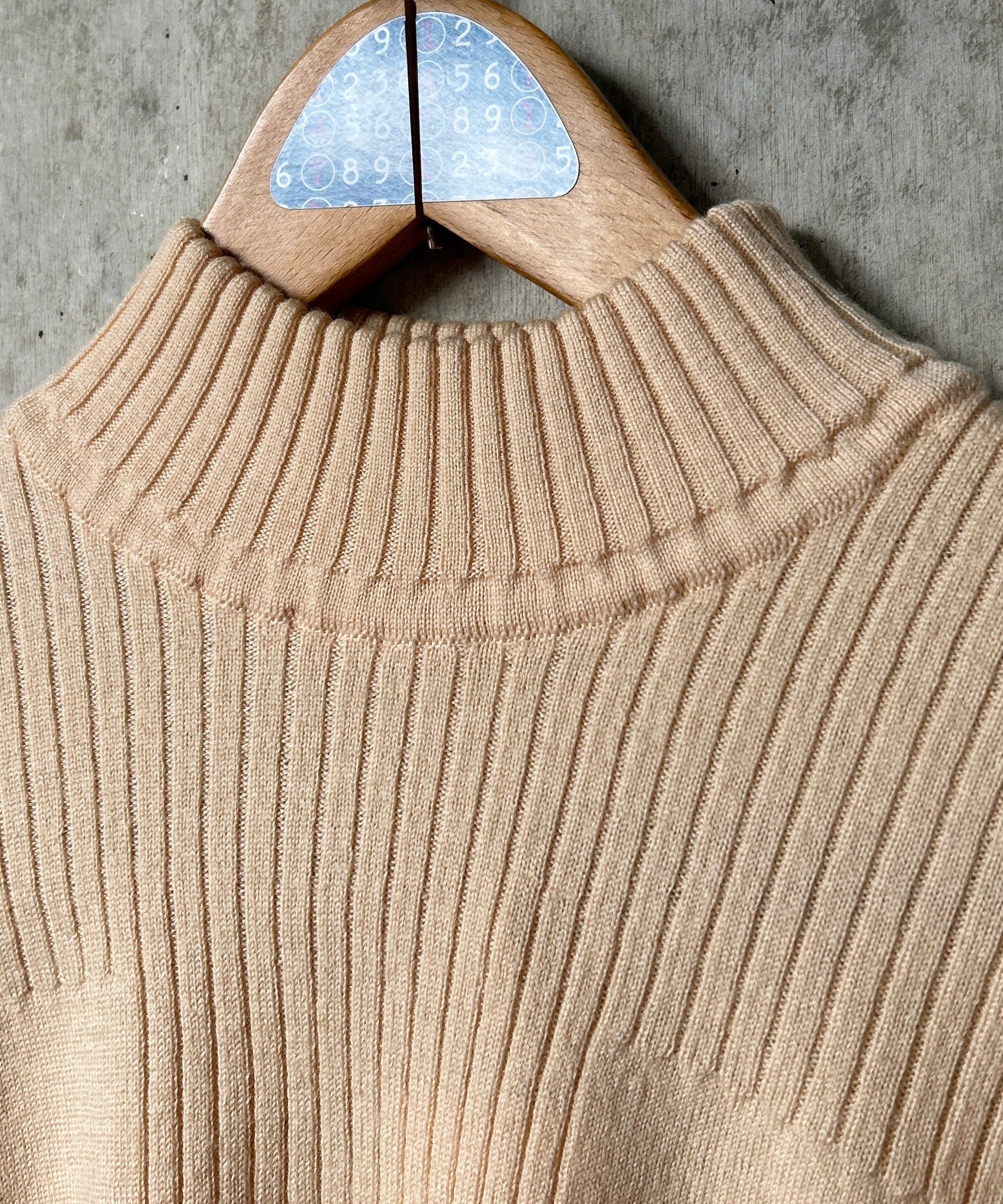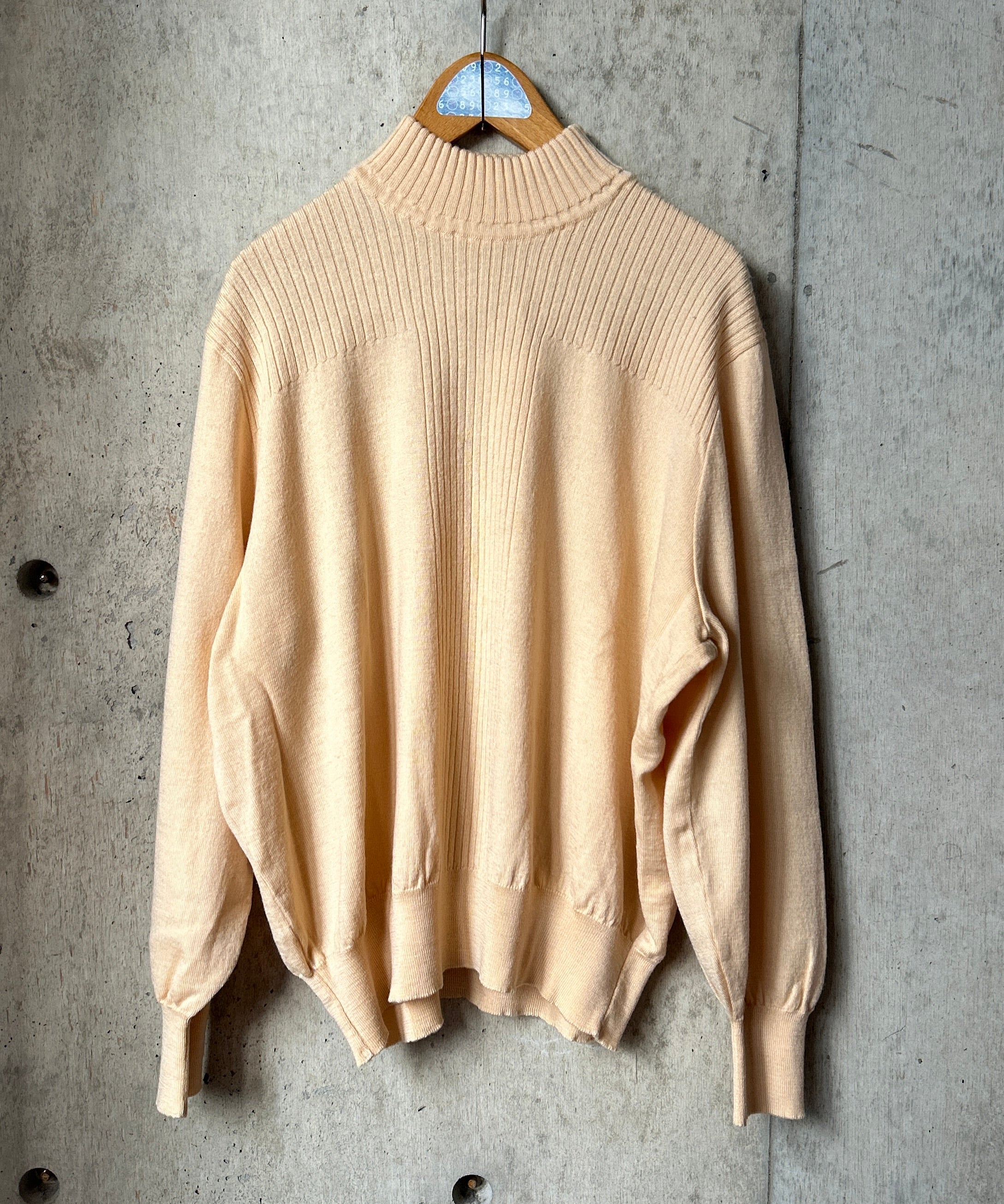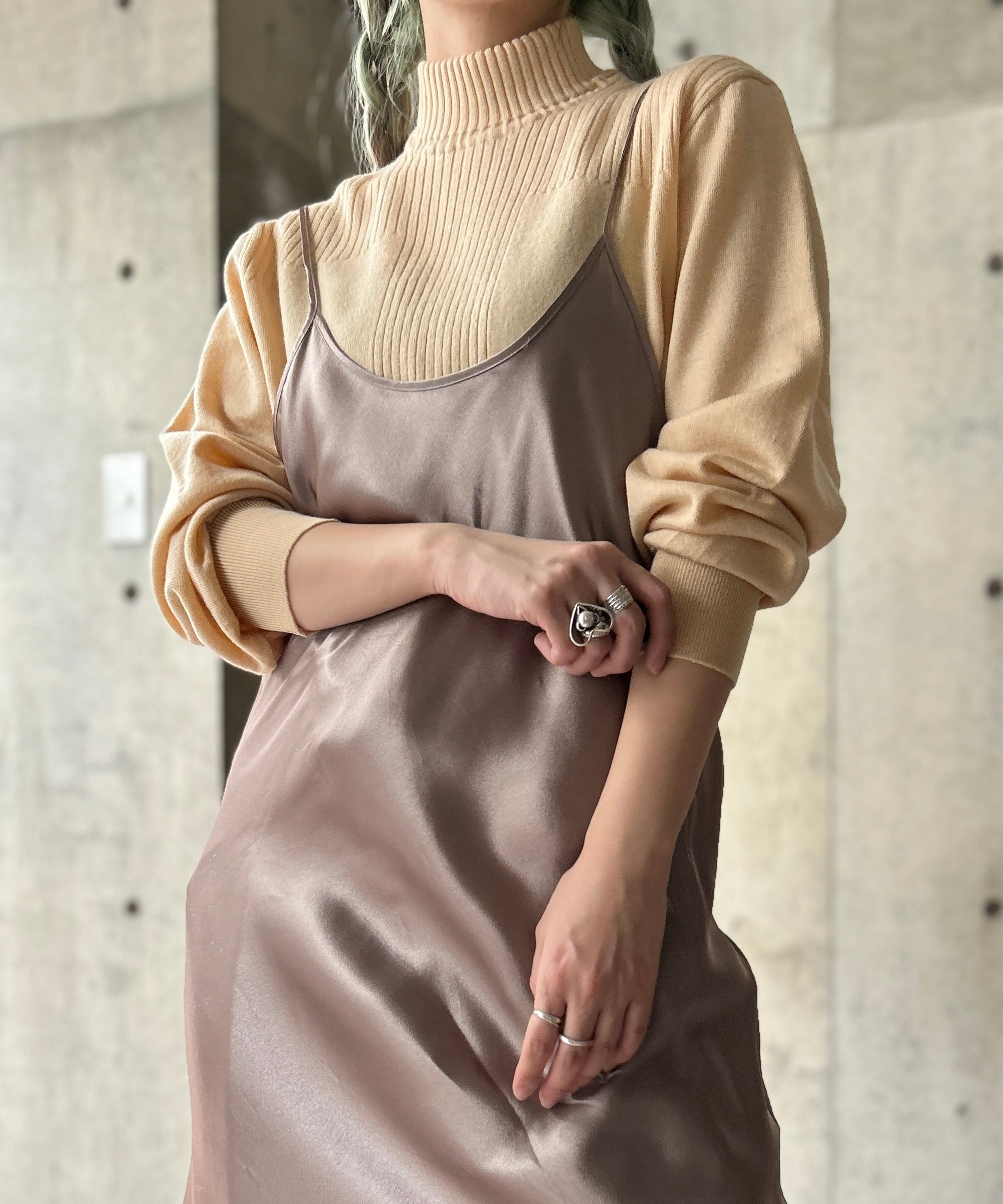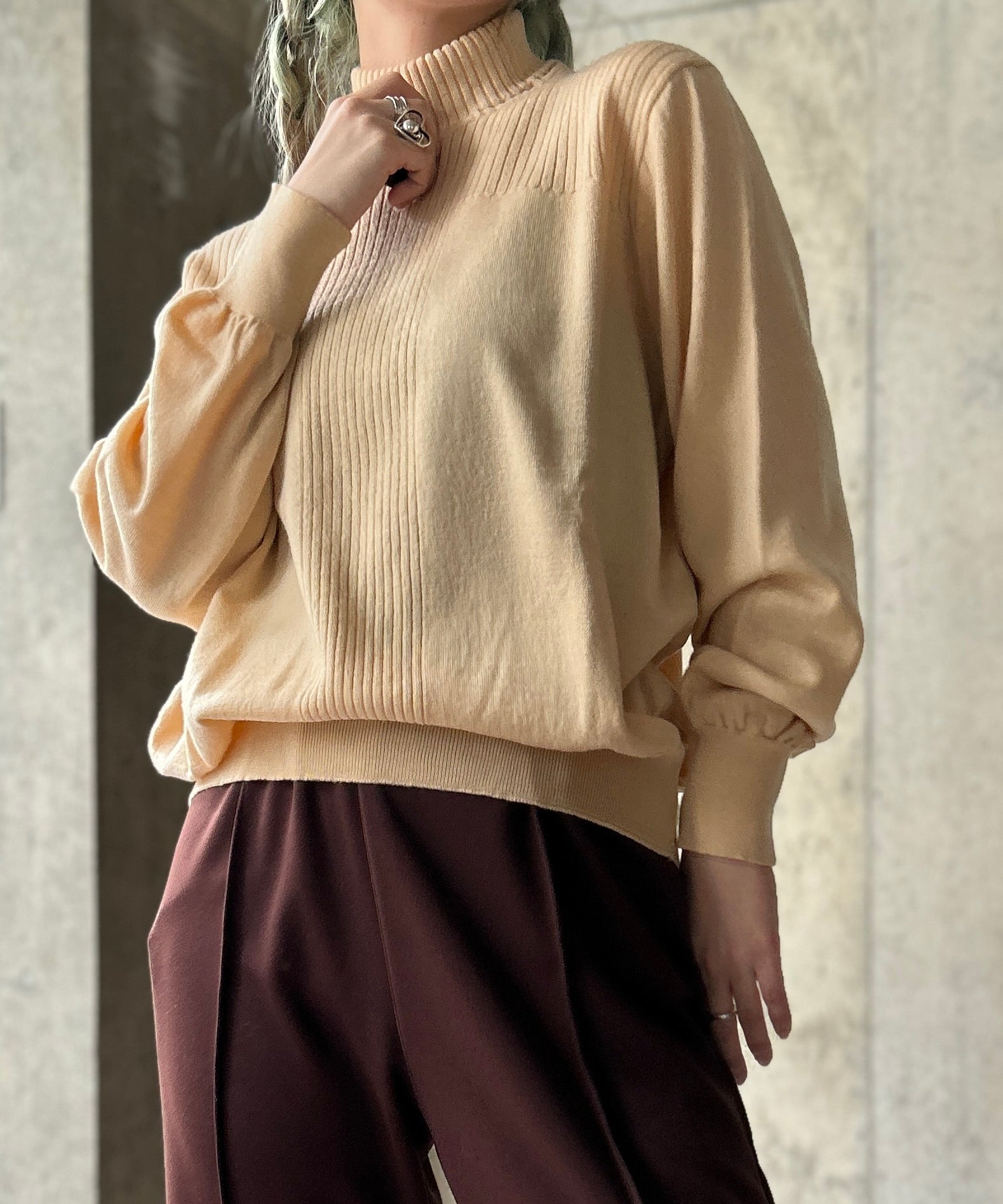 モックネックの薄手リブニット。