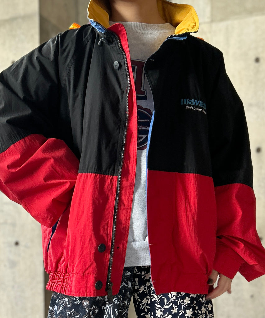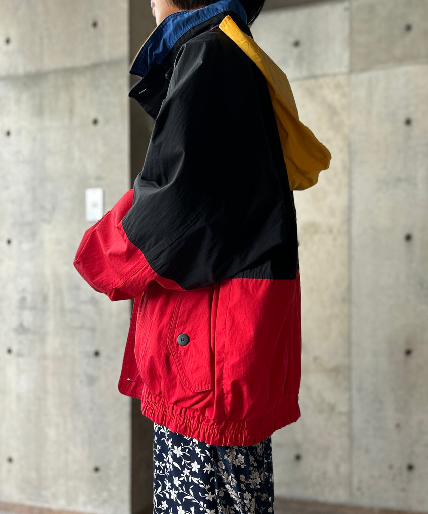 フードは収納可能なのでそうするとツートーンのより落ち着いた雰囲気でも着られます。