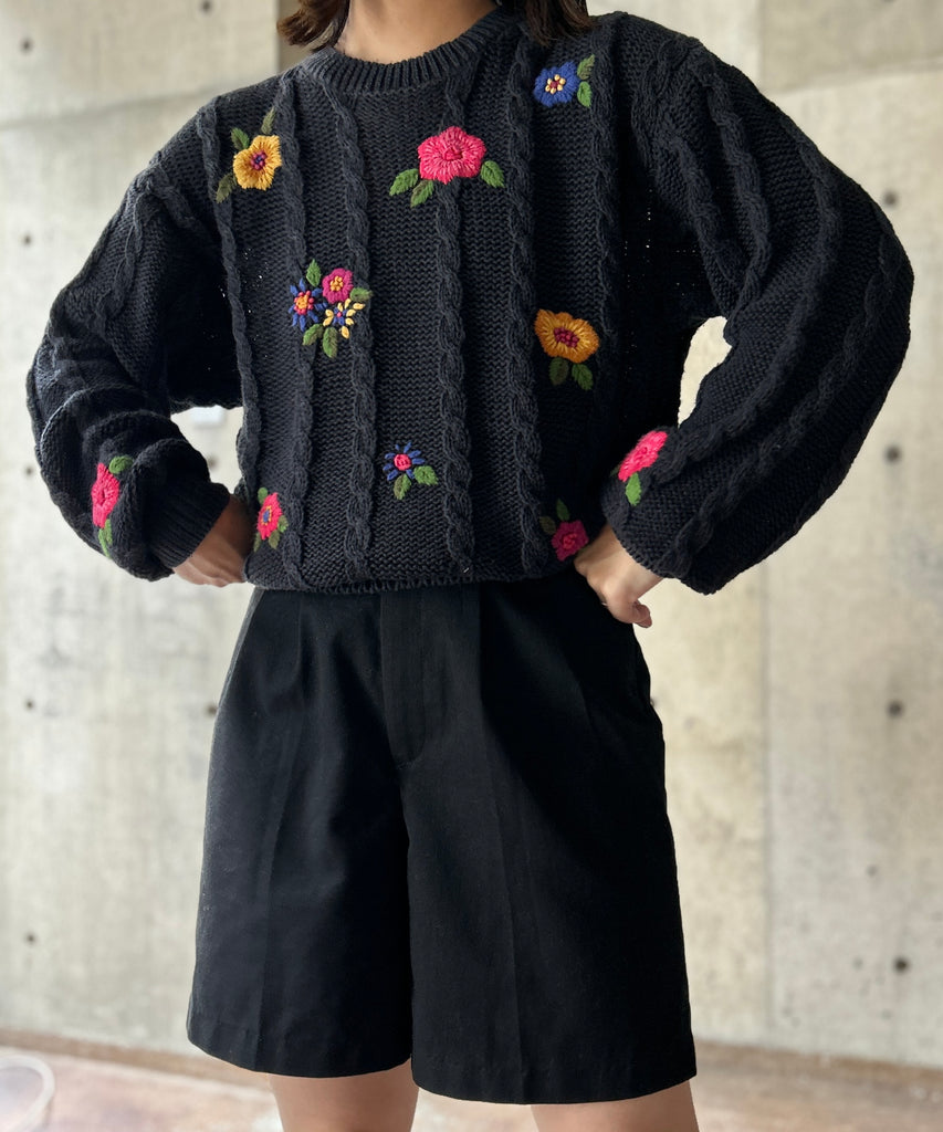 カラフルなお花がフロントのみでラブリーすぎず着やすいです。