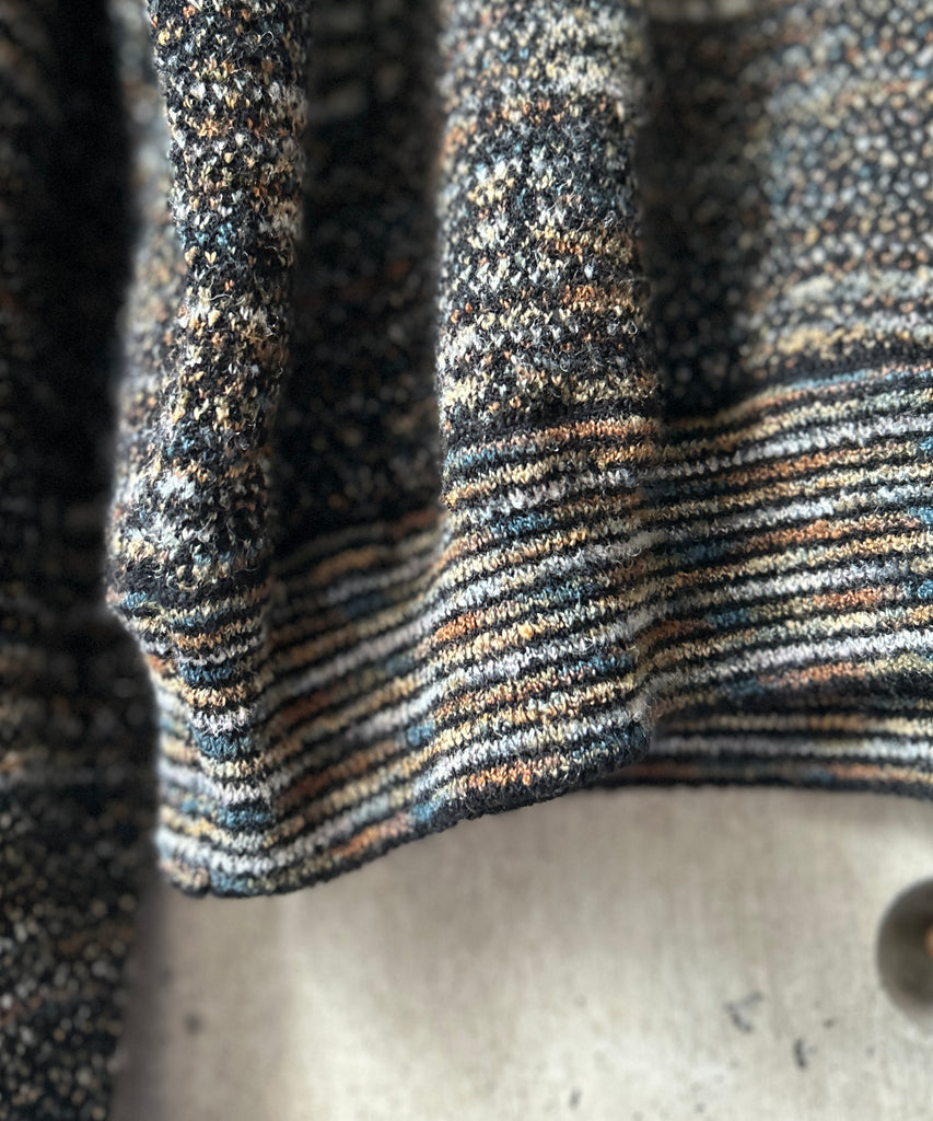 シャリ感のある薄手の生地感、ニットですがモコモコせず