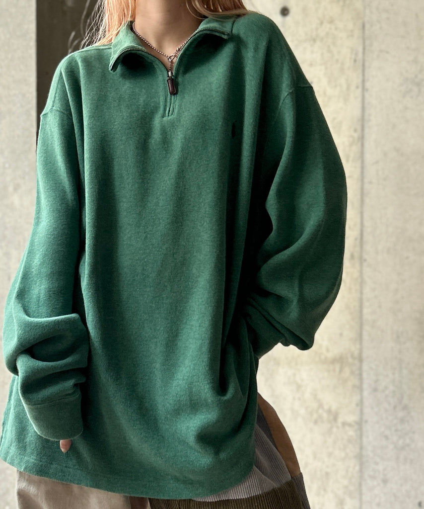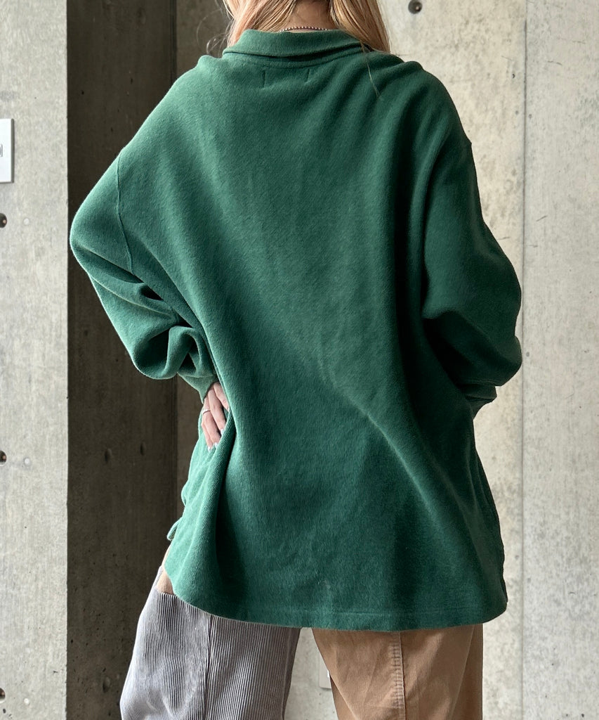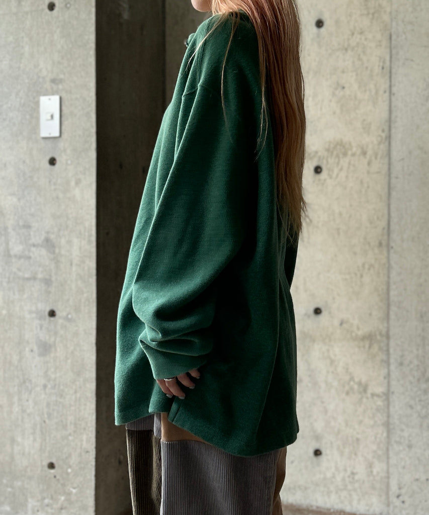 ゆったり着られるサイズ感、シックなグリーンカラーも素敵です。