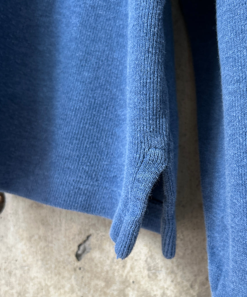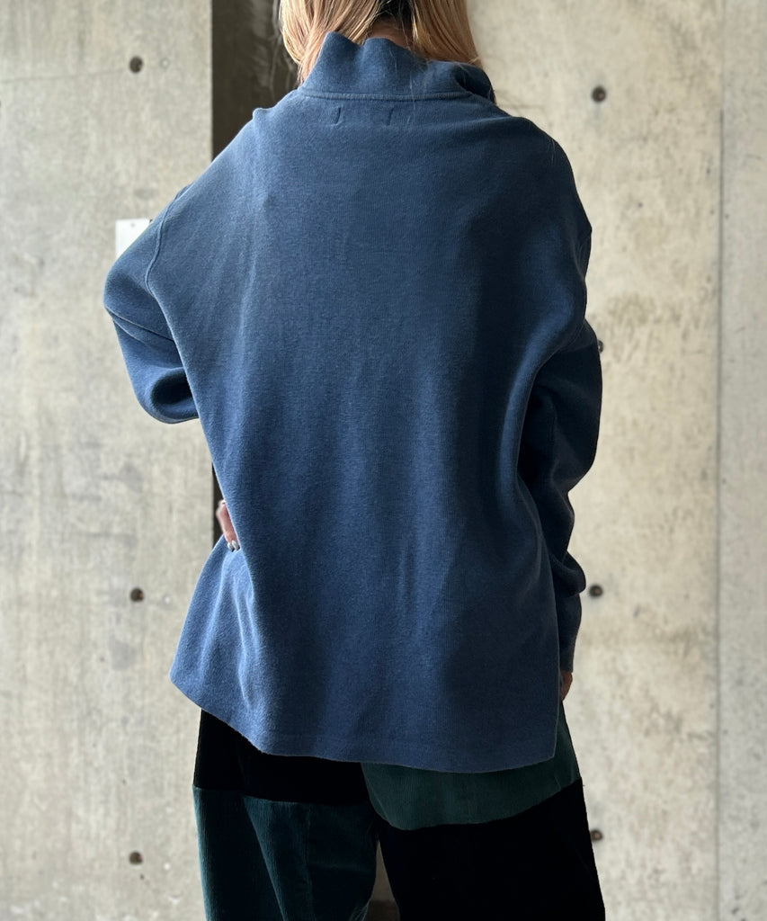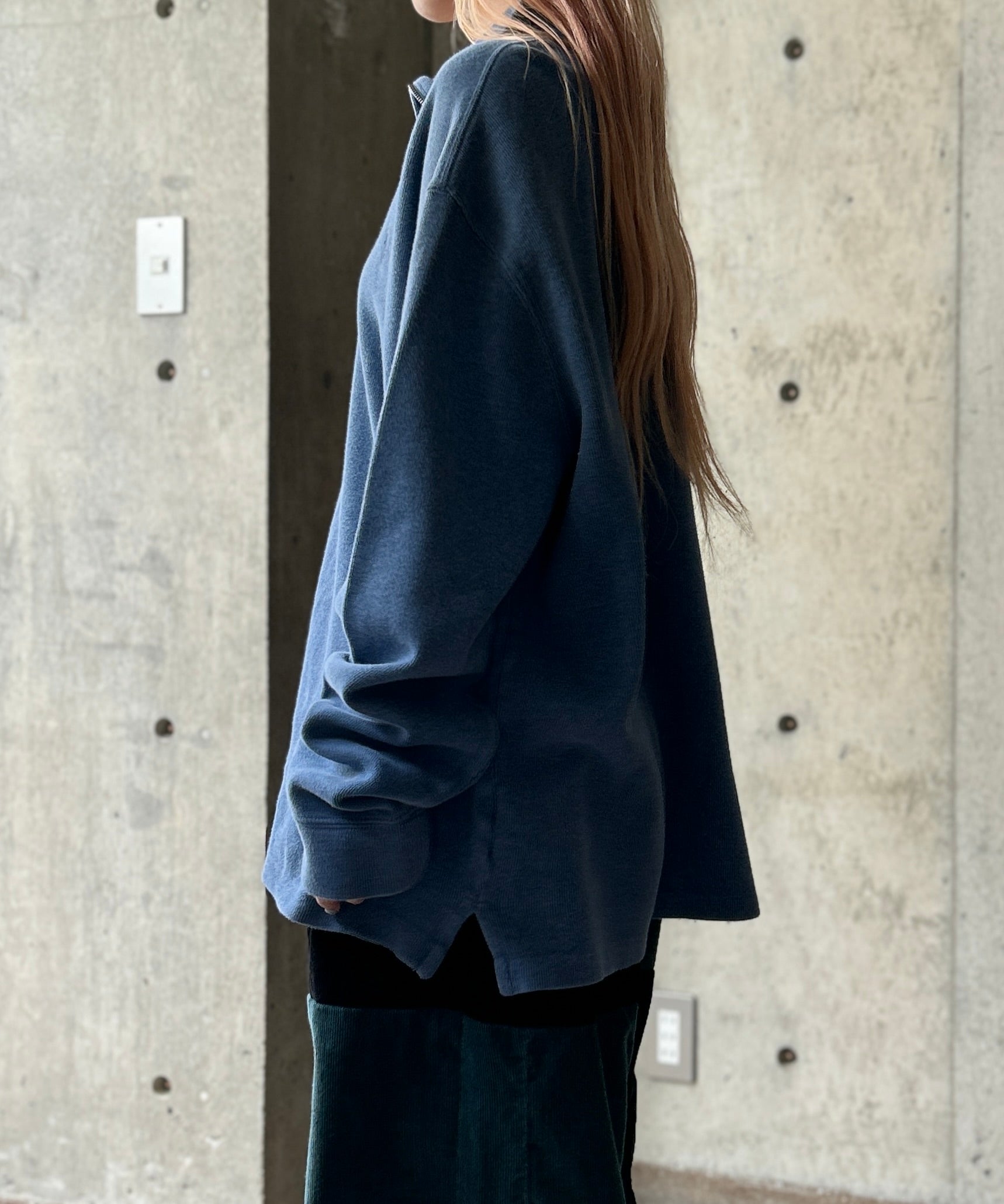 ゆったり着られるサイズ感、くすんだブルーカラーも素敵です。