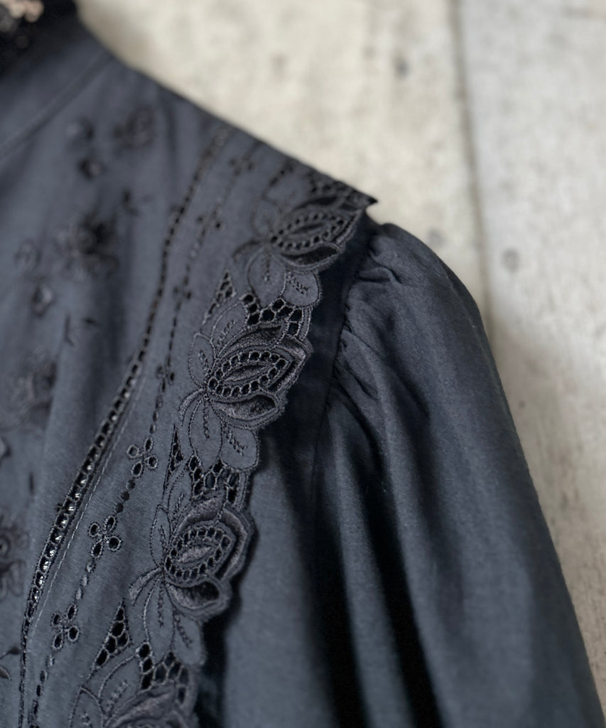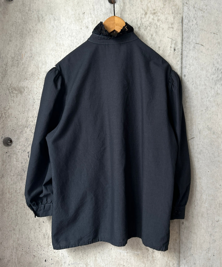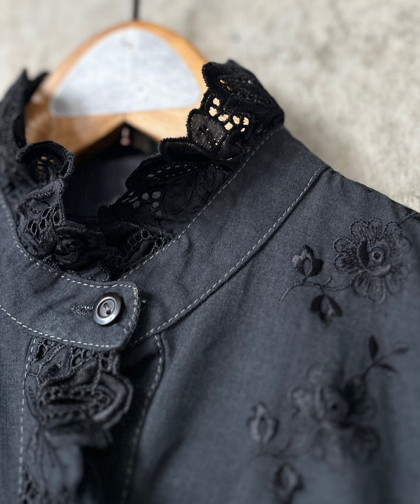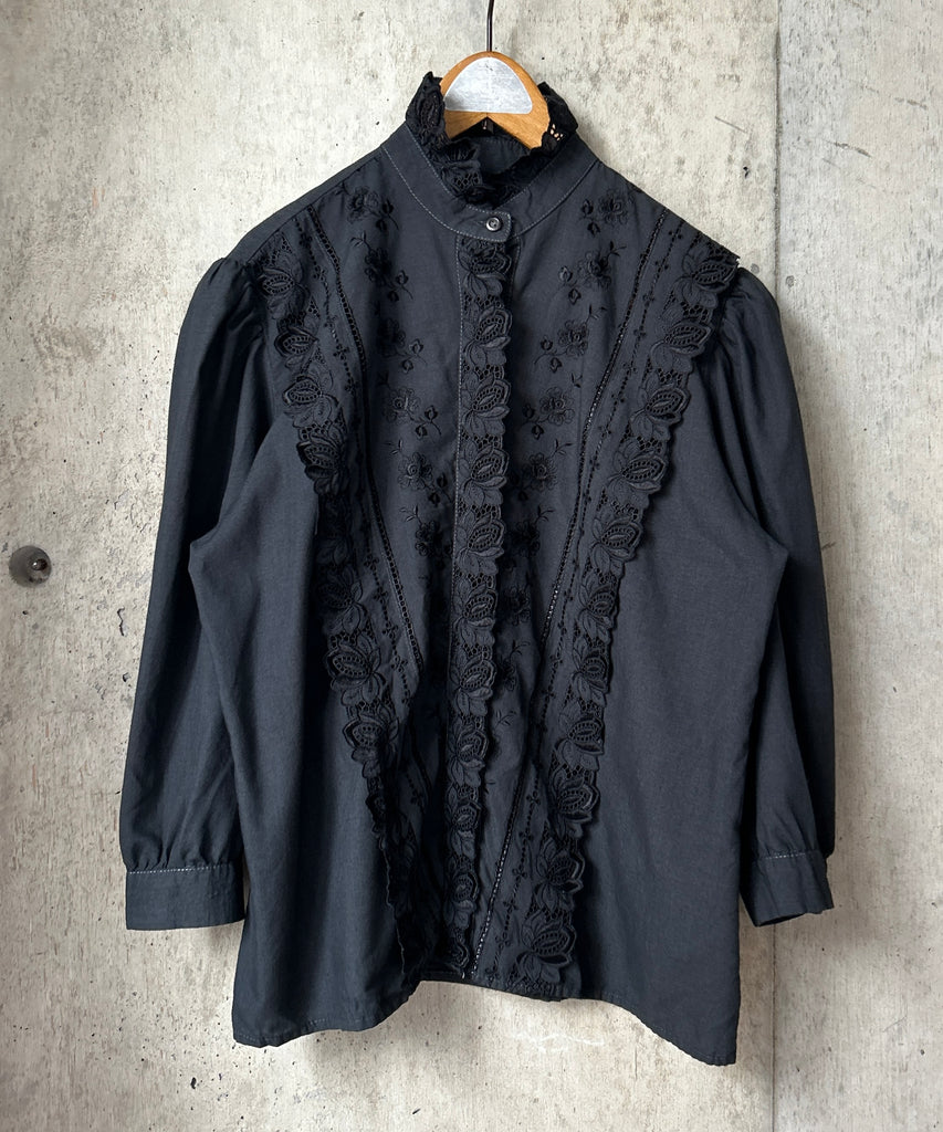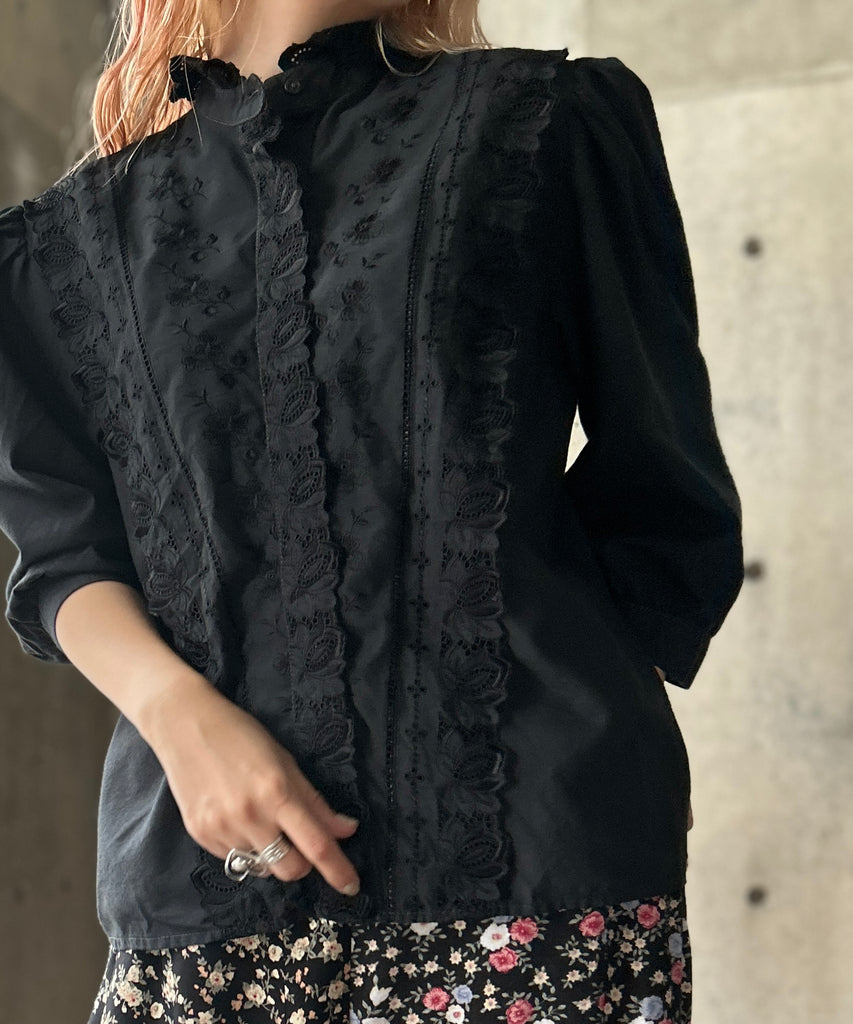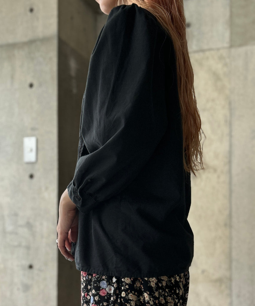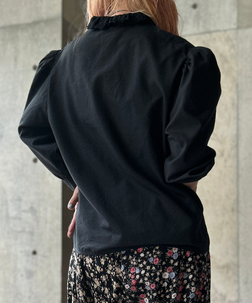 L/S Stand Collar Black Blouse