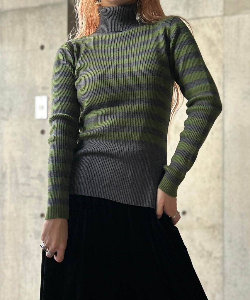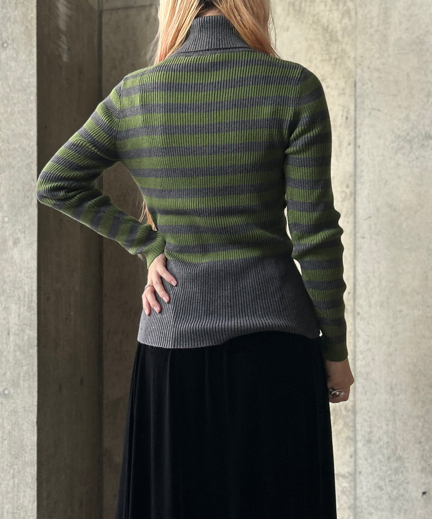 渋めなカラーリングのボーダーで派手すぎず取り入れやすい◎
