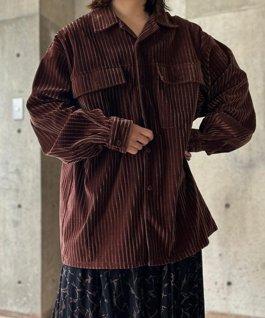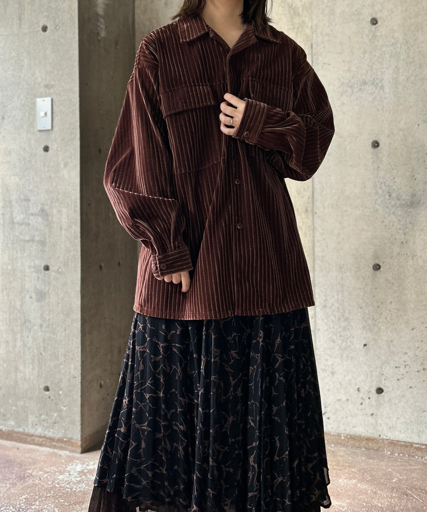 長袖のコーデュロイシャツ。