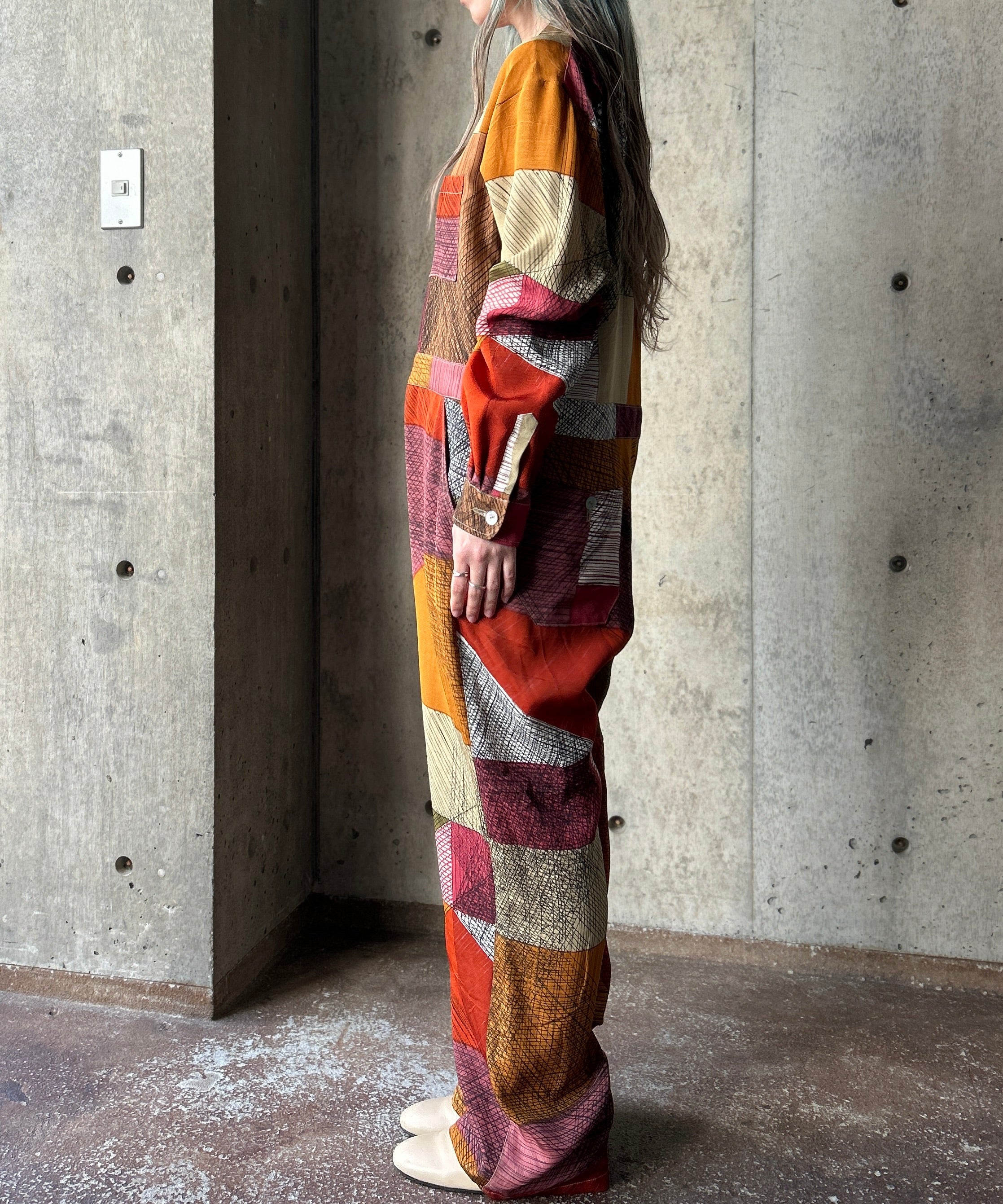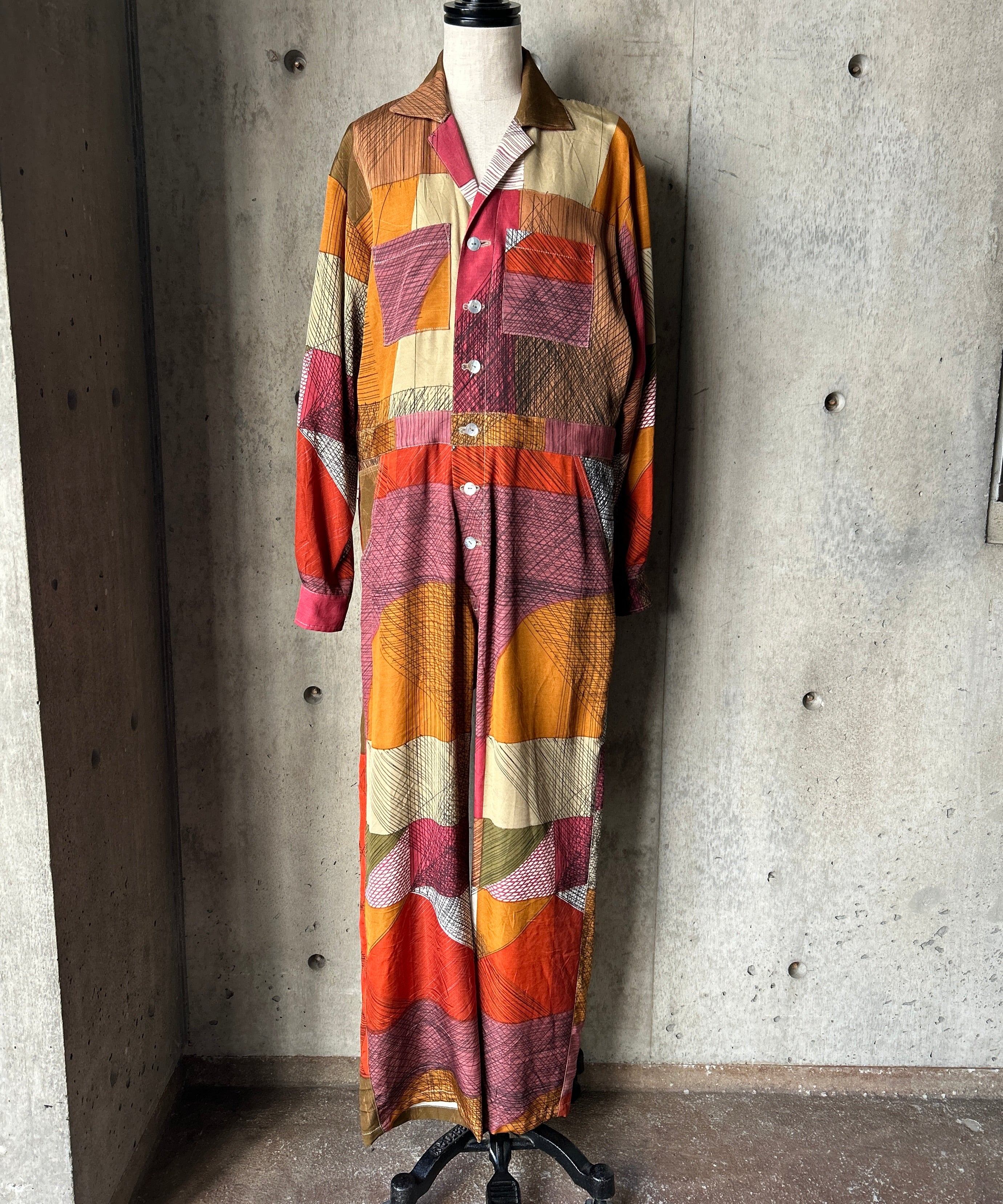ヴィンテージの生地でリメイクしたジャンプスーツ。