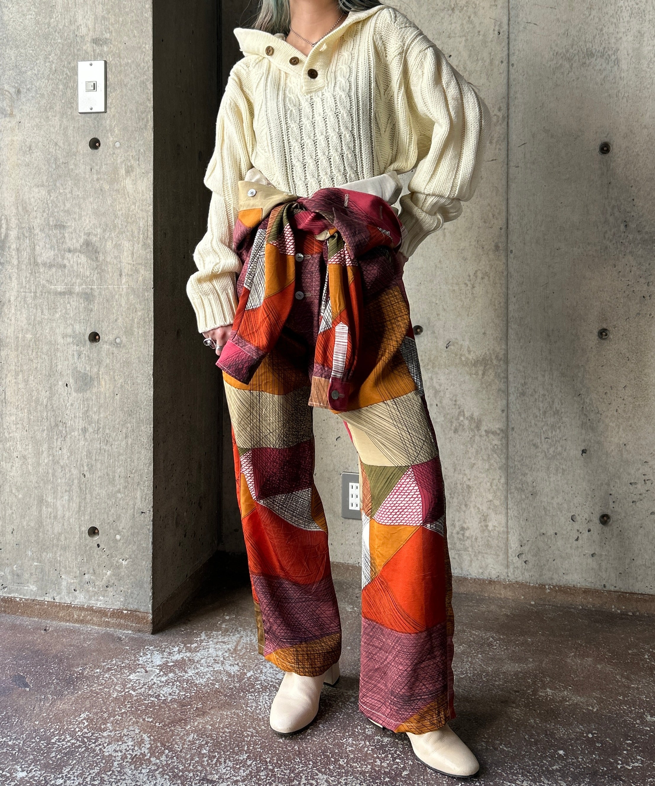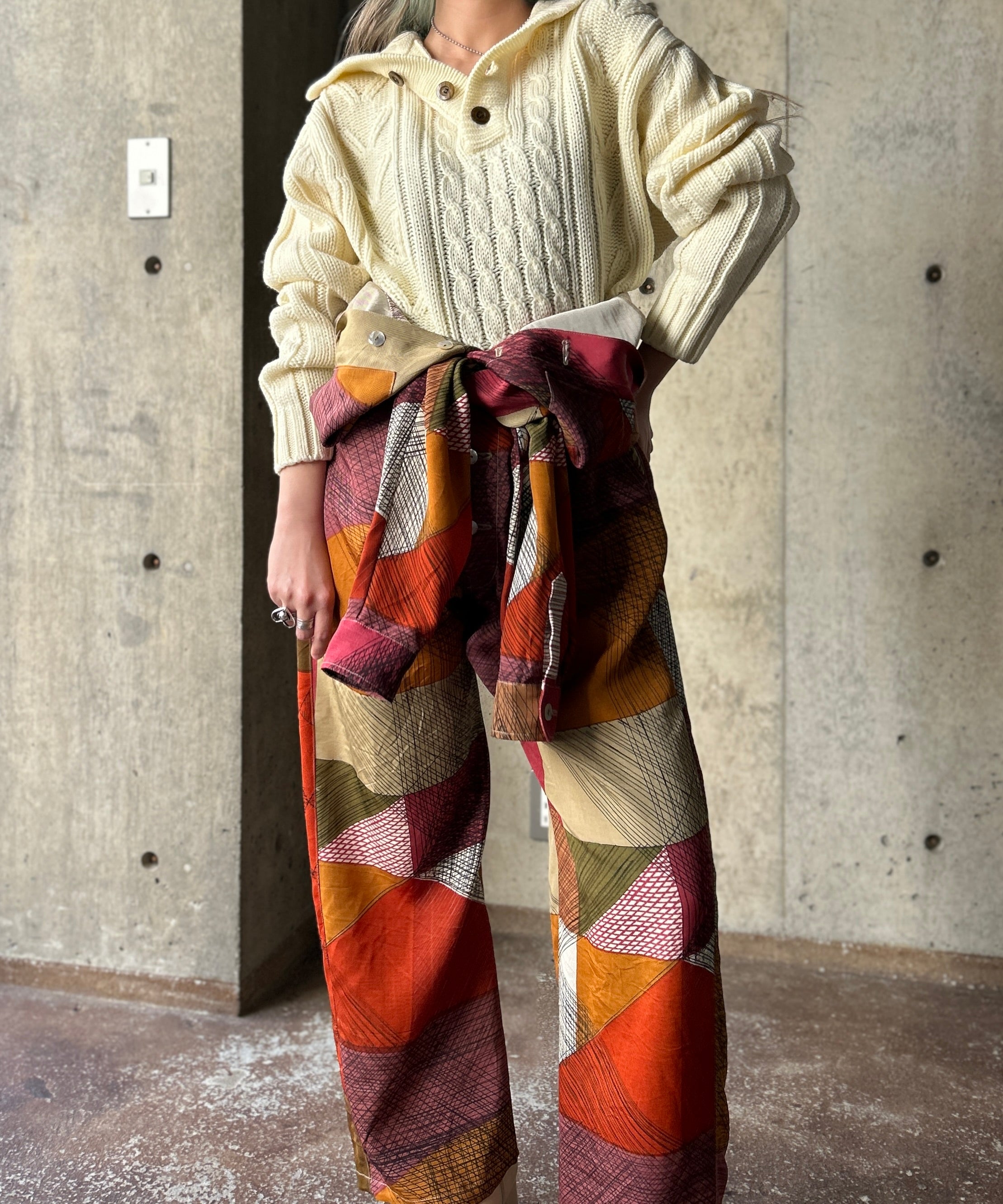 袖をウエストでマークし、パンツとして使うのもオススメです。