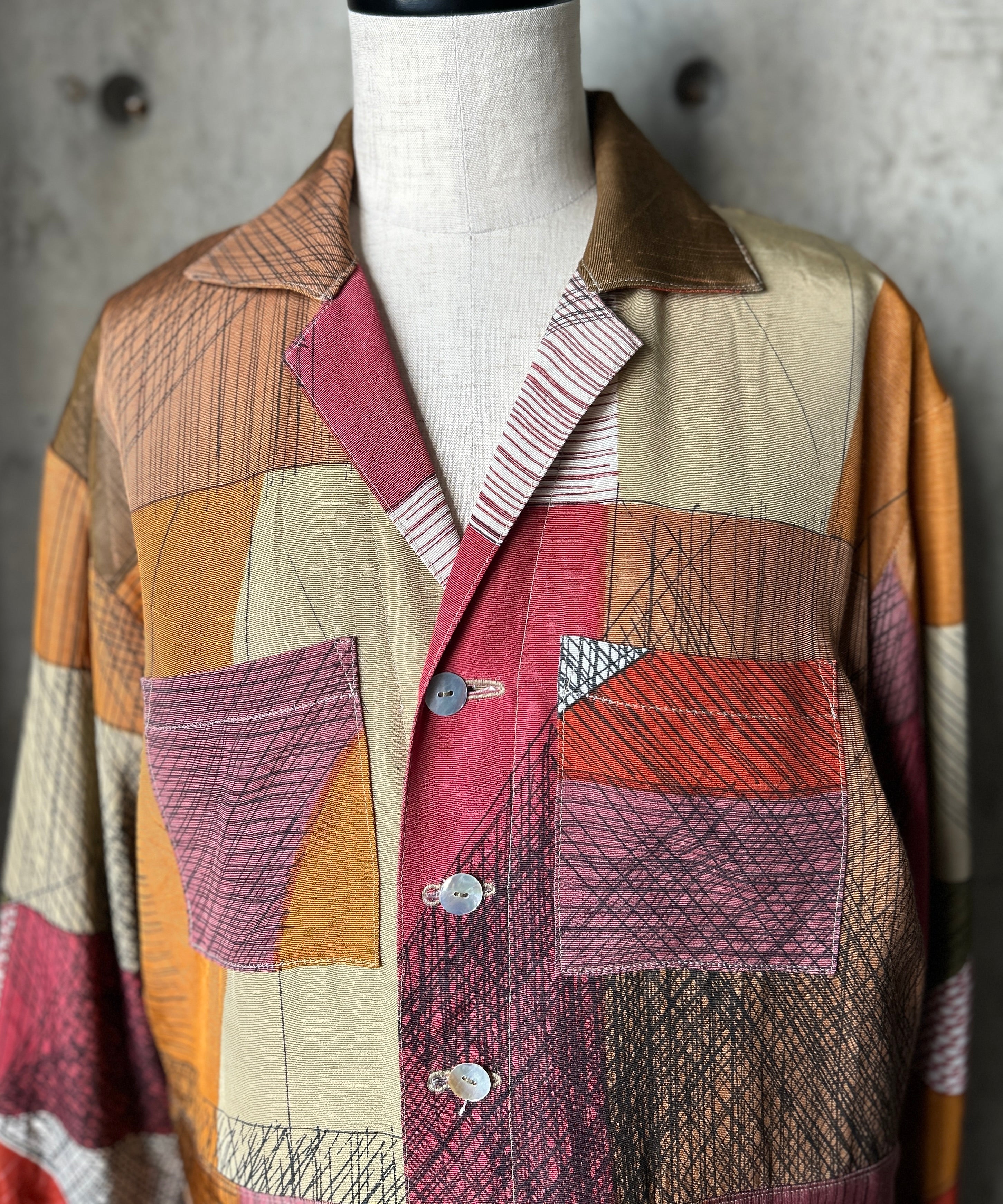リメイク商品の為、1枚1枚色柄、風合い等が微妙に異なりますが、味わいのある雰囲気をお楽しみください。