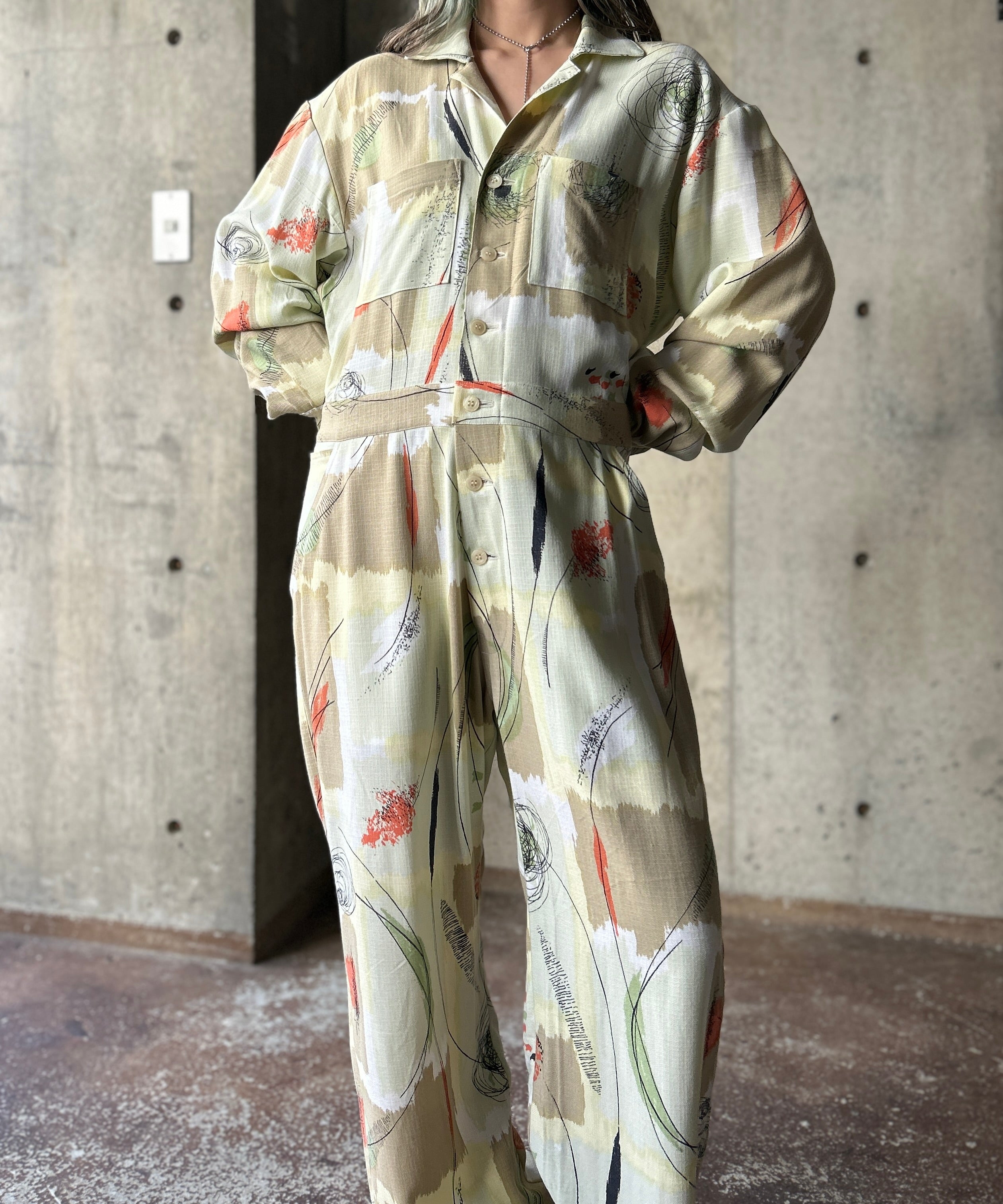 ヴィンテージの生地でリメイクしたジャンプスーツ。
