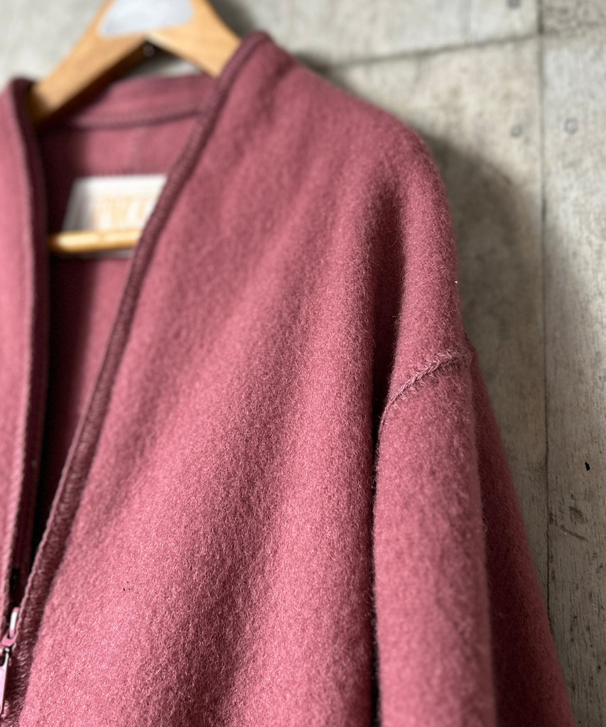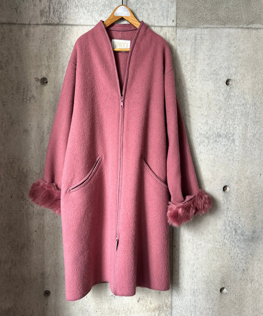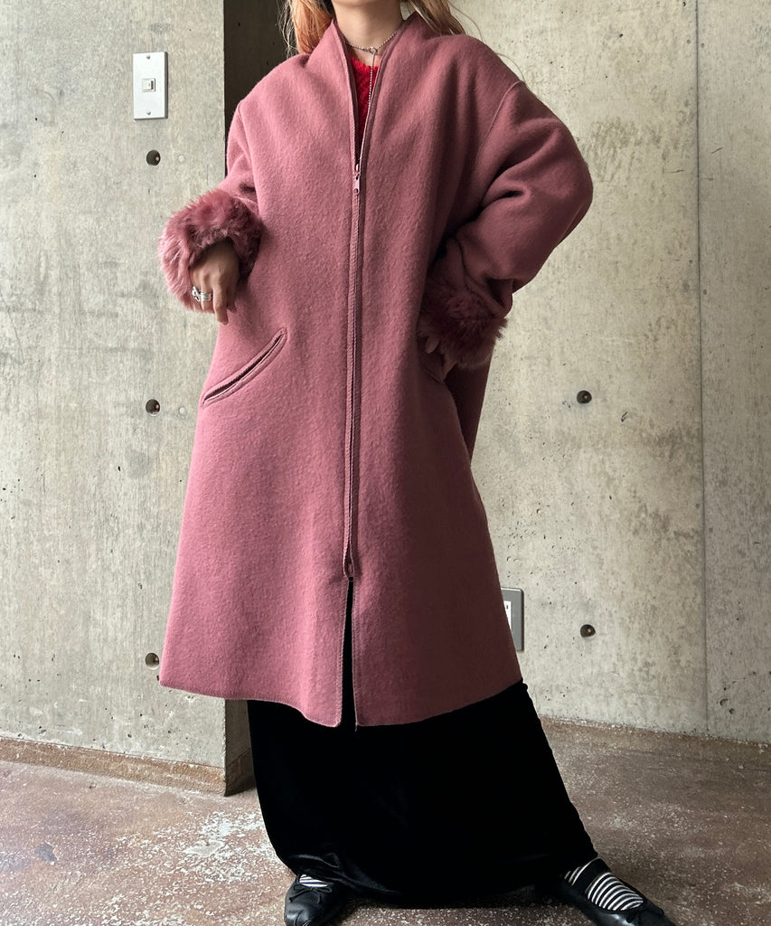 くすみピンクのウールコート。