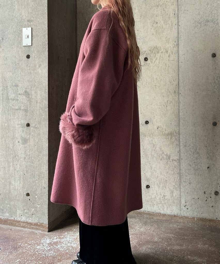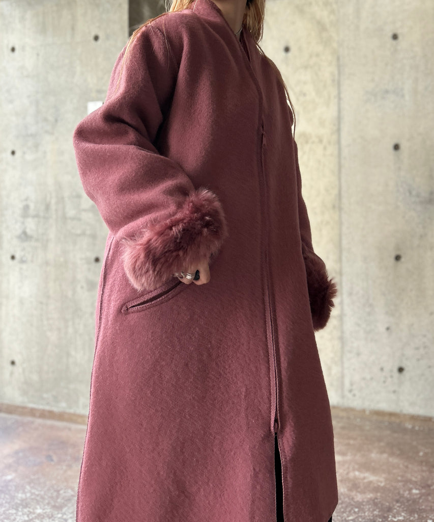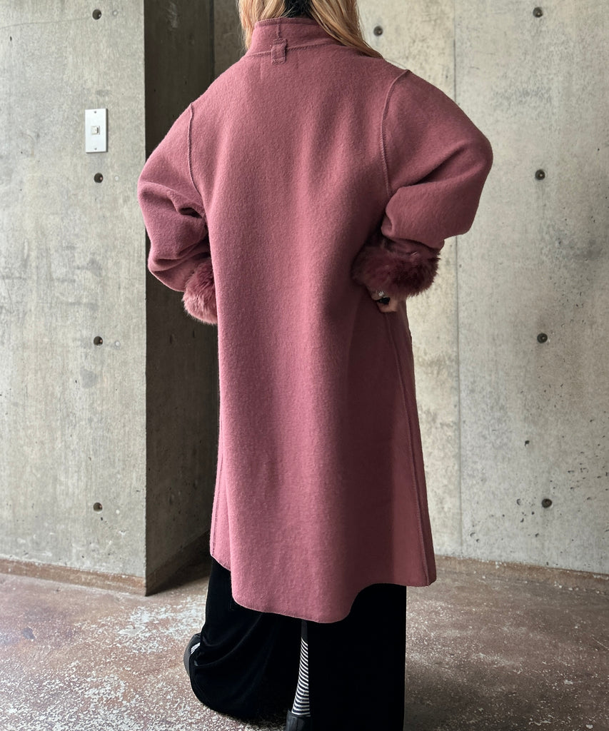 Fur Cuffs Wool Long Coat
