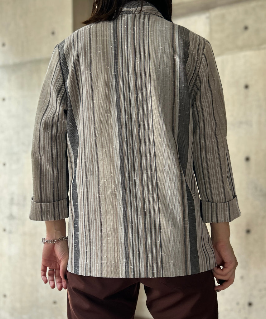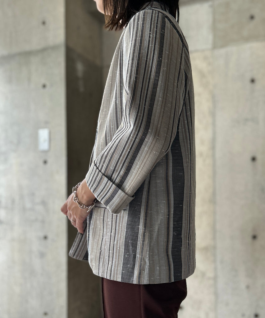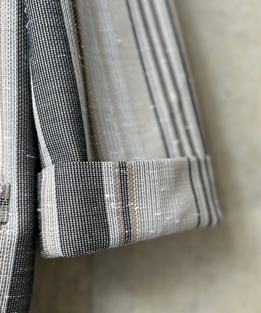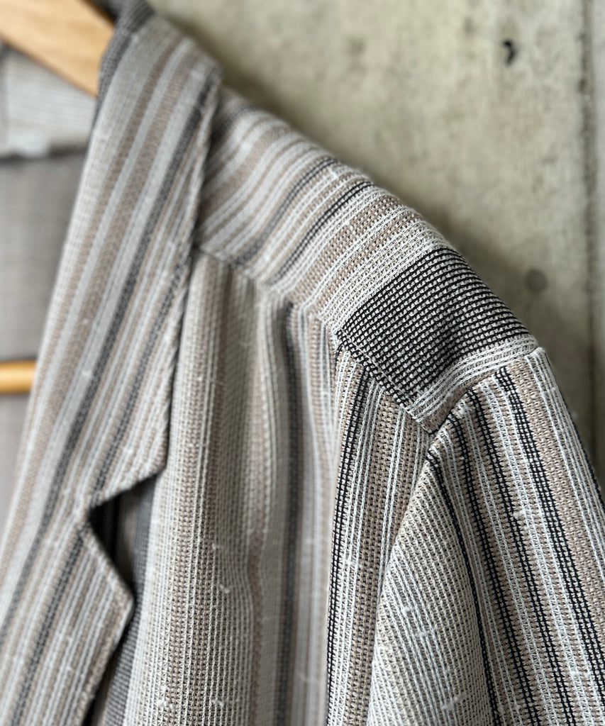ザラっと感のある軽めの生地感、裏地のないラフな仕様で