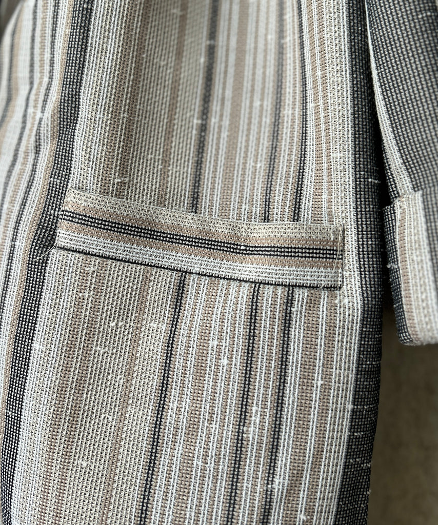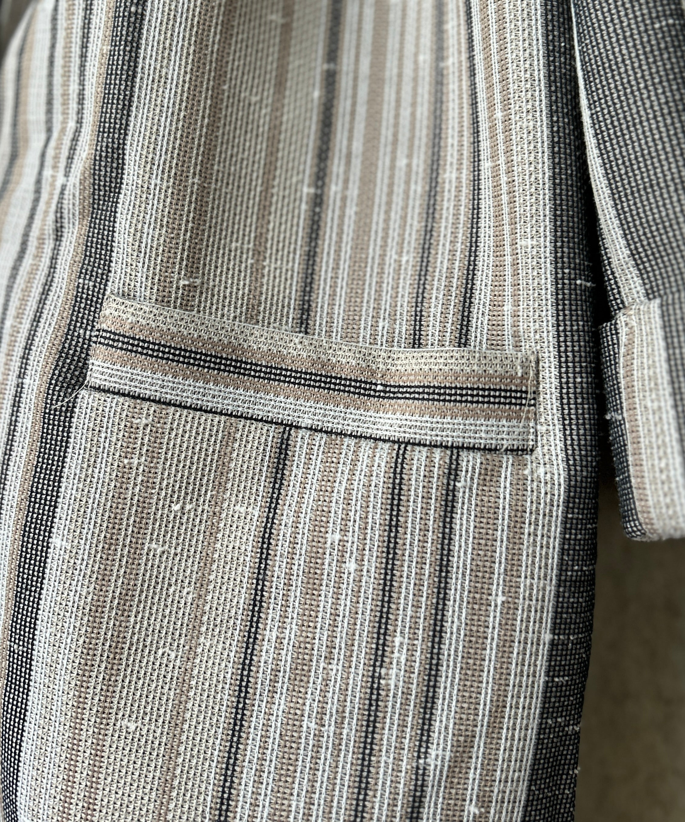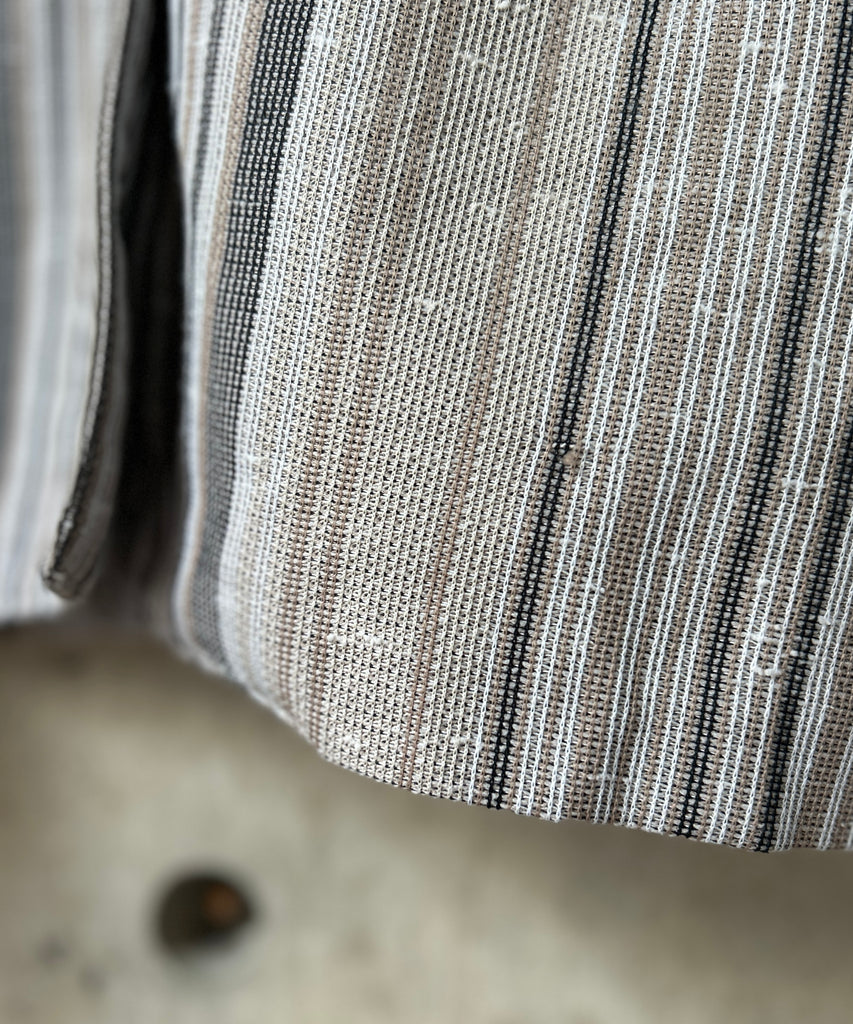 ザラっと感のある軽めの生地感、裏地のないラフな仕様で
