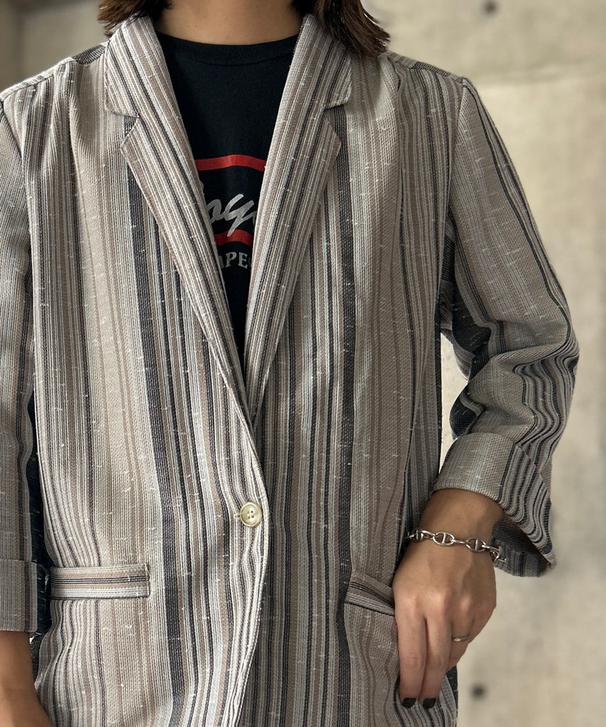 Tシャツに合わせて着るのにちょうどいい生地感です。