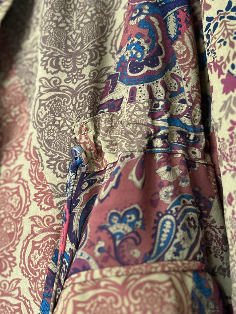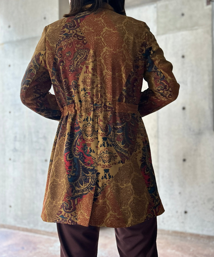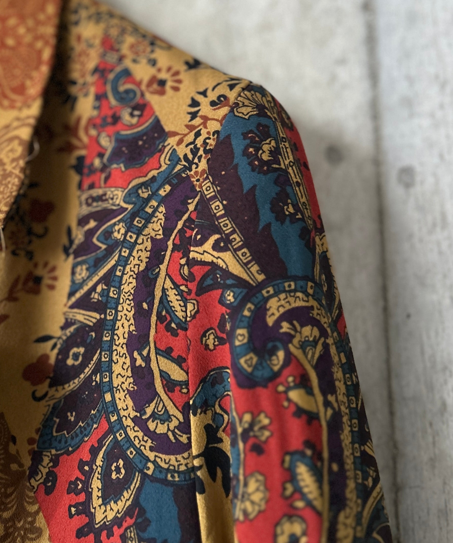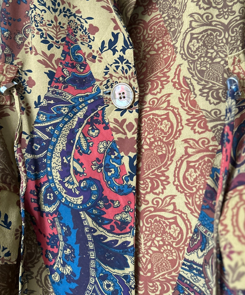 つるつるとしたポリ生地、裏地付きですがカチッとしすぎずサラッと羽織れます。