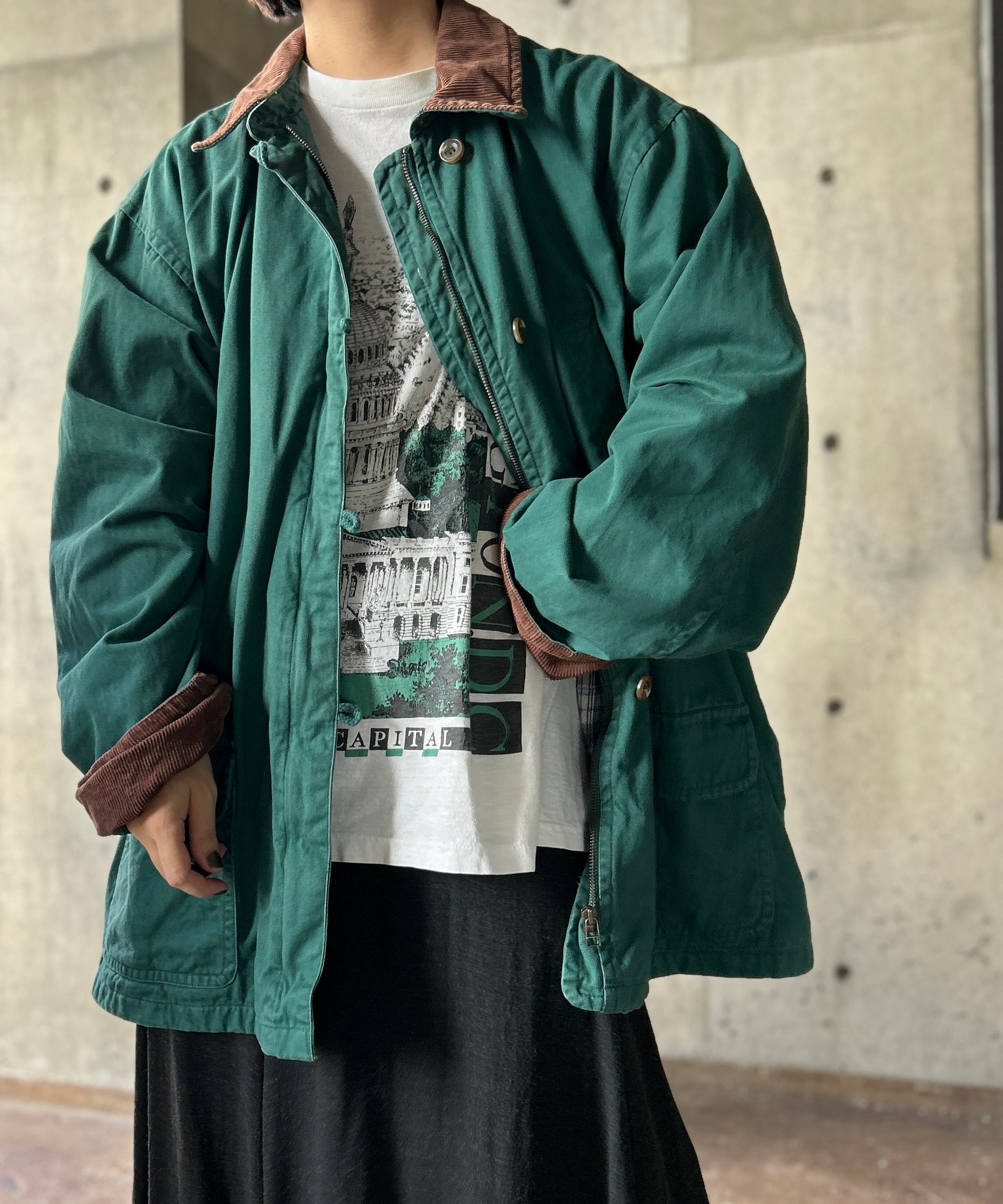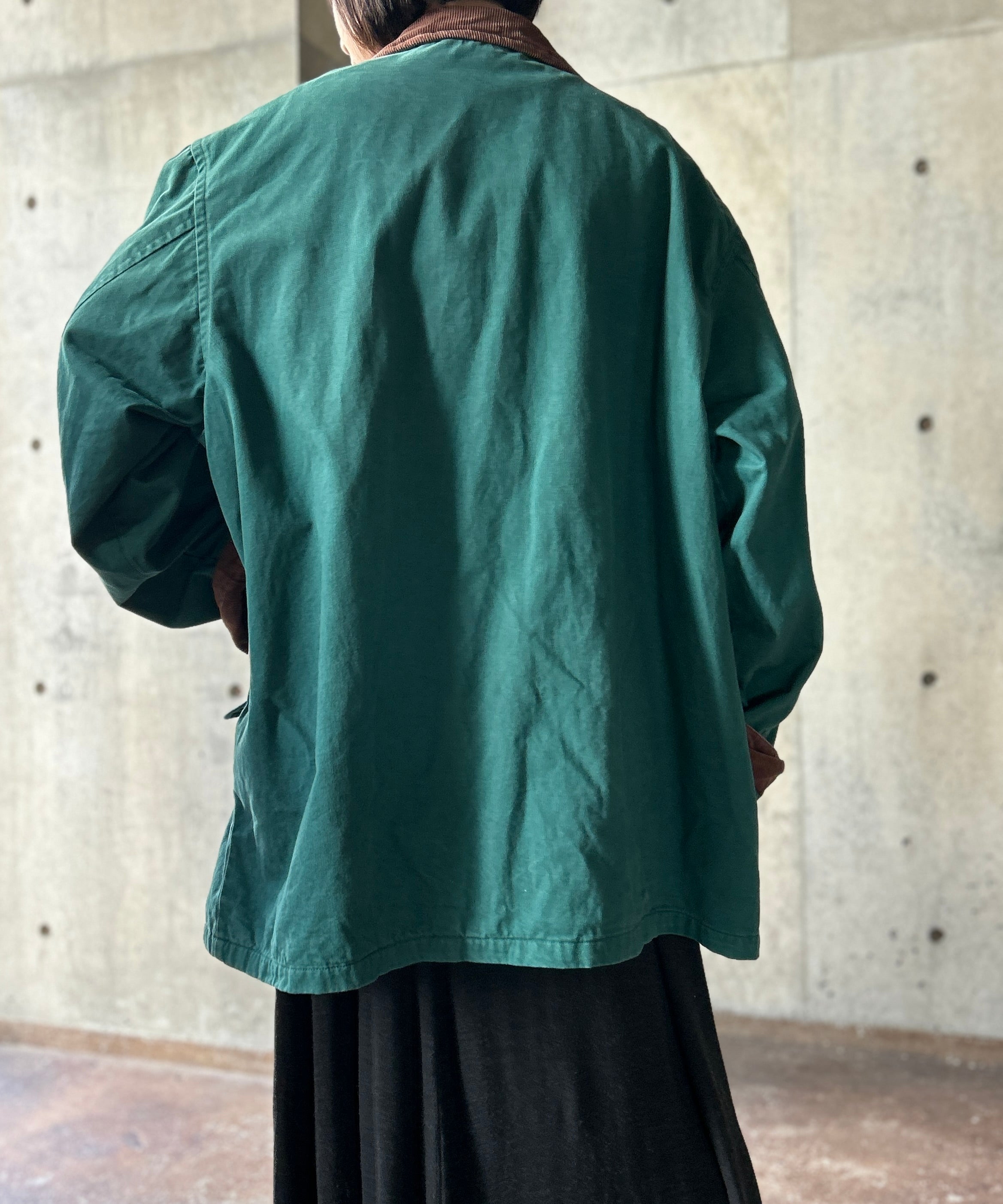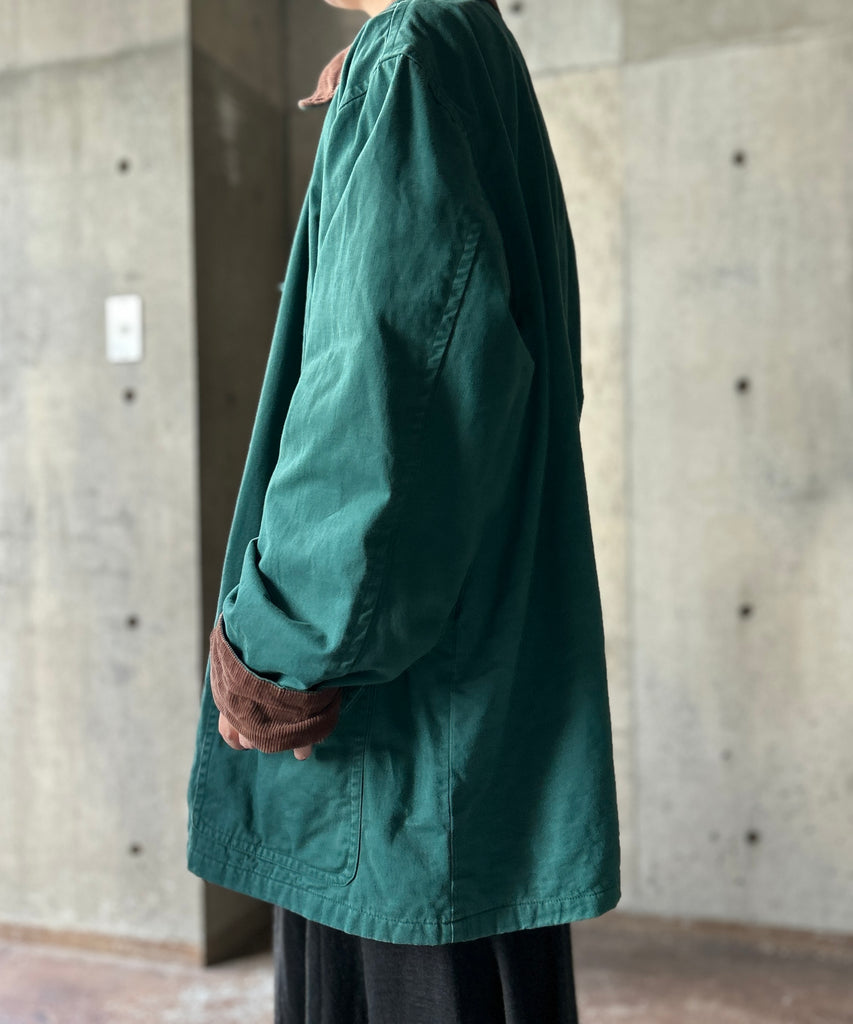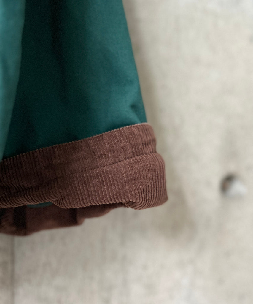 襟と袖口のコーデュロイ切り替えも秋らしくてgood。