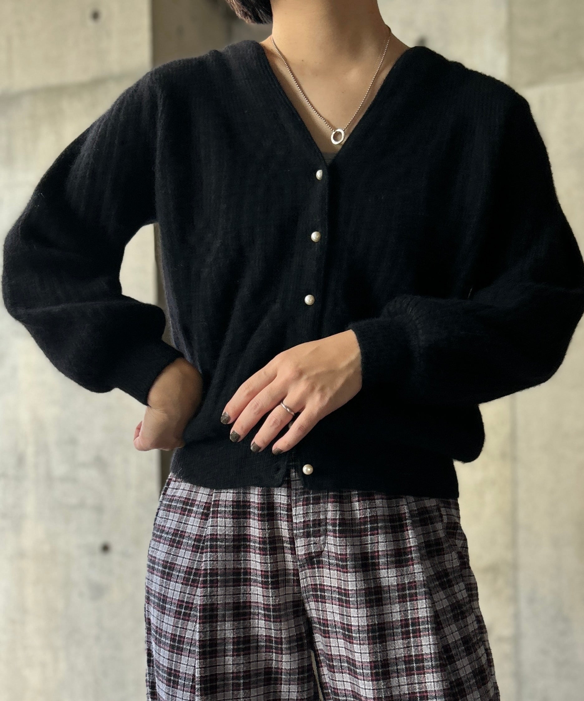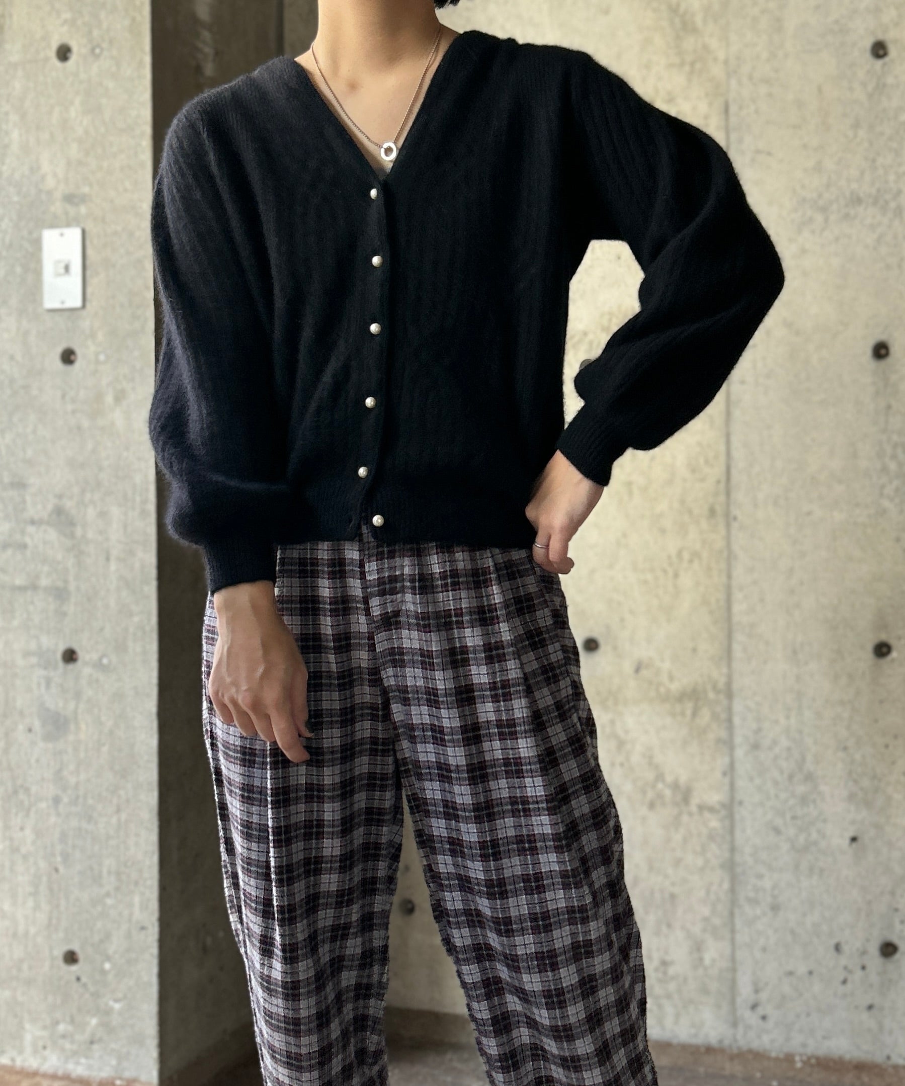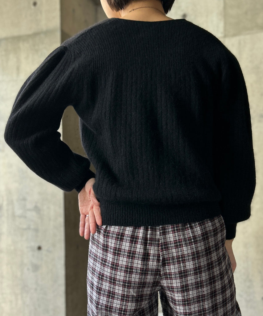 パフスリーブのニットカーディガン。