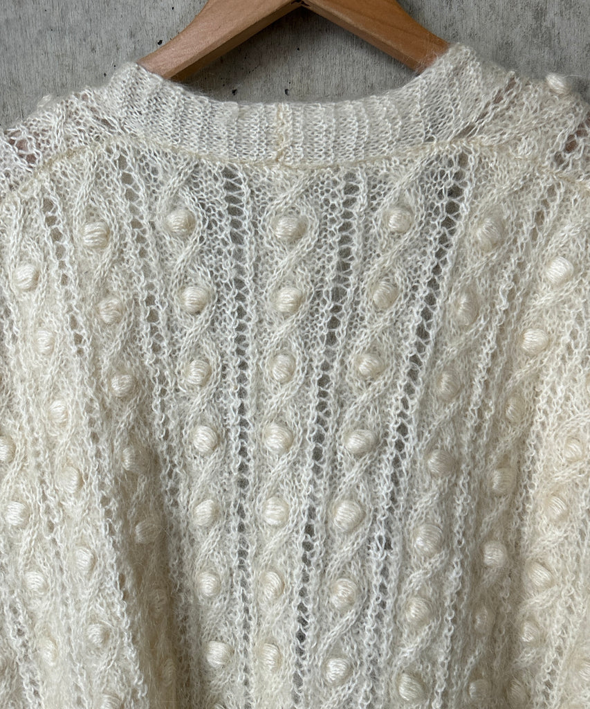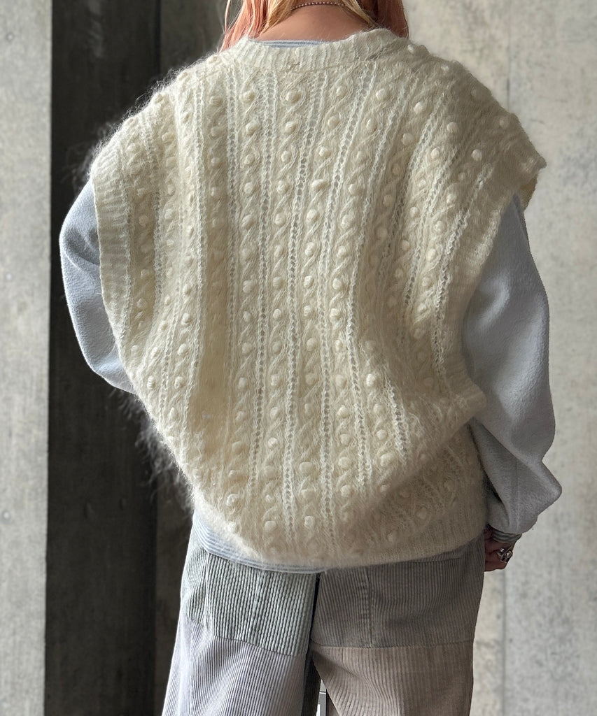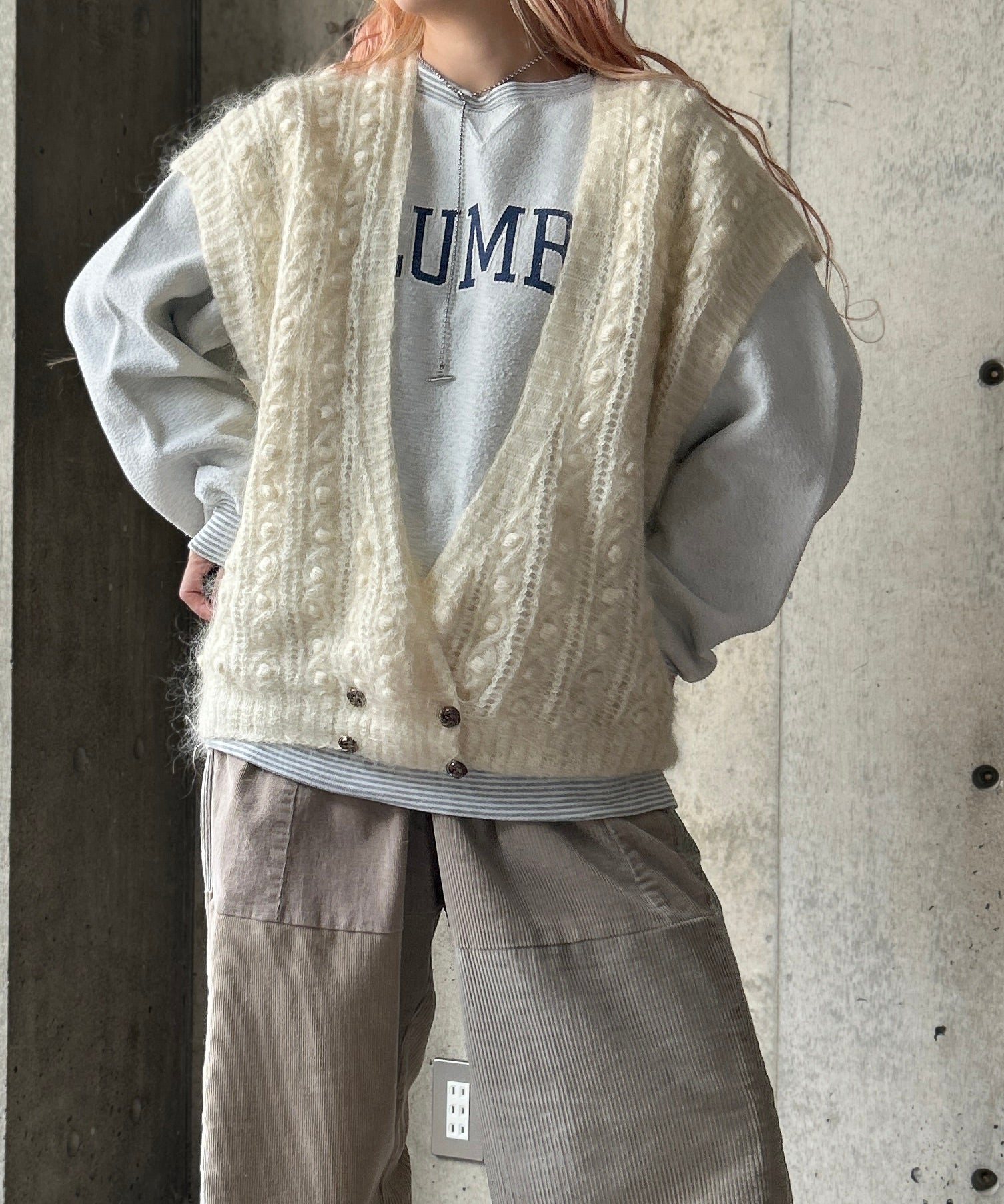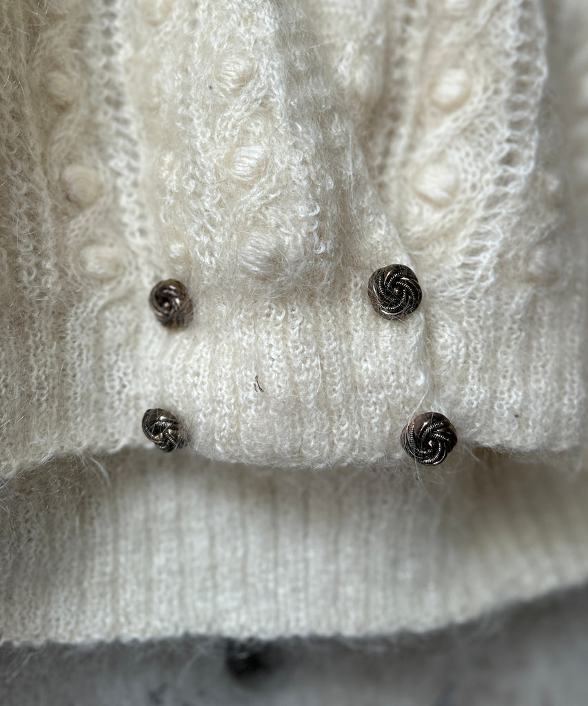 ざっくり開いたVネック、裾の金ボタンも効いています◎