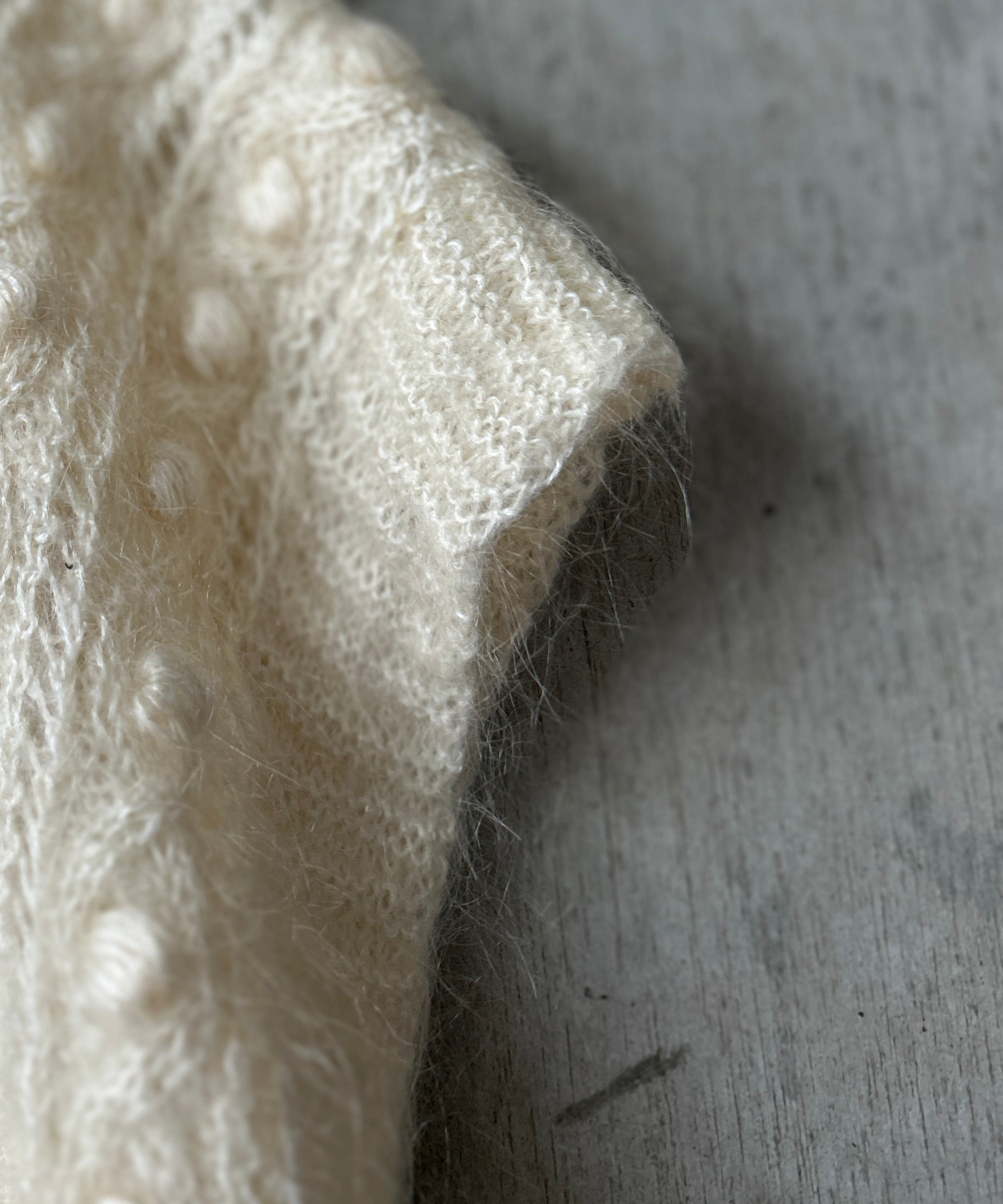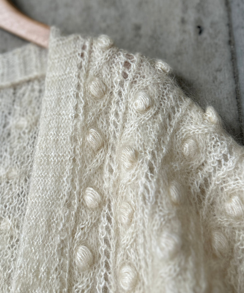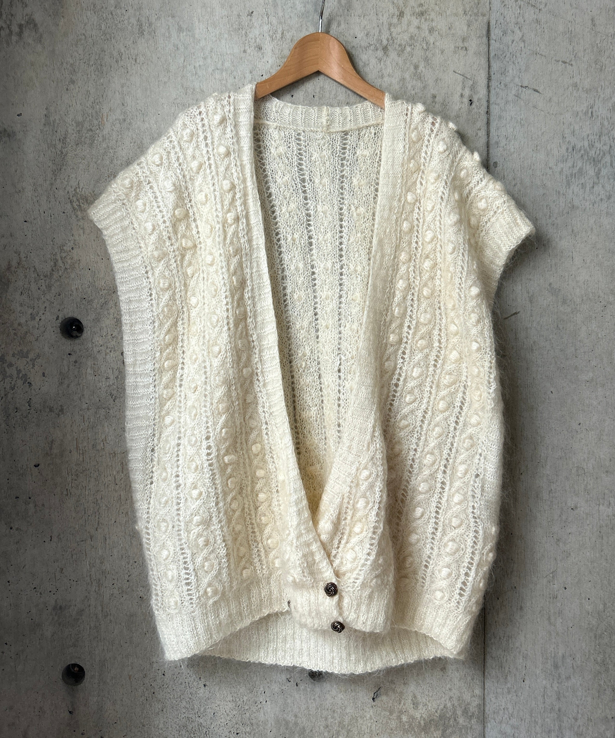 ざっくり開いたVネック、裾の金ボタンも効いています◎