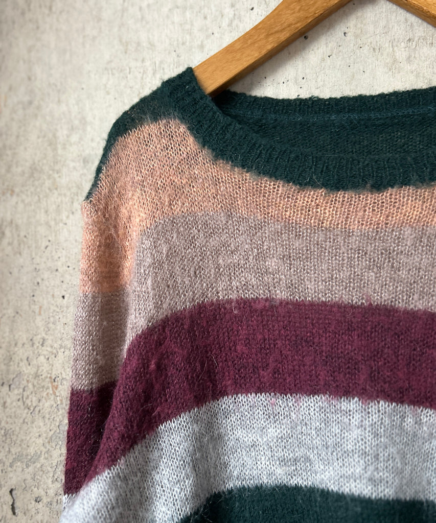 ボーダーですが女性らしさもありつつ着られる一着です。