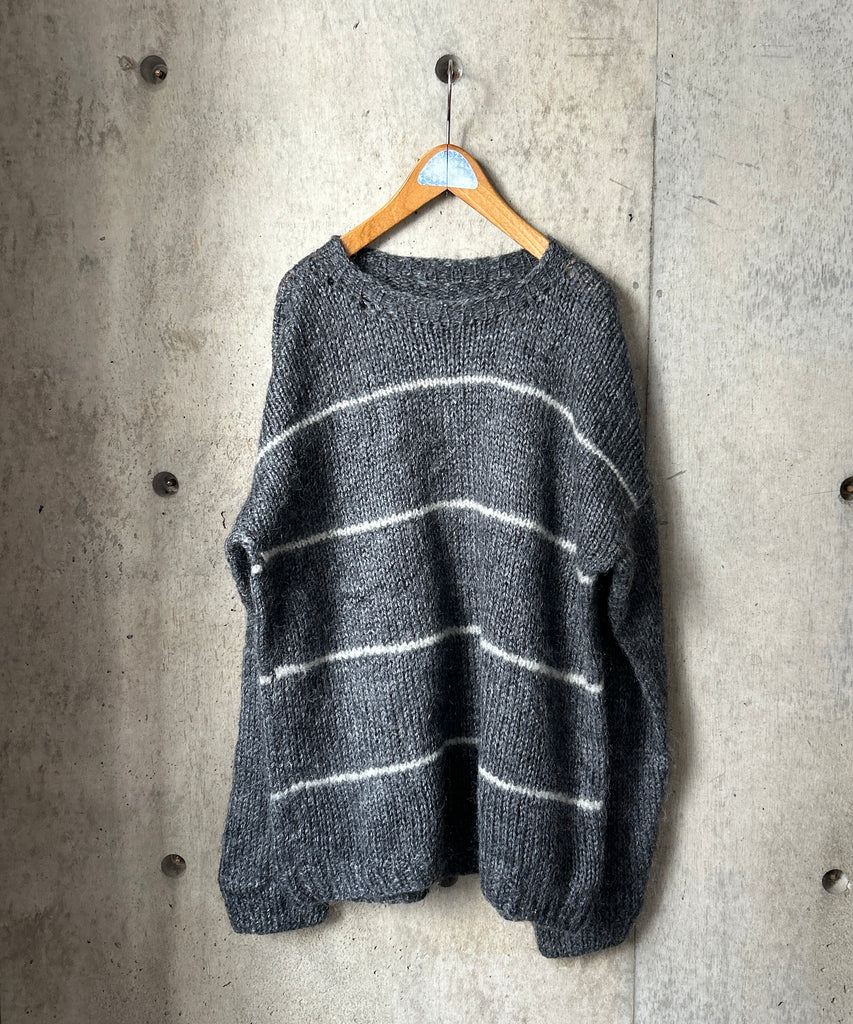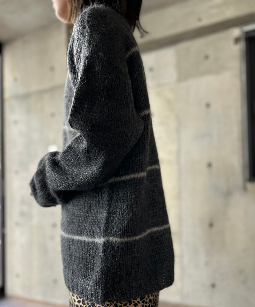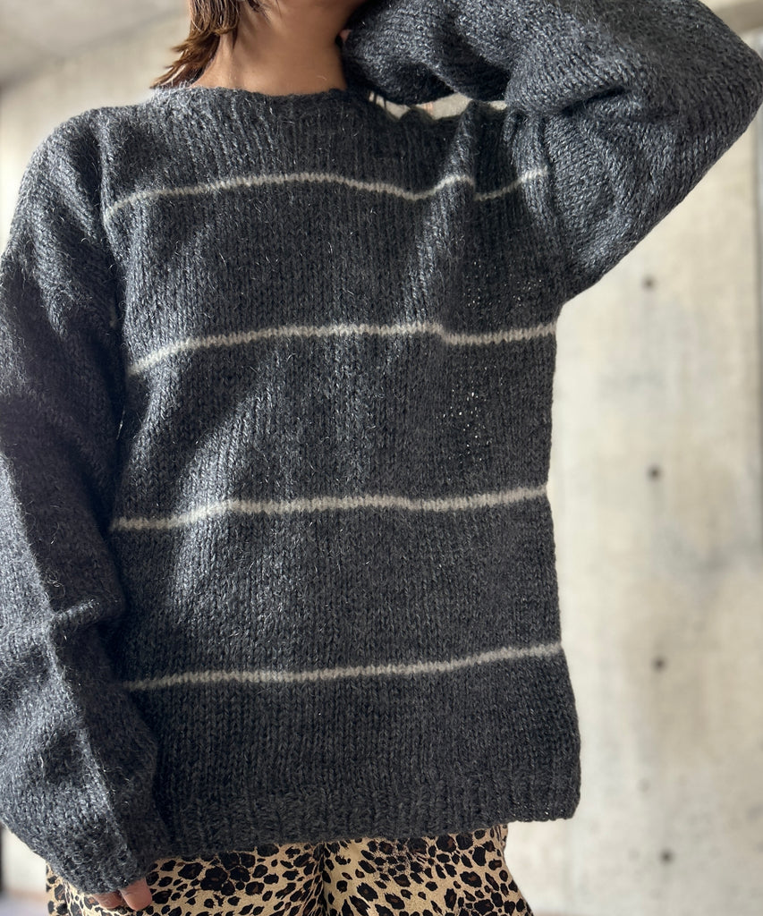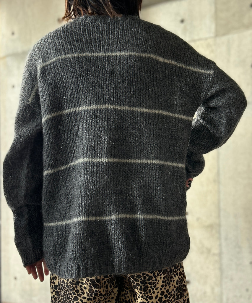 ボーダー柄のモヘアニット。