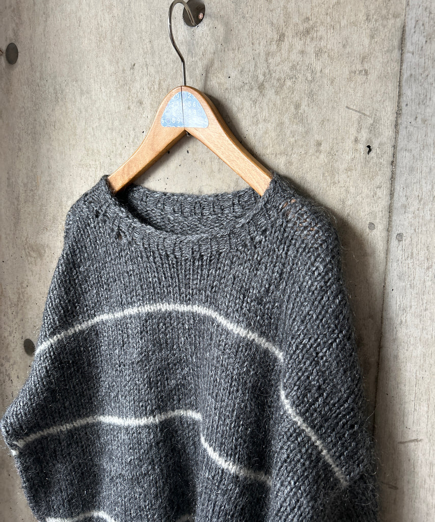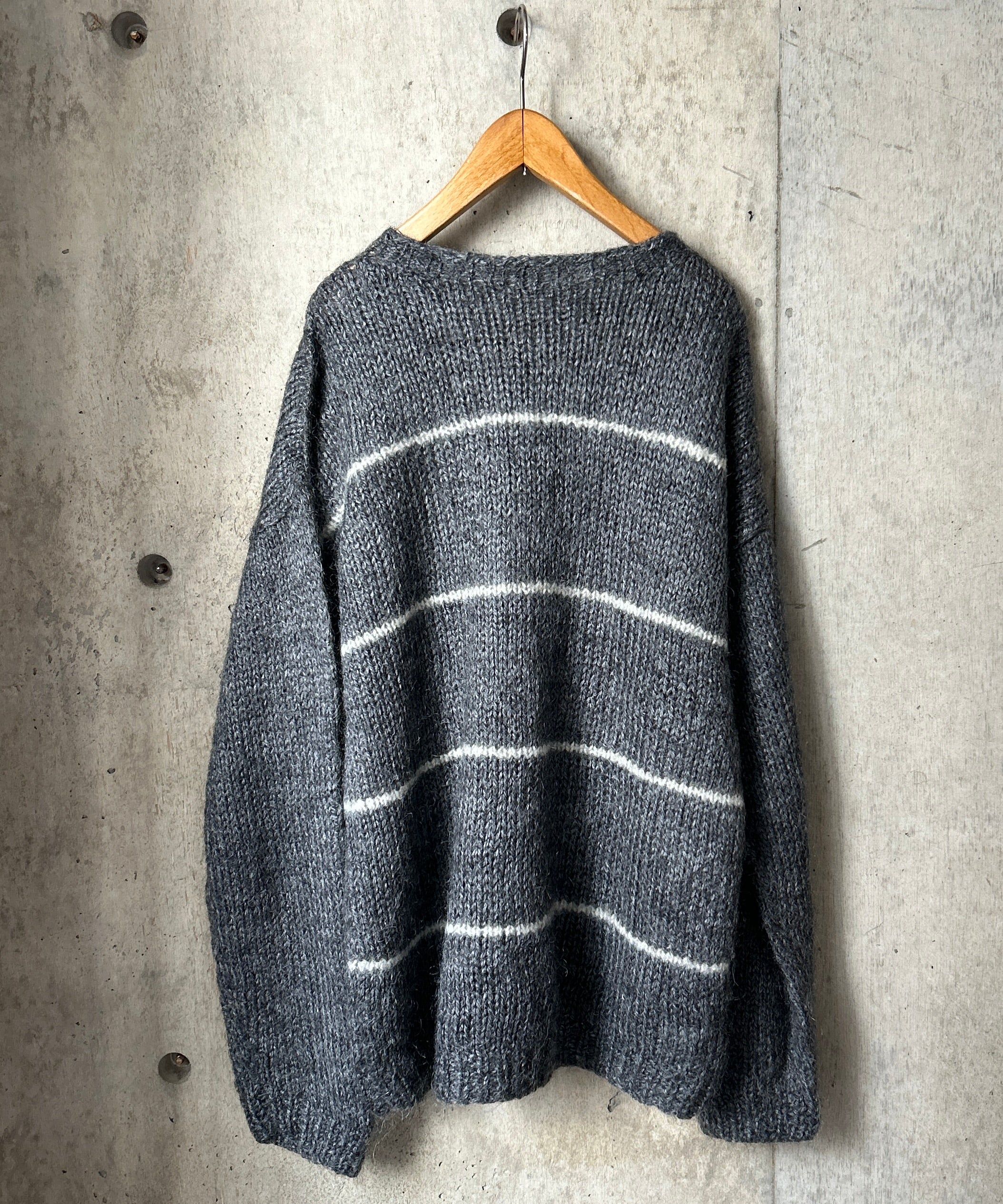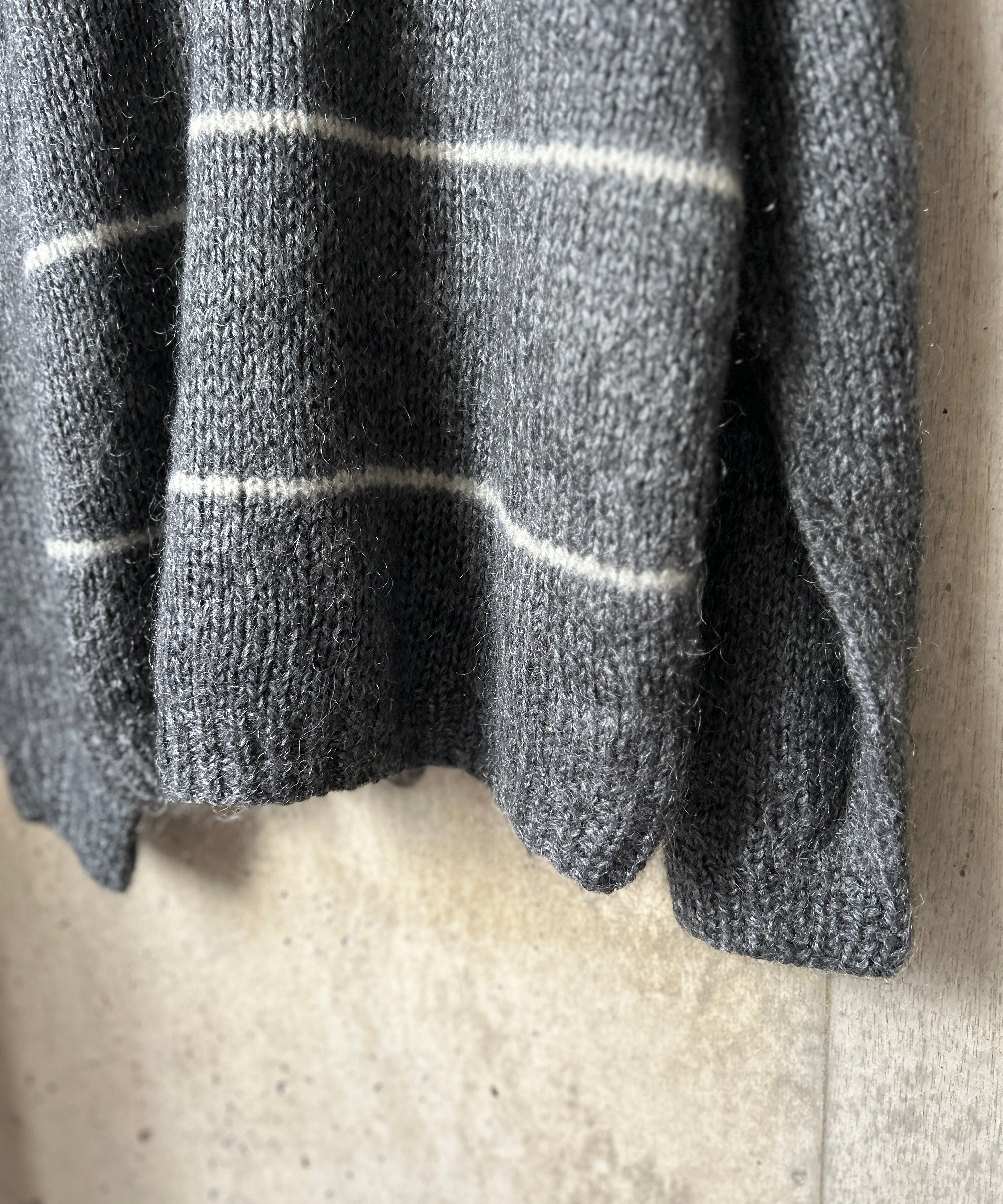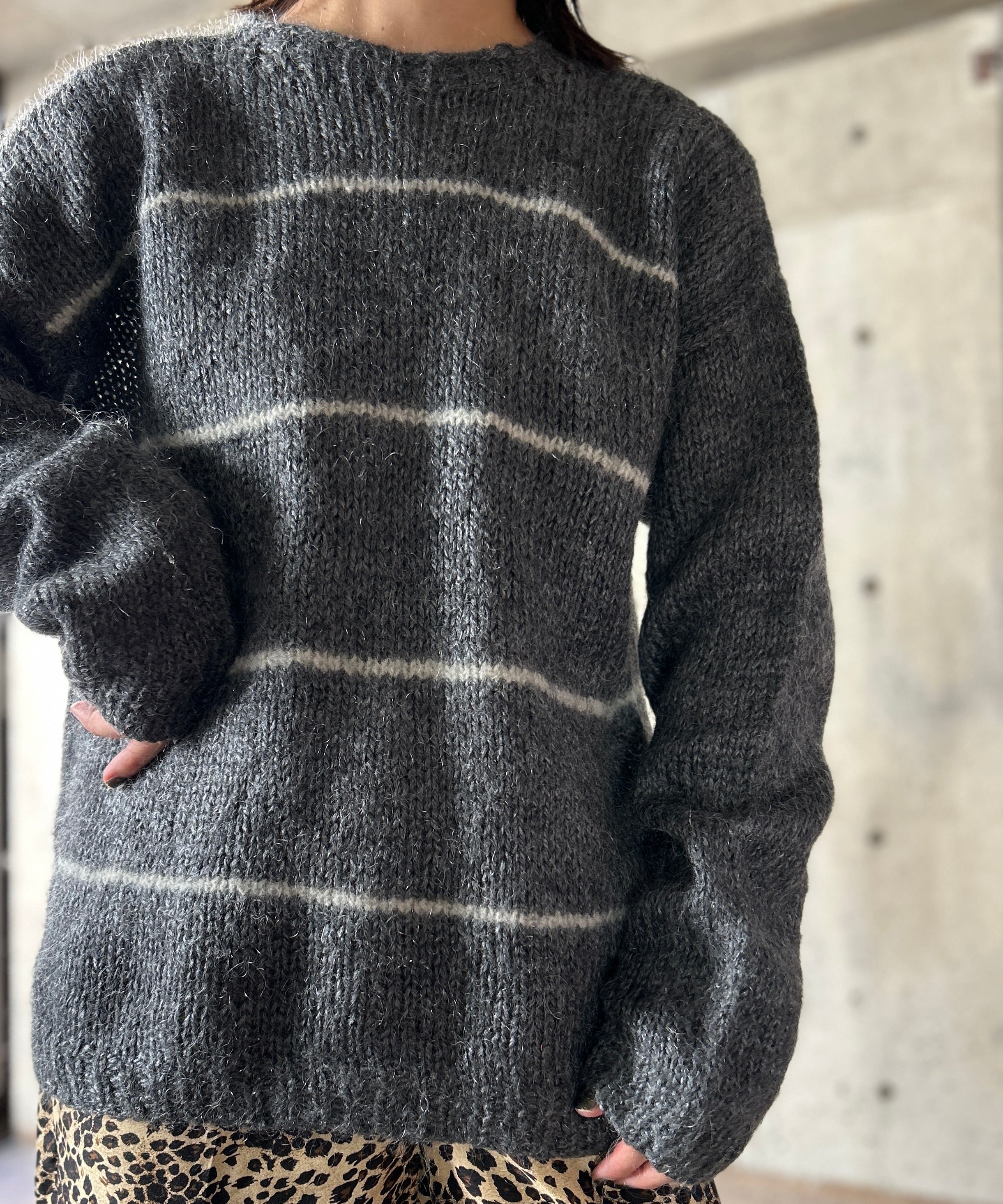 ボーダー柄のモヘアニット。
