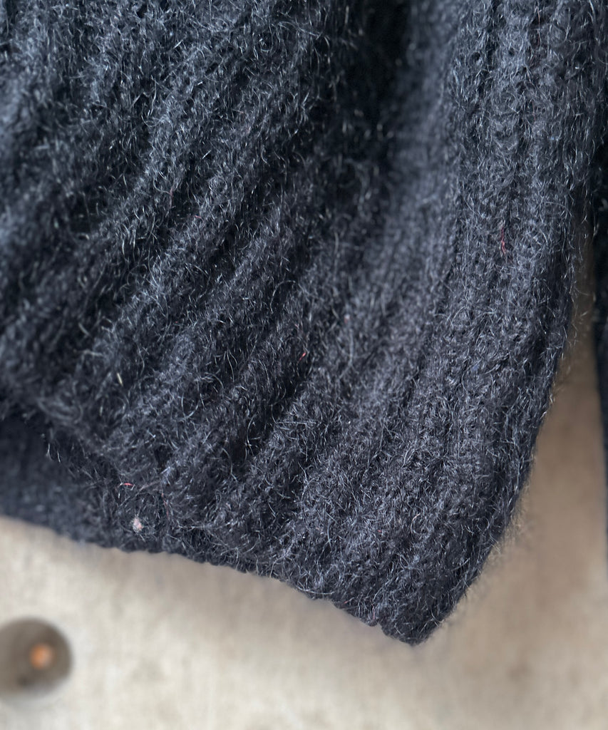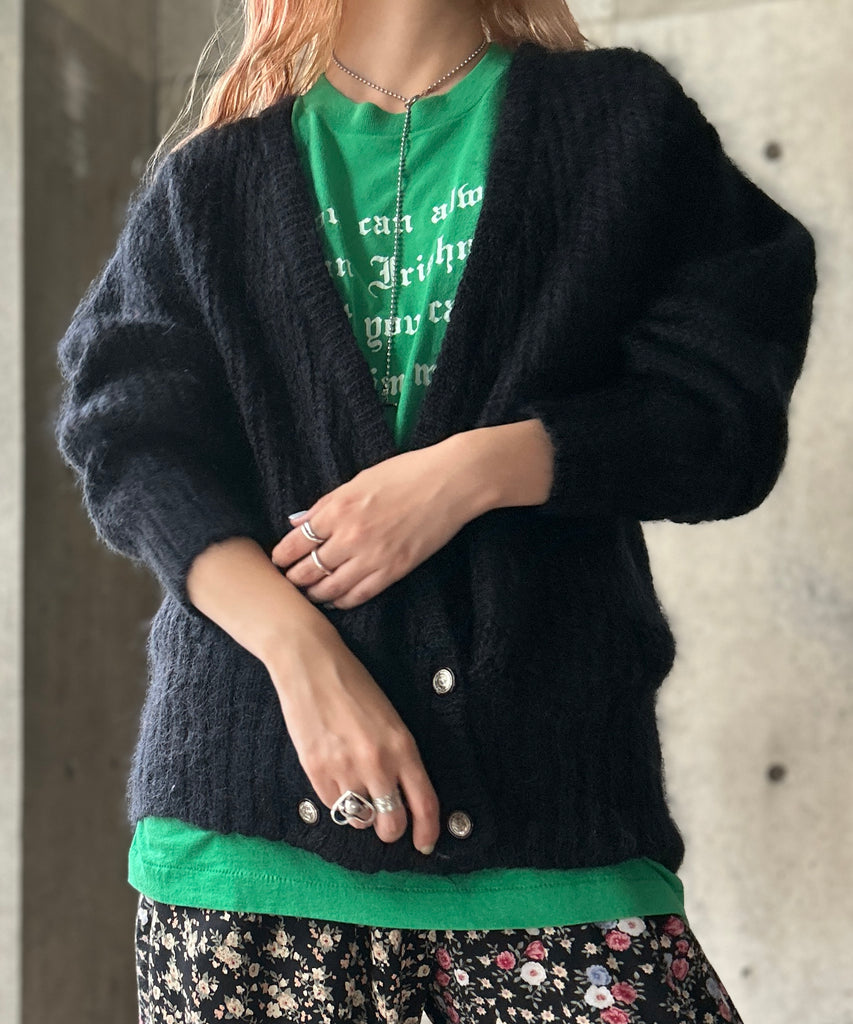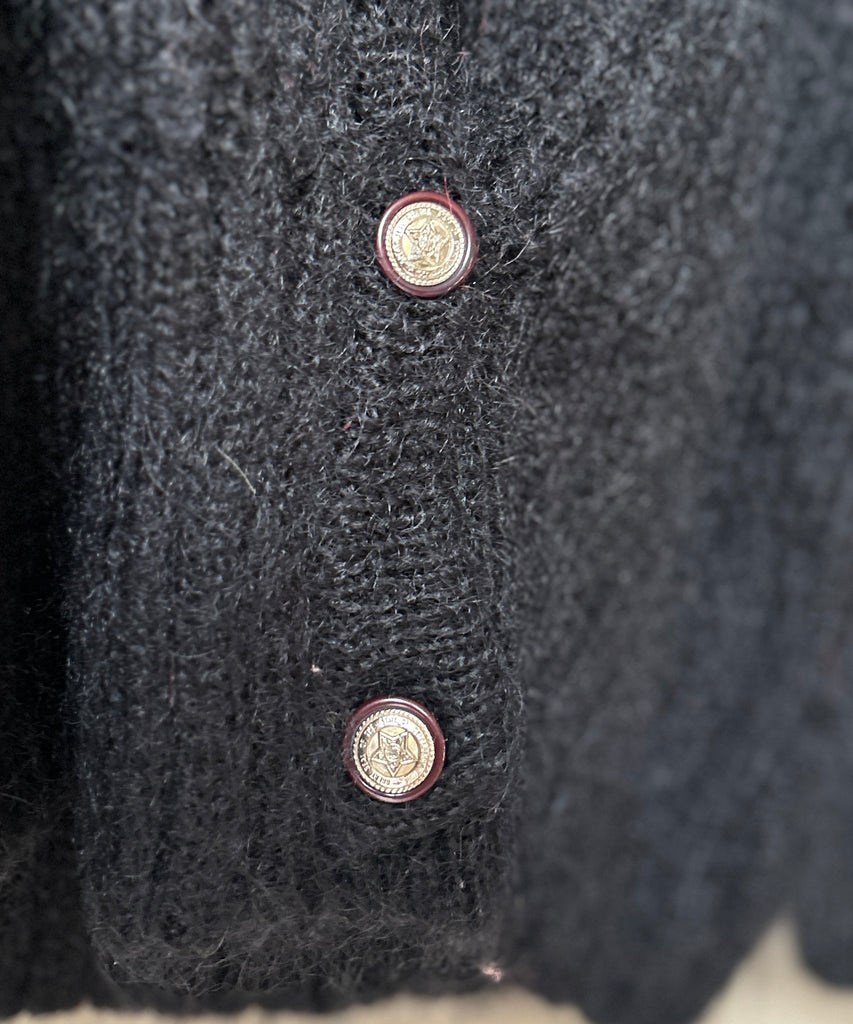 深めのVネックでダブルジャケットのような仕様のボタンが面白いデザイン。