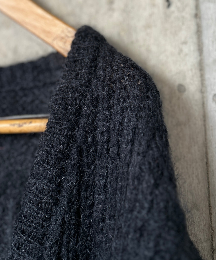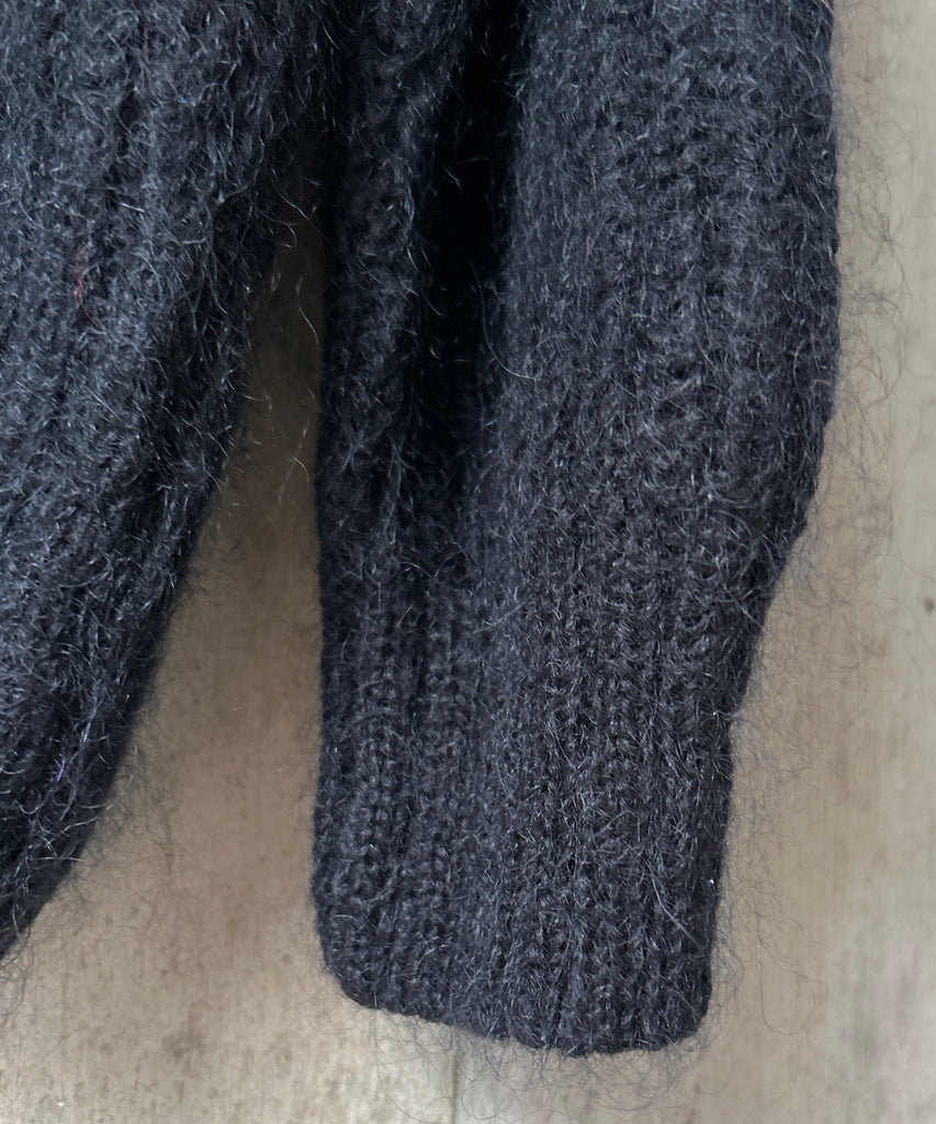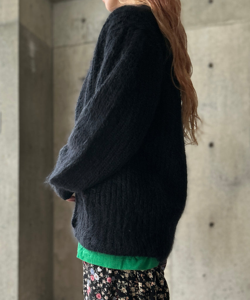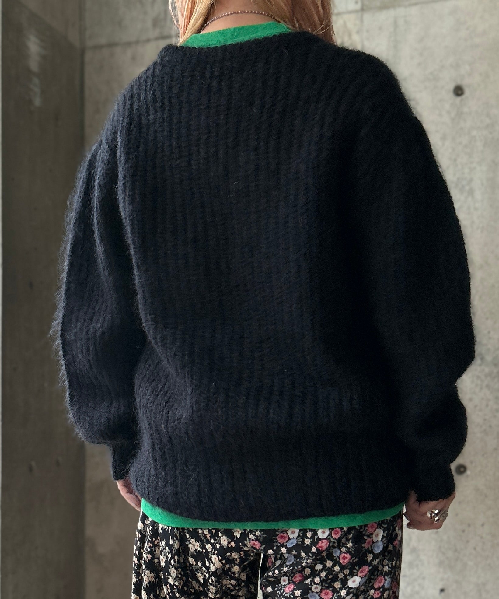 深めのVネックでダブルジャケットのような仕様のボタンが面白いデザイン。