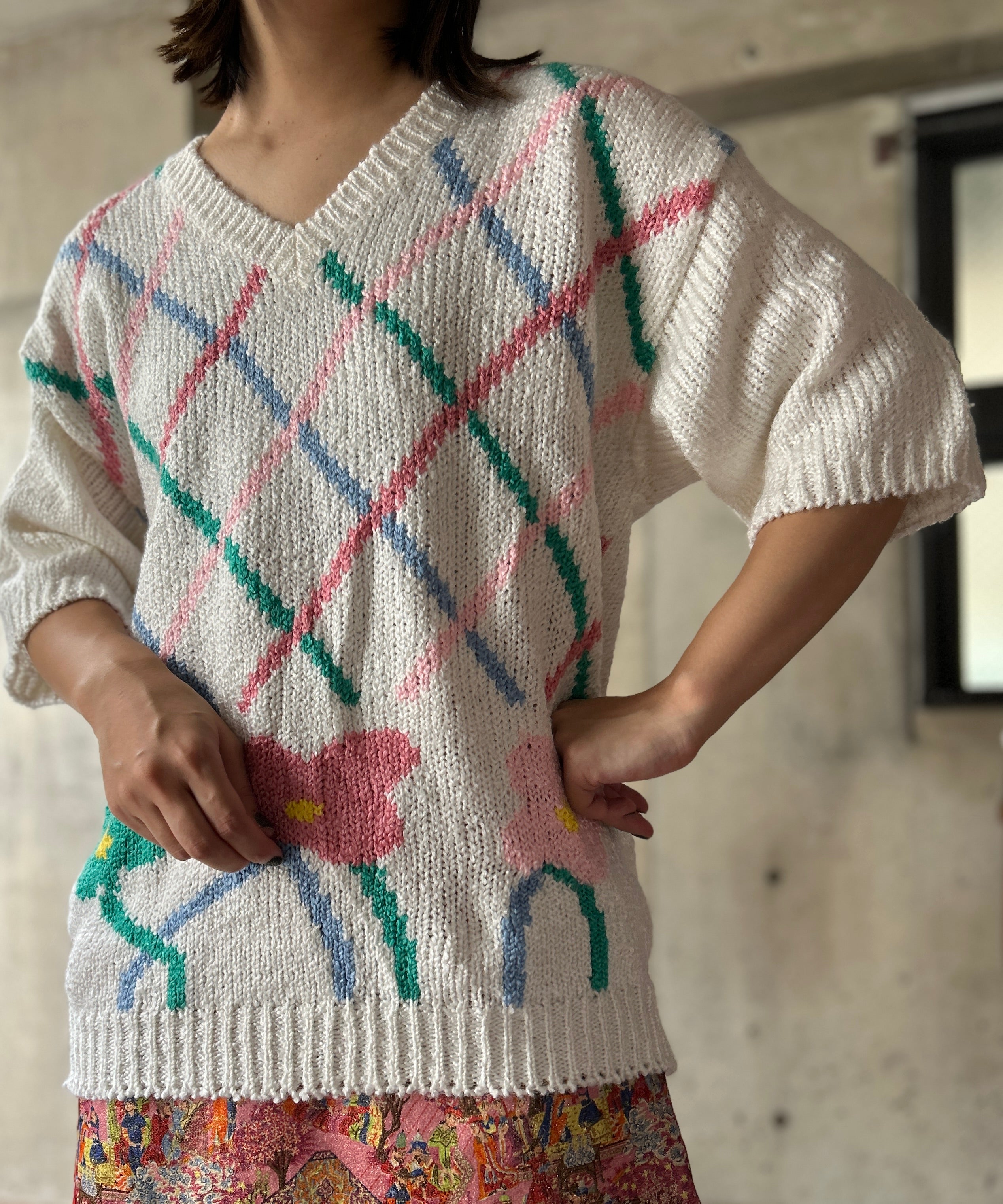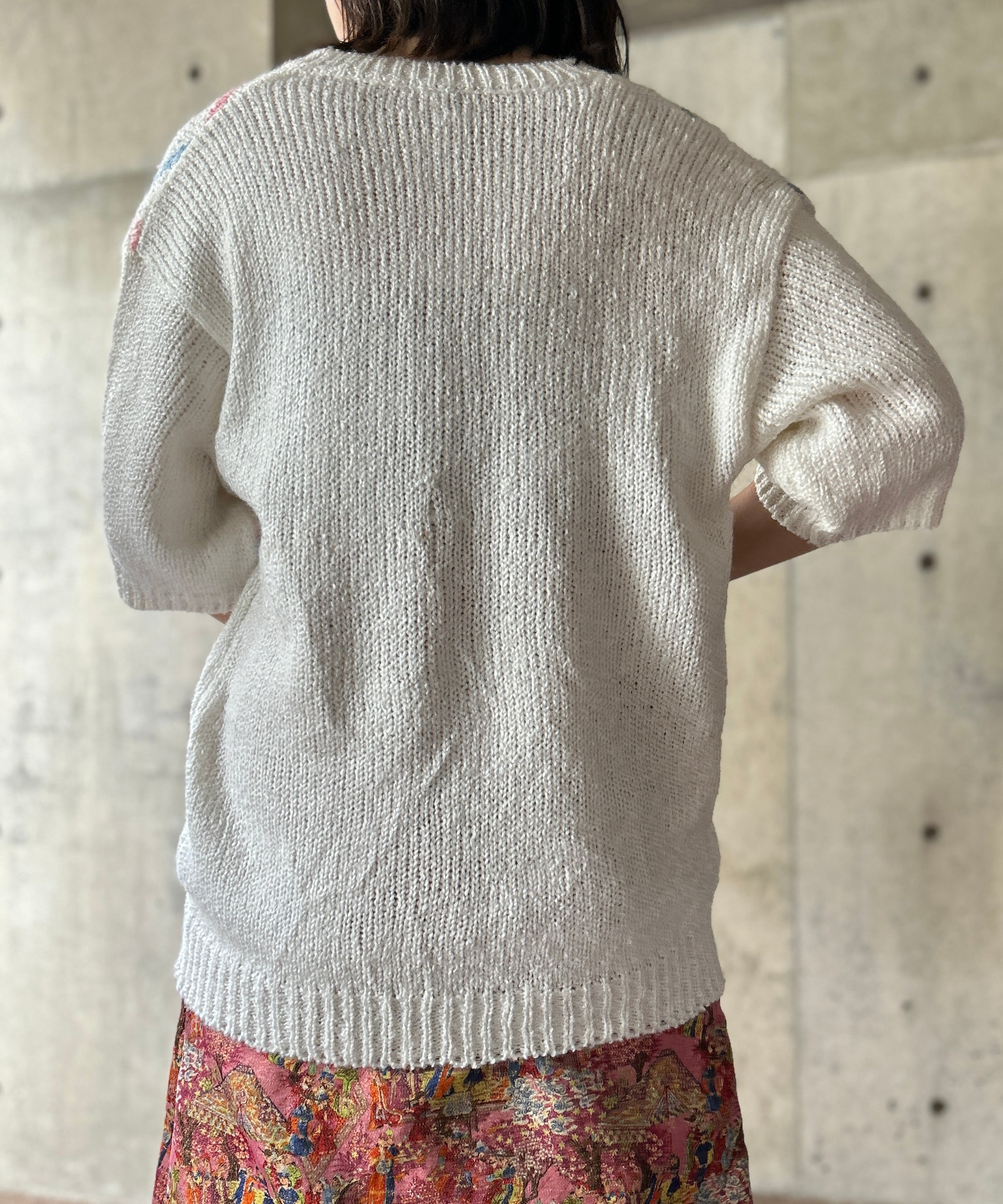 サラッと軽めの生地感のアクリル半袖ニット。