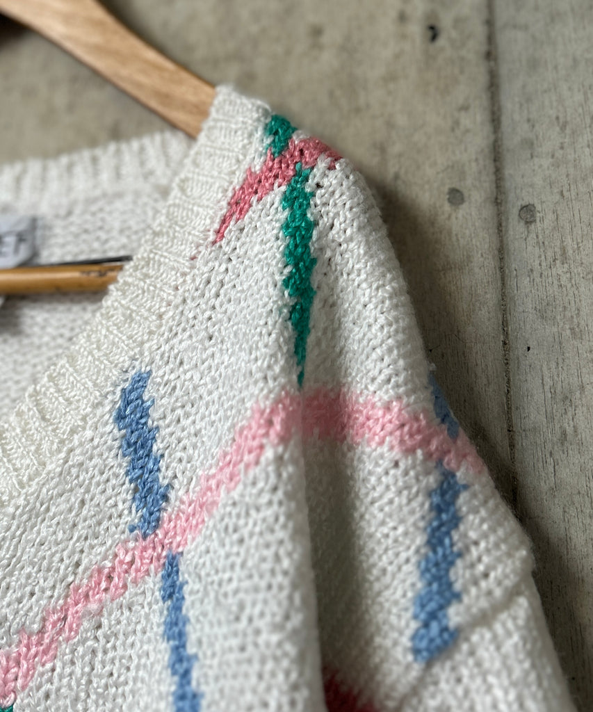 ホワイトベースにパステルカラーのお花柄とラインがかわいいです◎