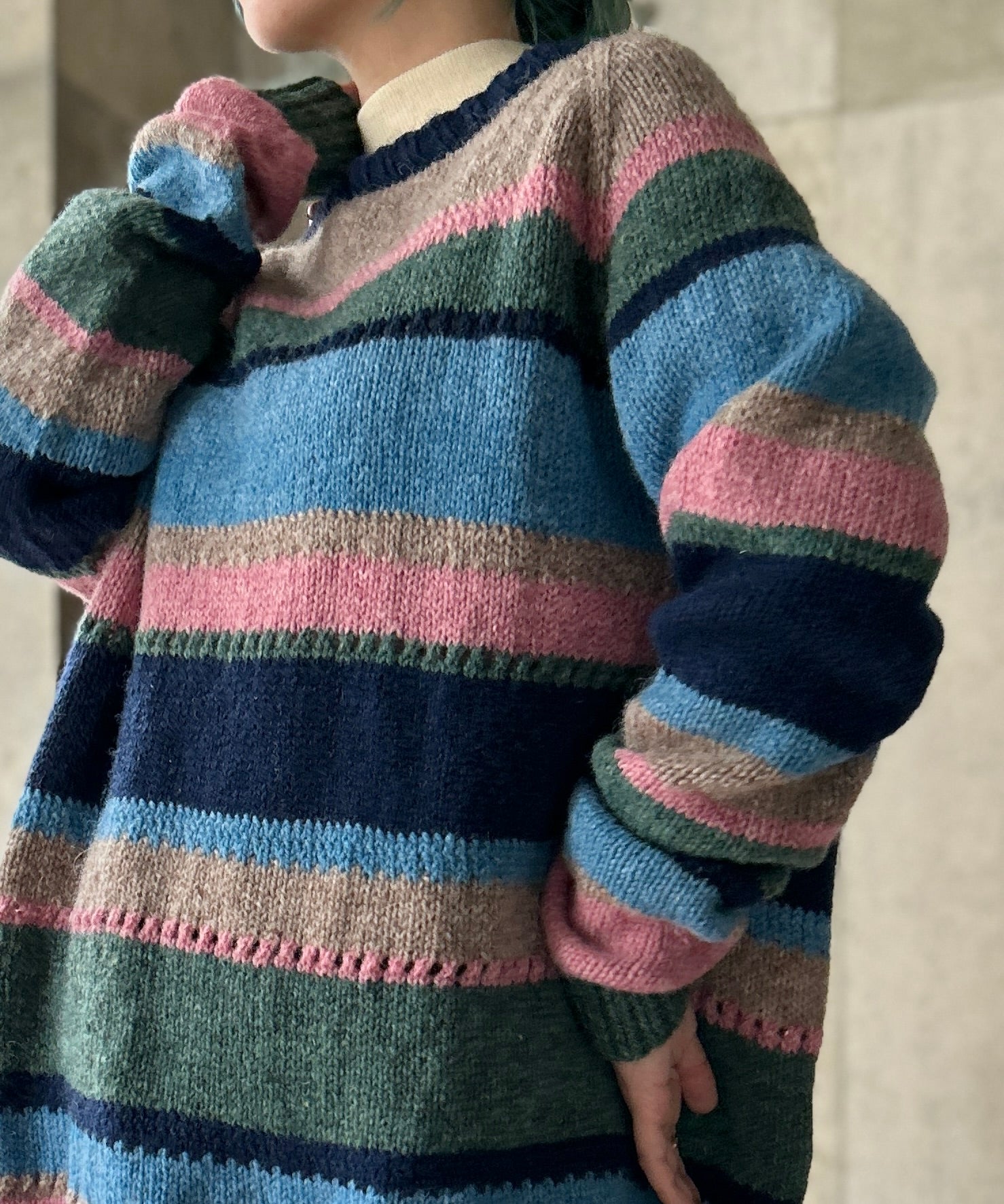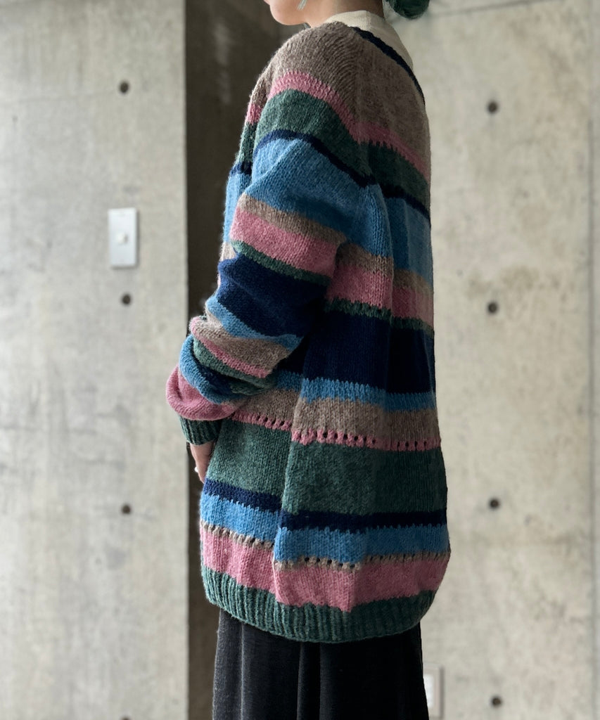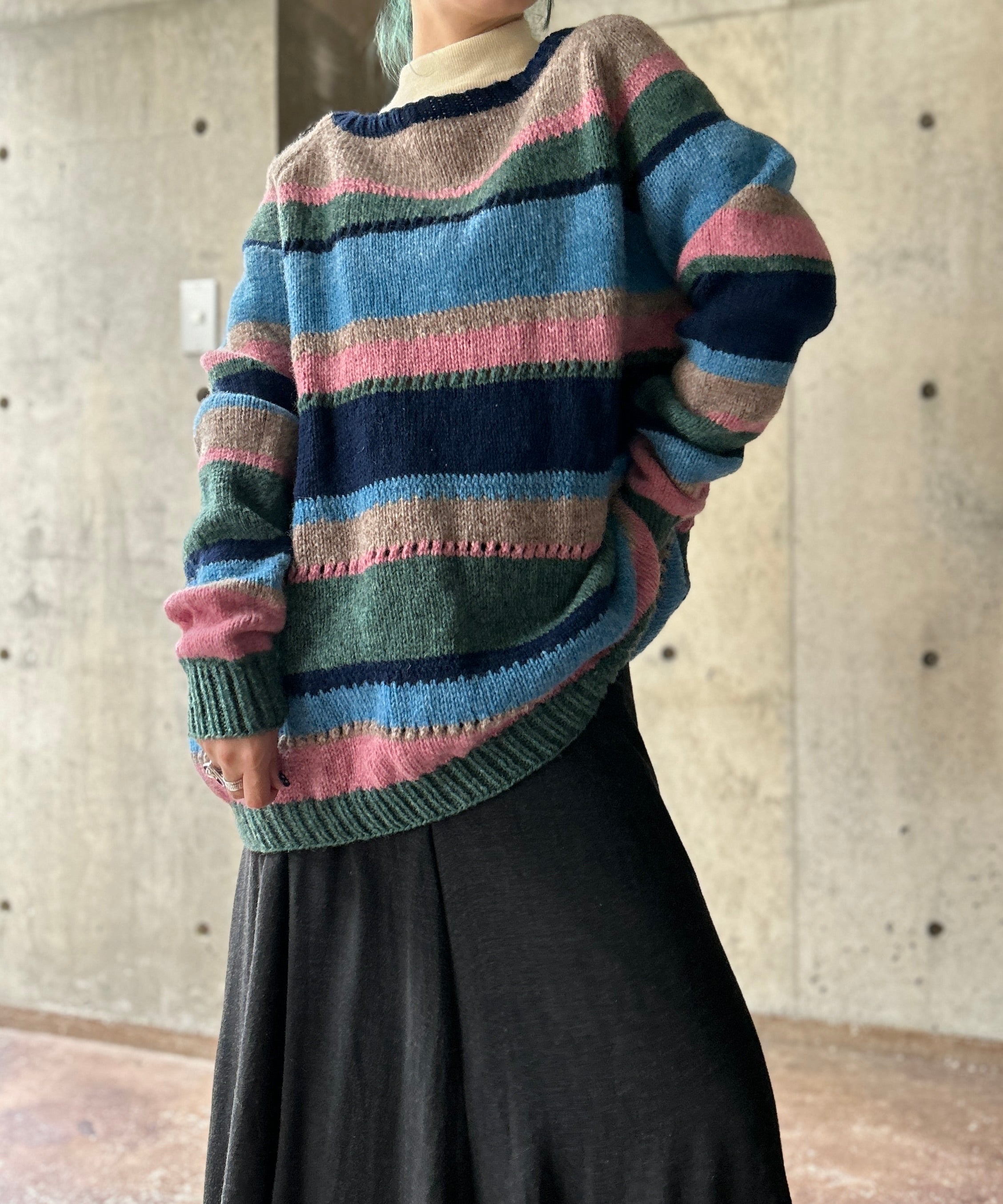 ボーダー柄のニット。