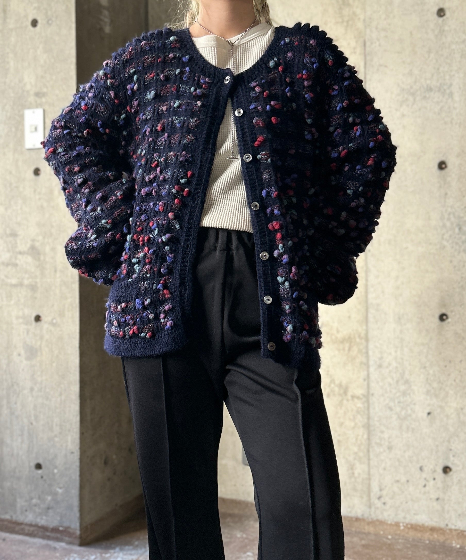 Colorful PomPon Knit Cardigan