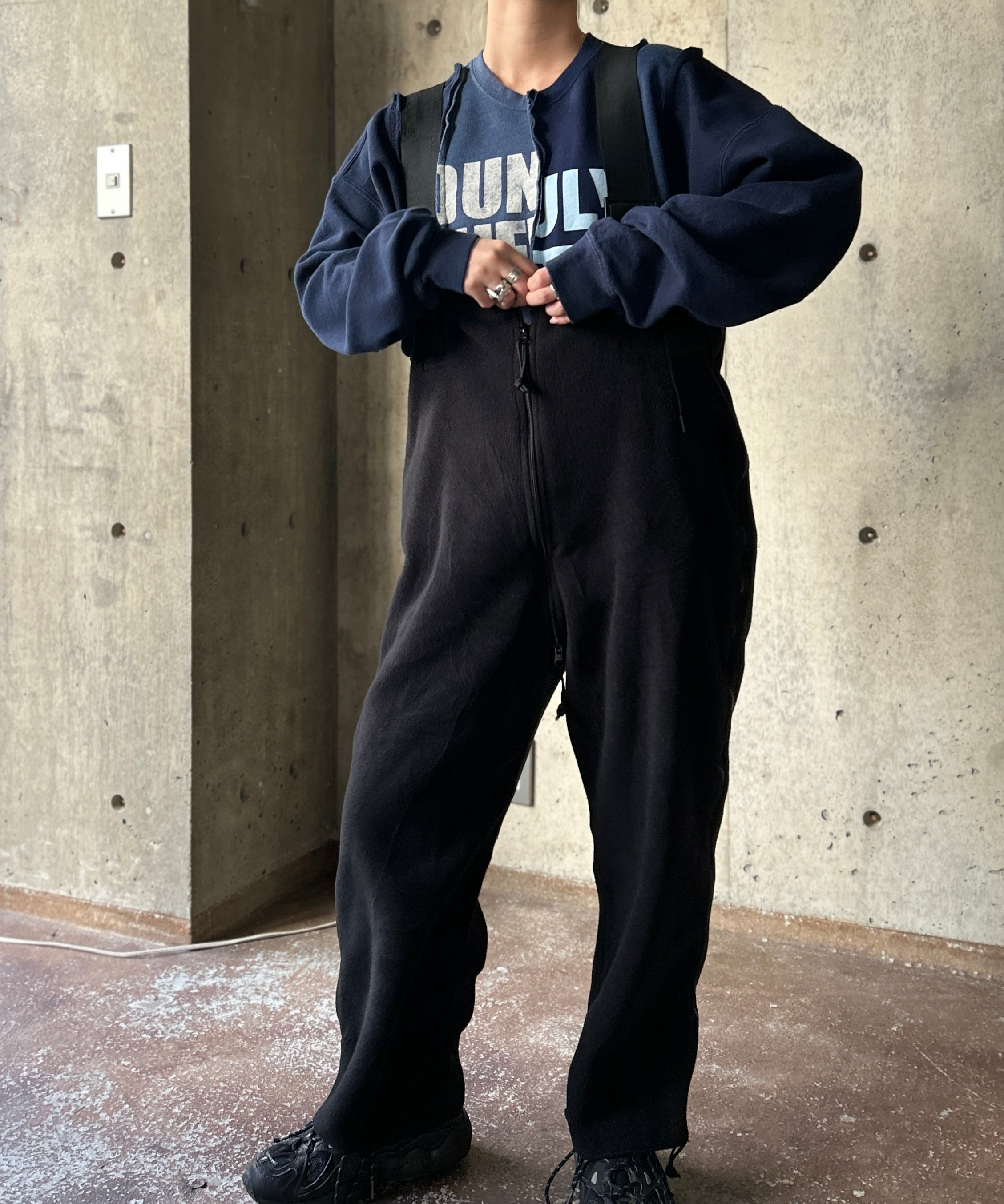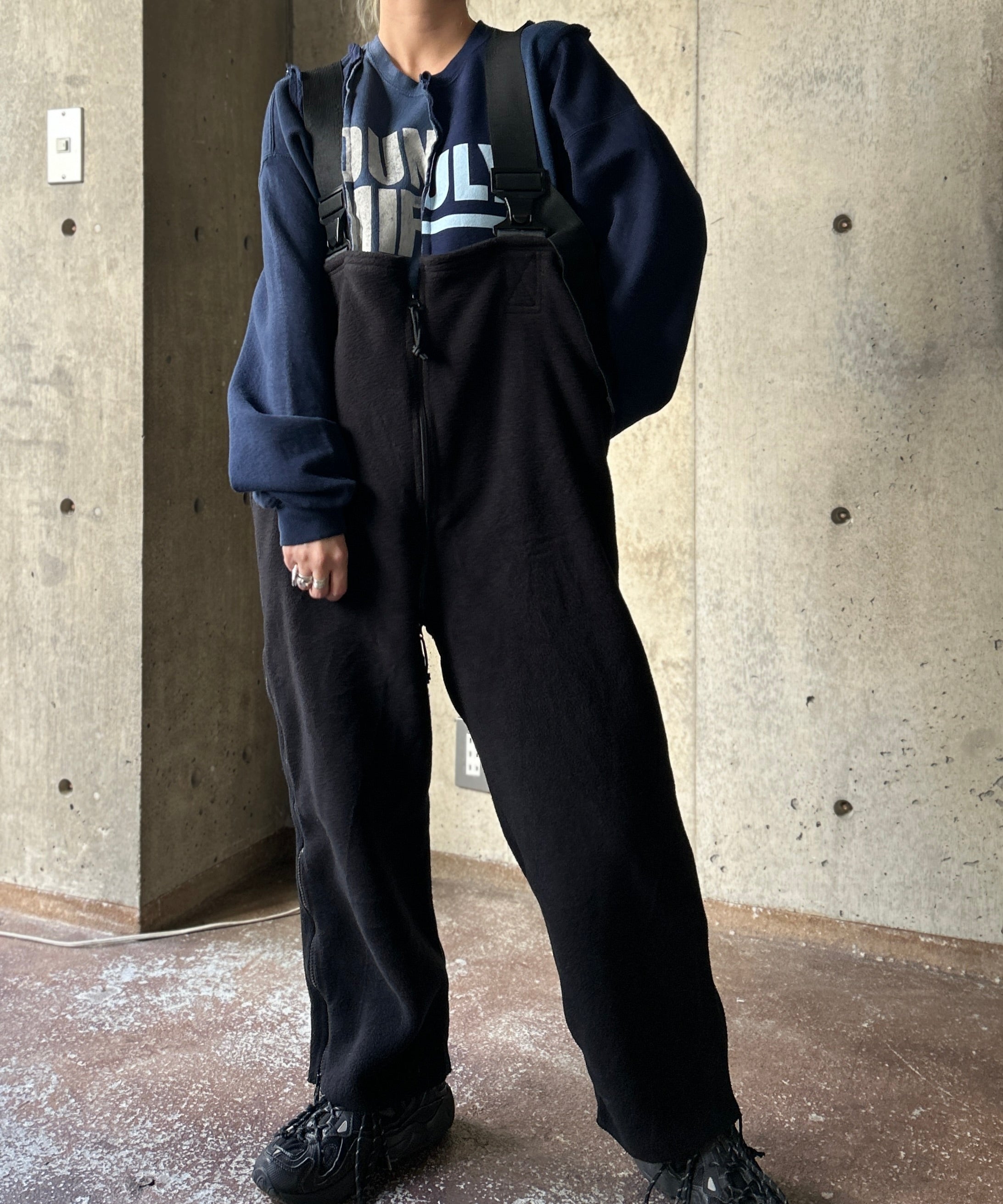 米軍の極寒冷地用被服システムECWCS(Extended Cold Weather Clothing System)として本来はインナーとして使うためのフリースオーバーオール。