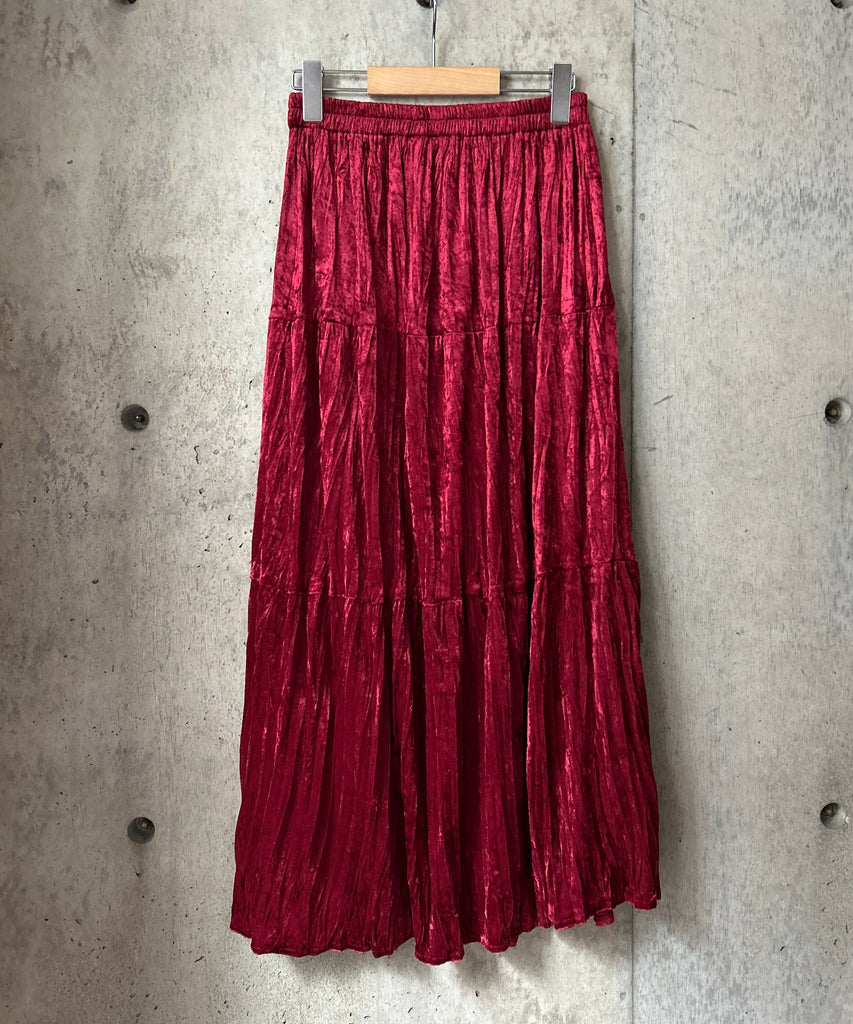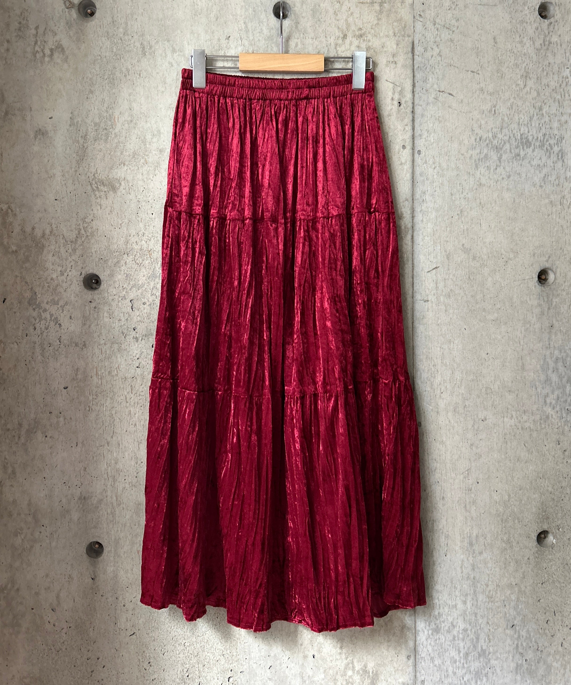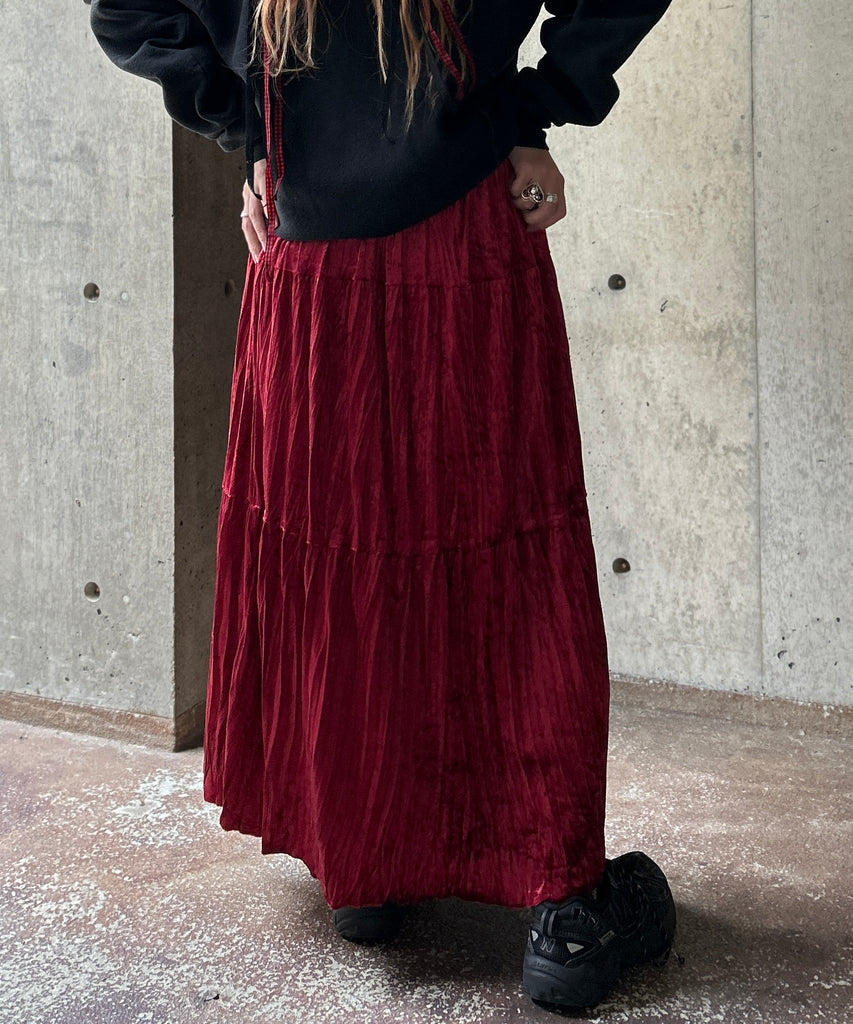 クラッシュベロア生地のティアードスカート。