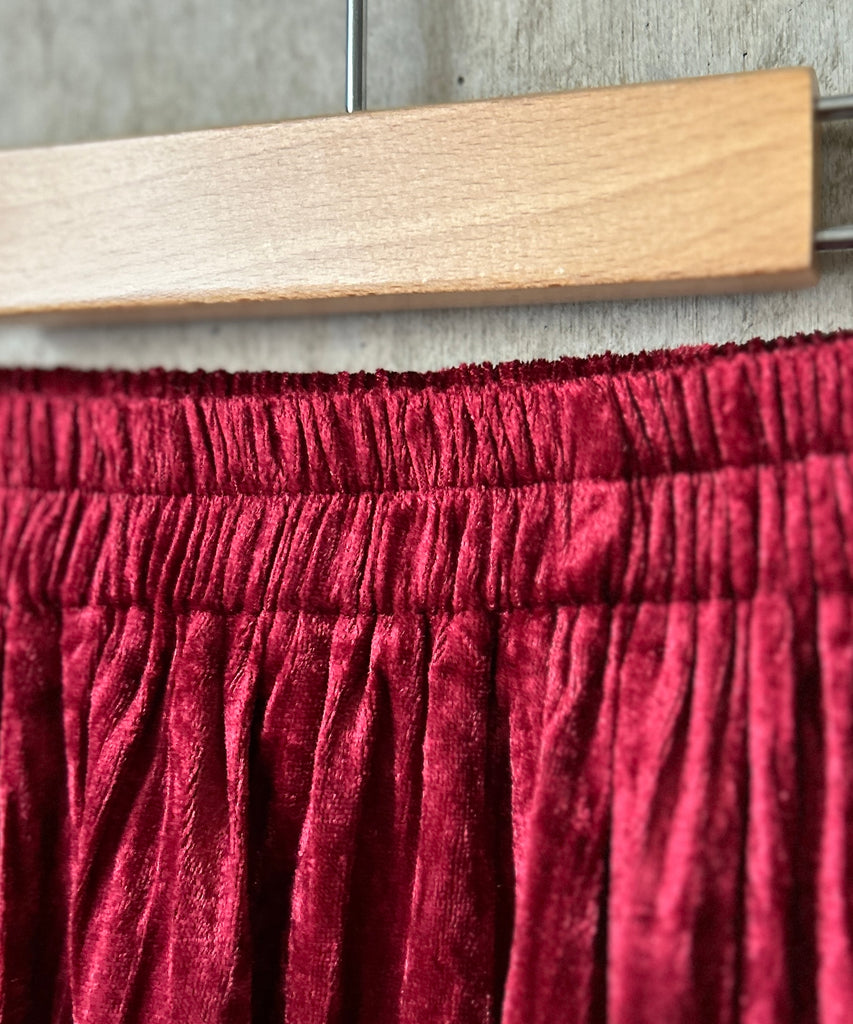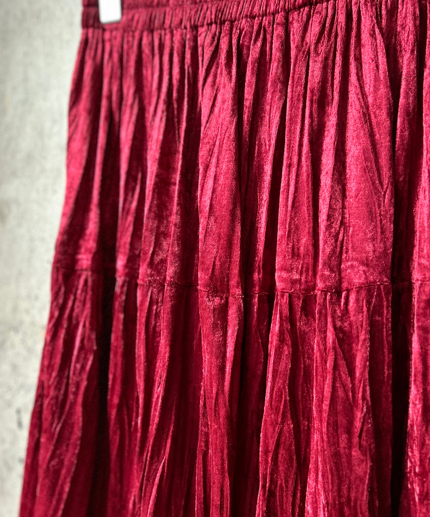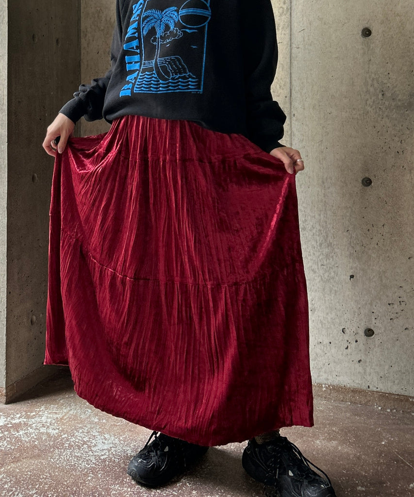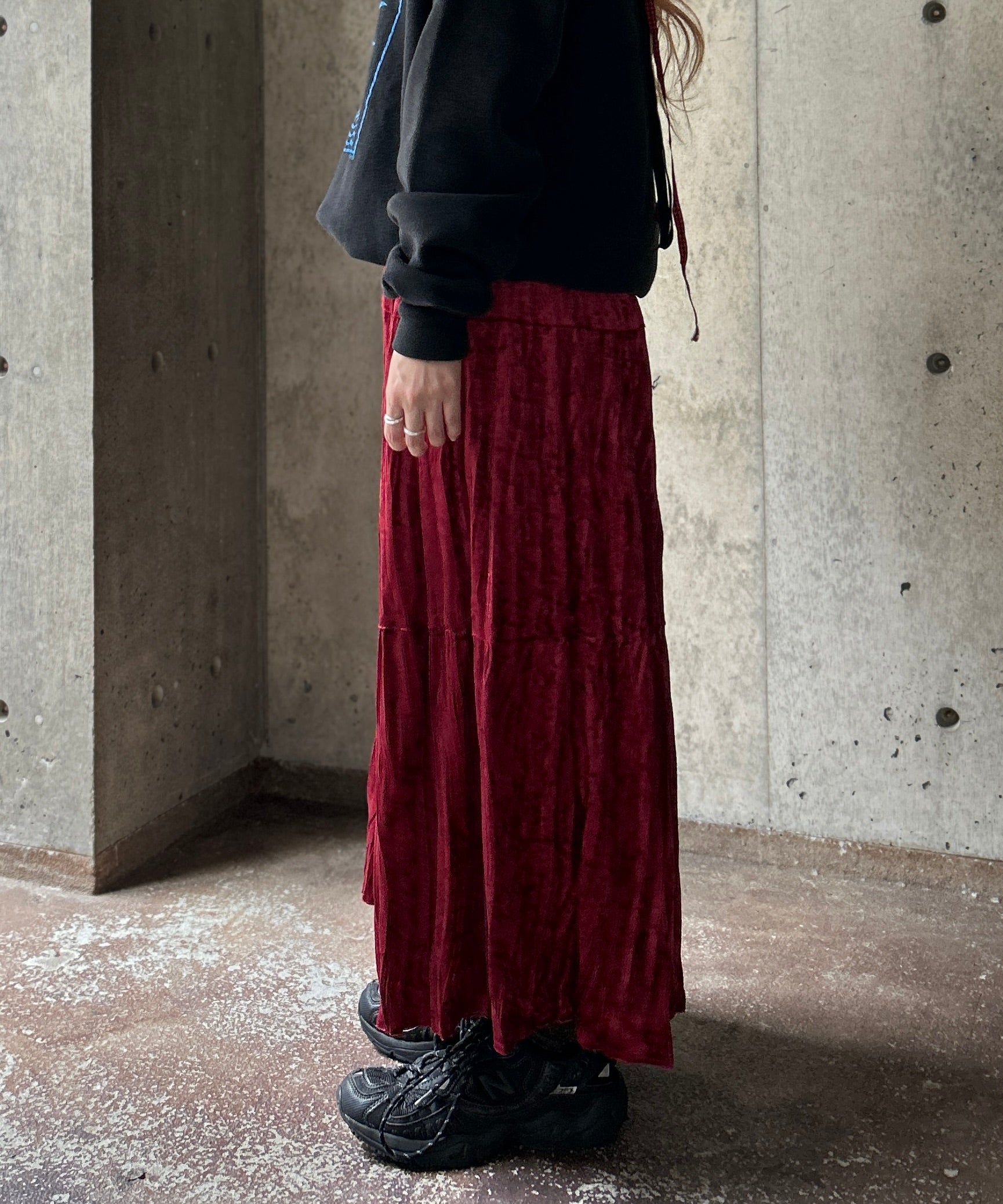クラッシュベロア生地のティアードスカート。