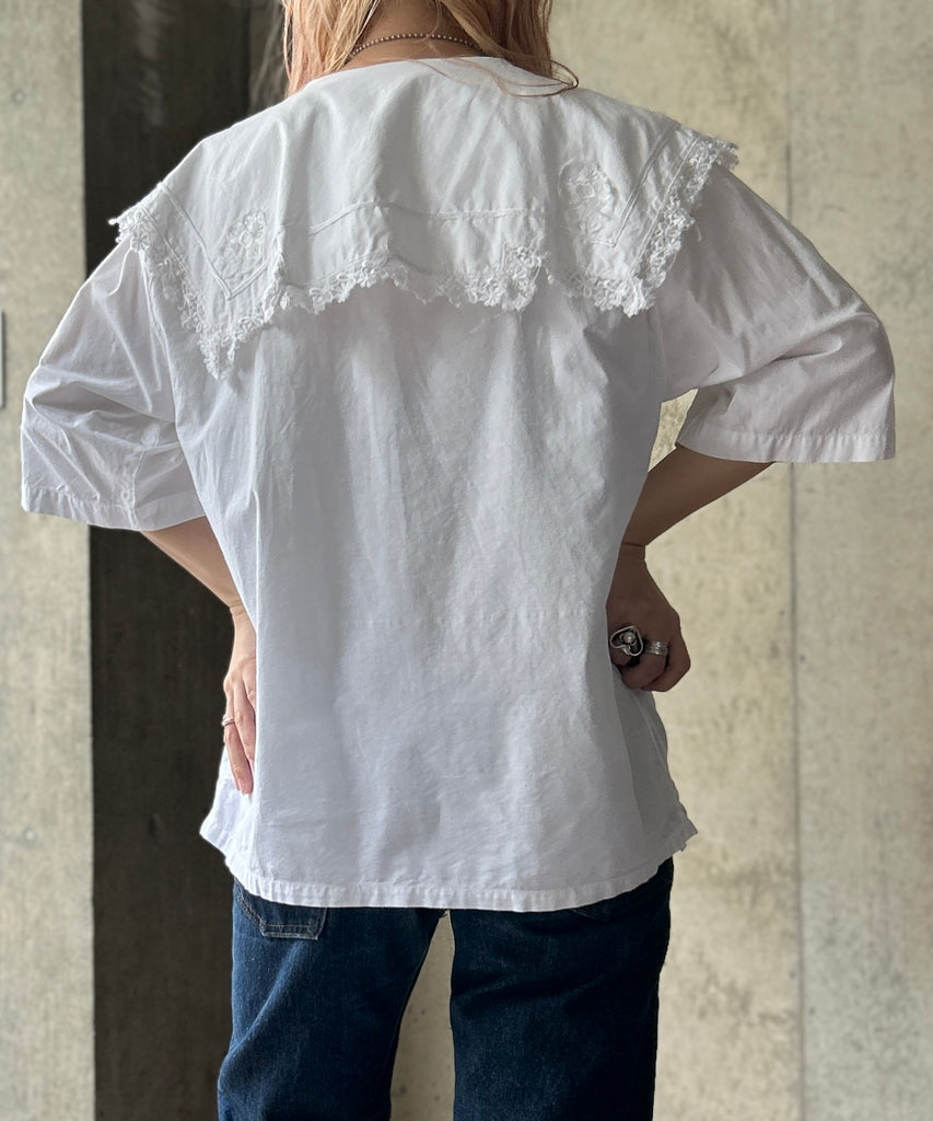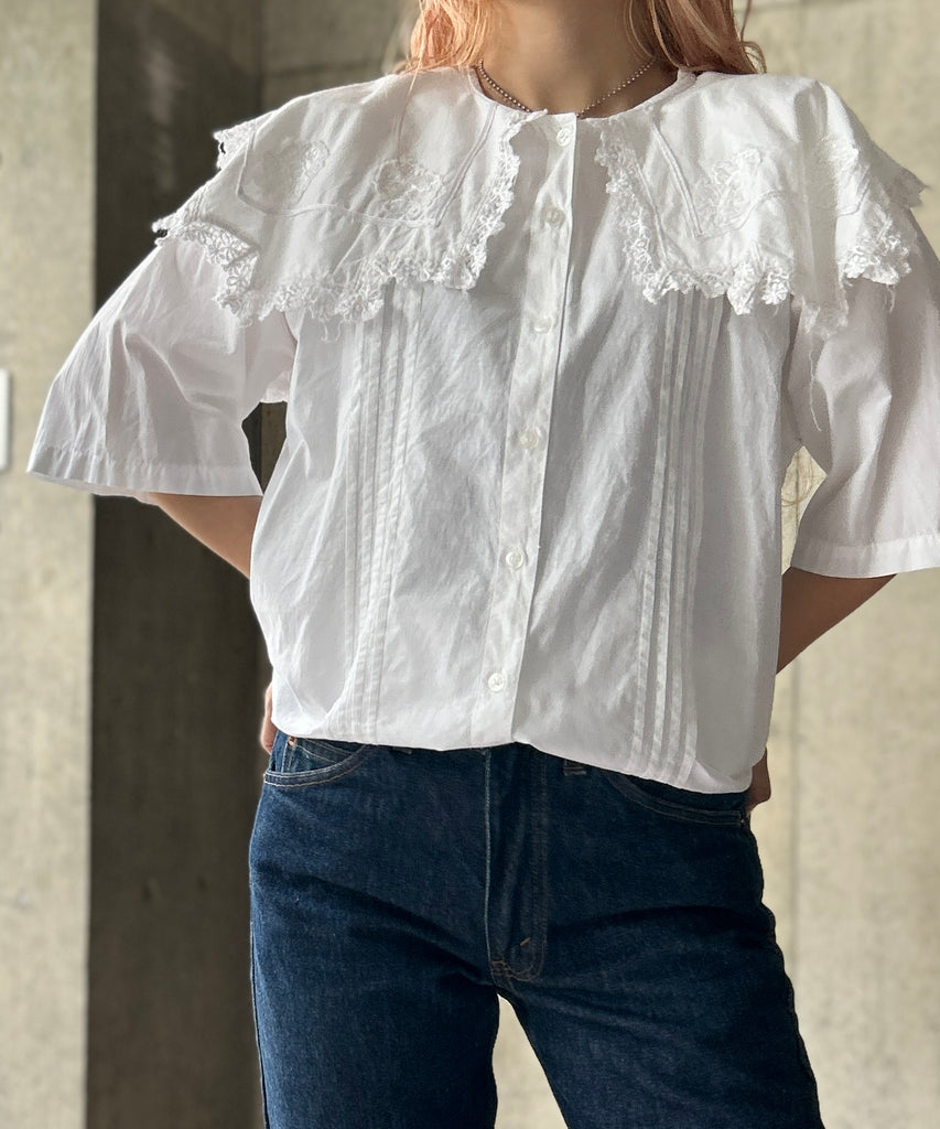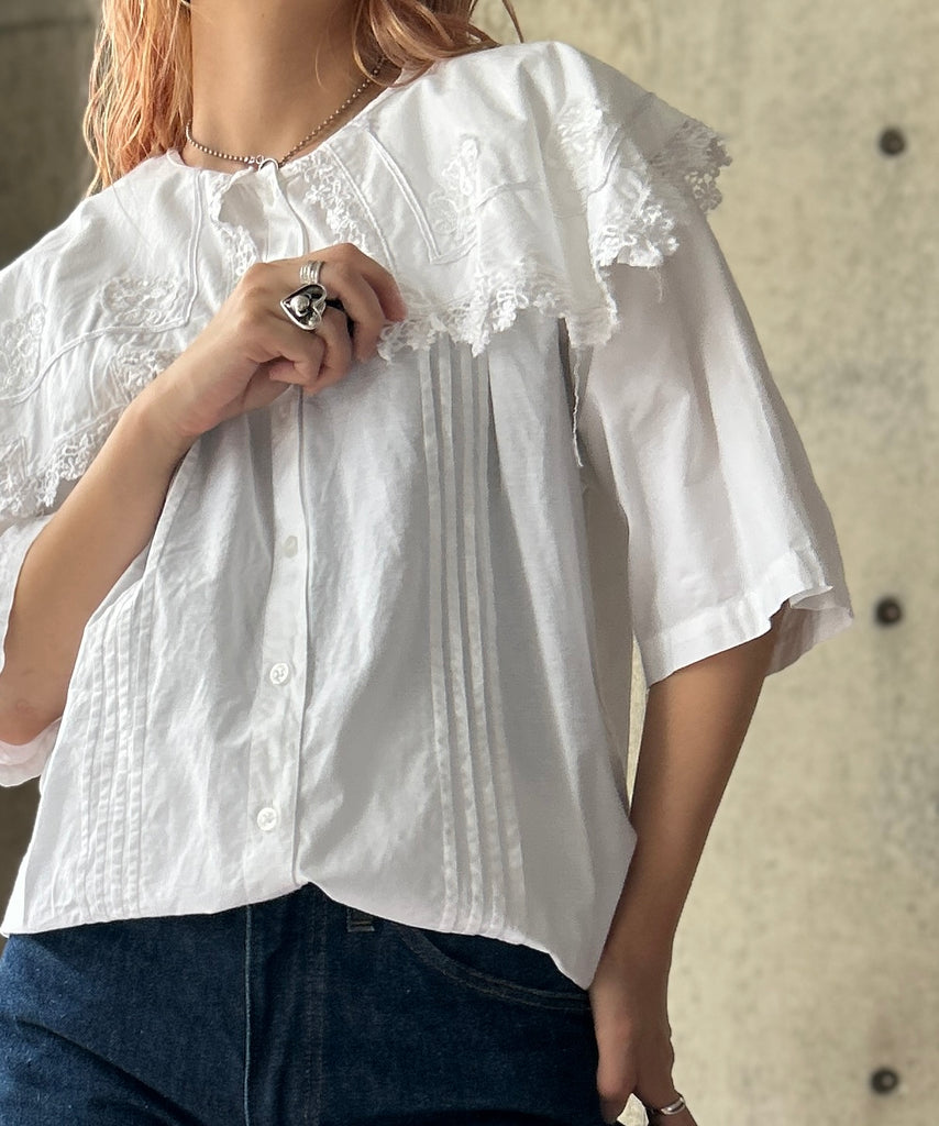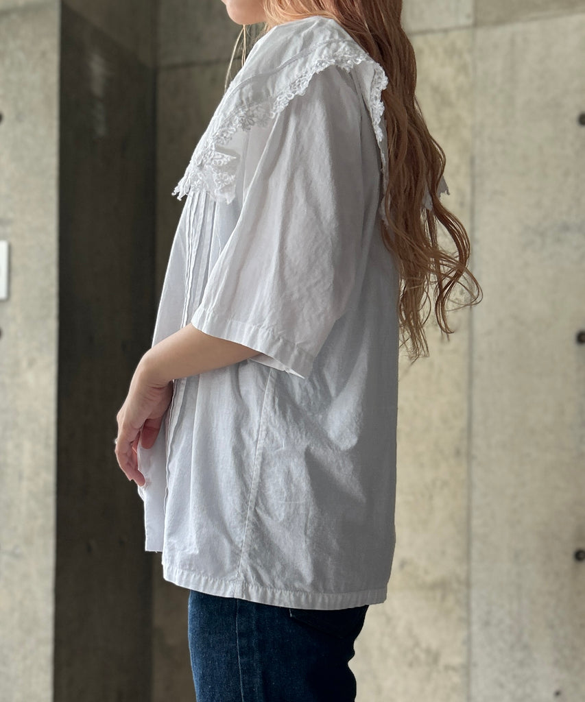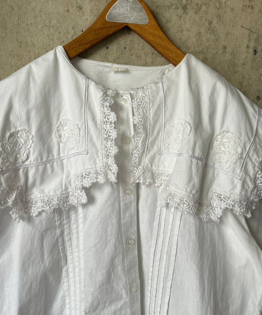 セーラーカラーのような大きめのレース付きの襟がかわいい◎