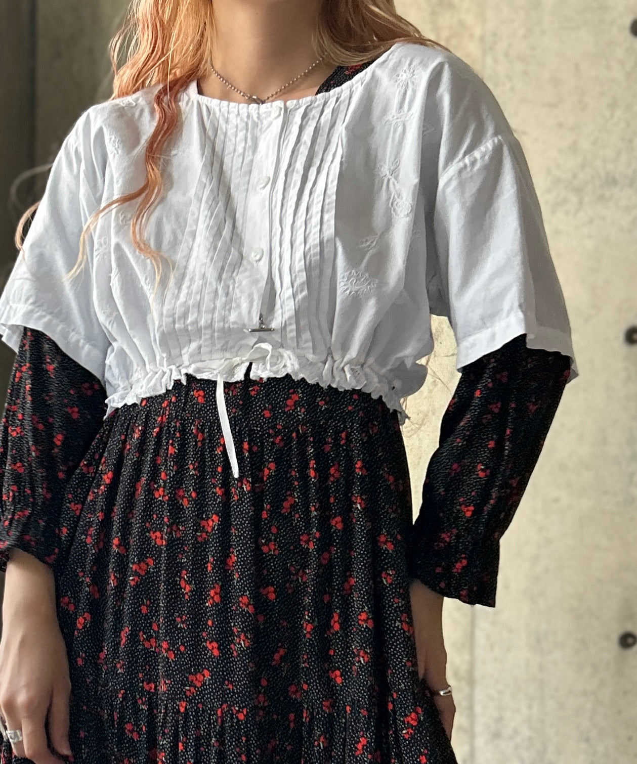 短め丈なので、シャツやワンピースに重ねたりとビスチェのような