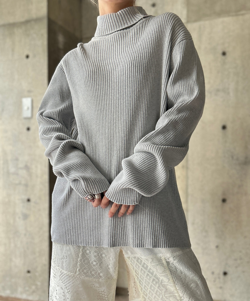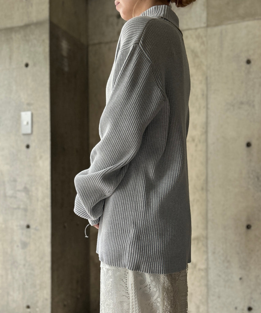 明るめのグレーカラー、ゆったりとオーバーめなサイズ感も嬉しいポイント。