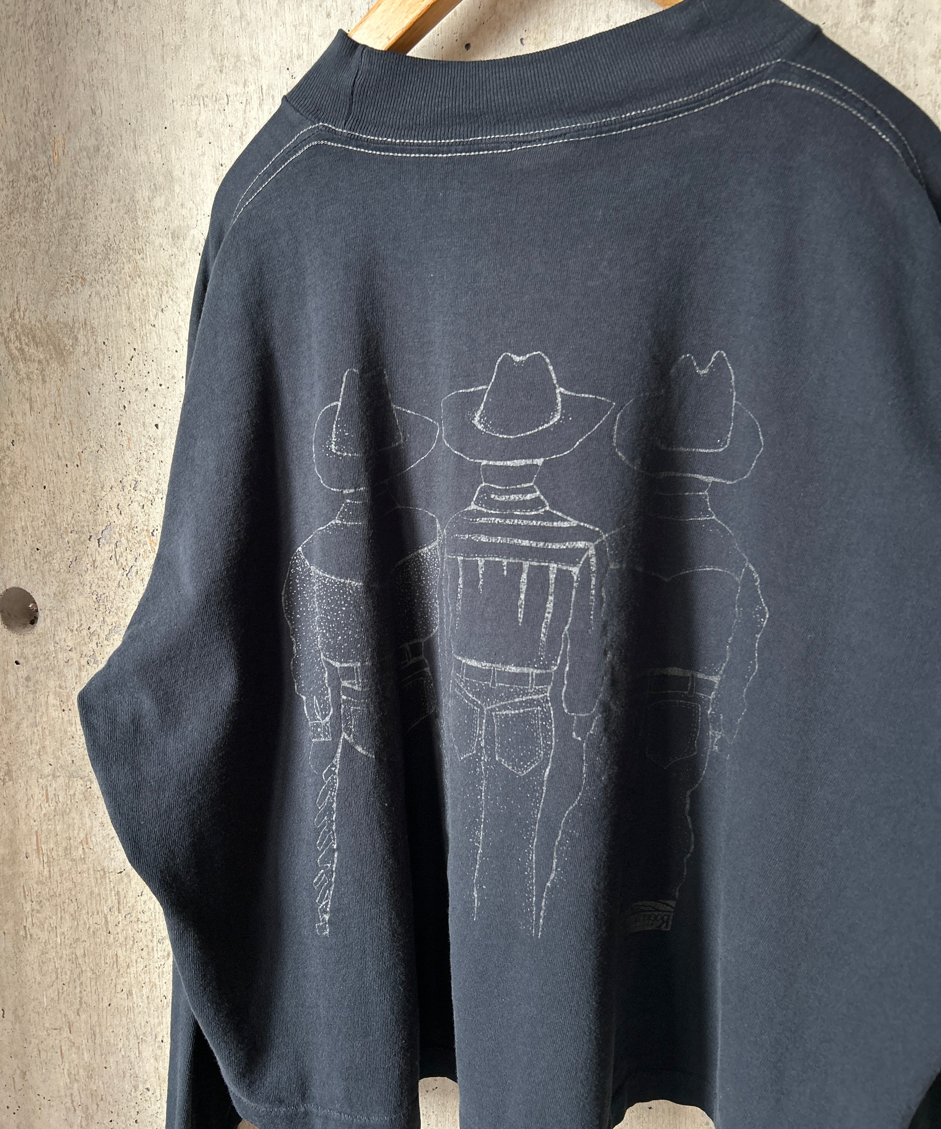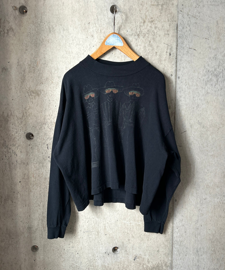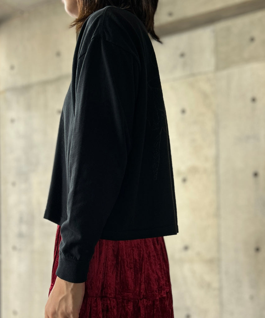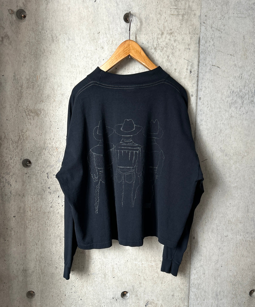 少し高めのモックネック、ショート丈の珍しいロンT。
