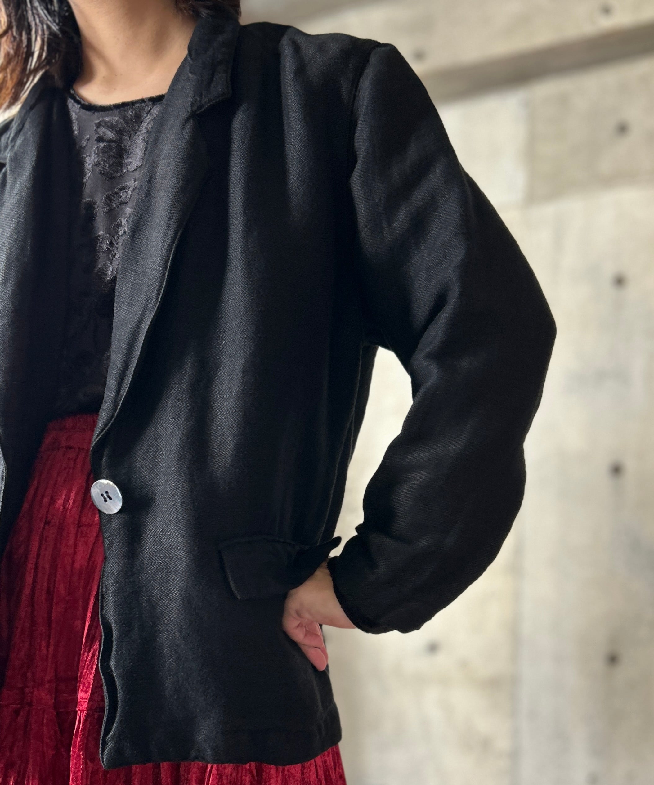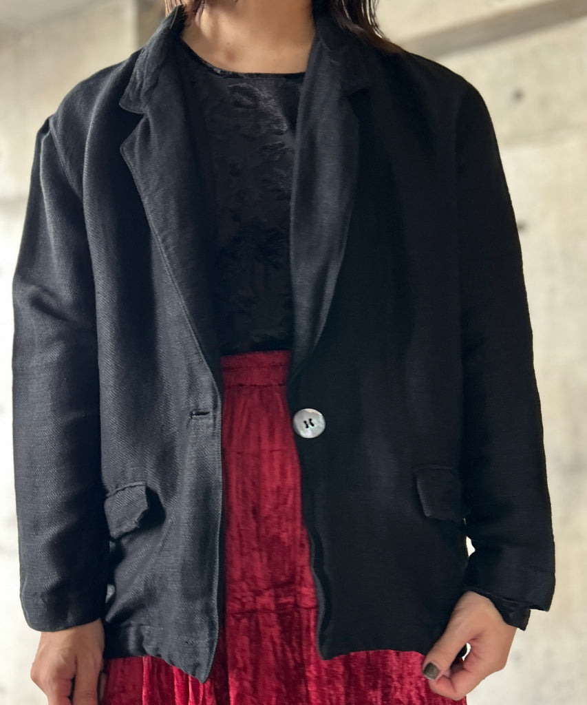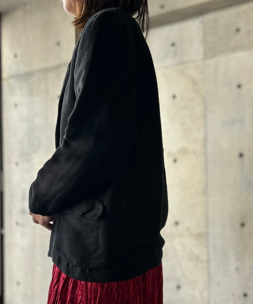 裏地なし、柔らかめのカジュアルなカジュアルな生地感のジャケット。
