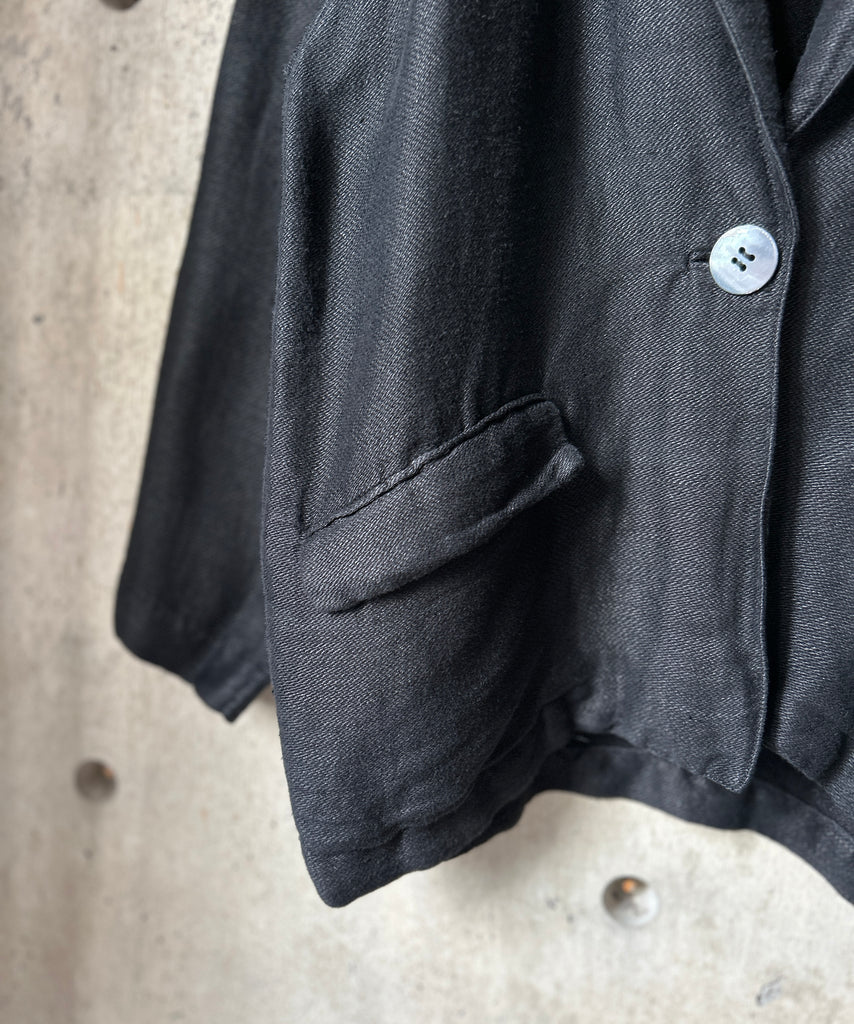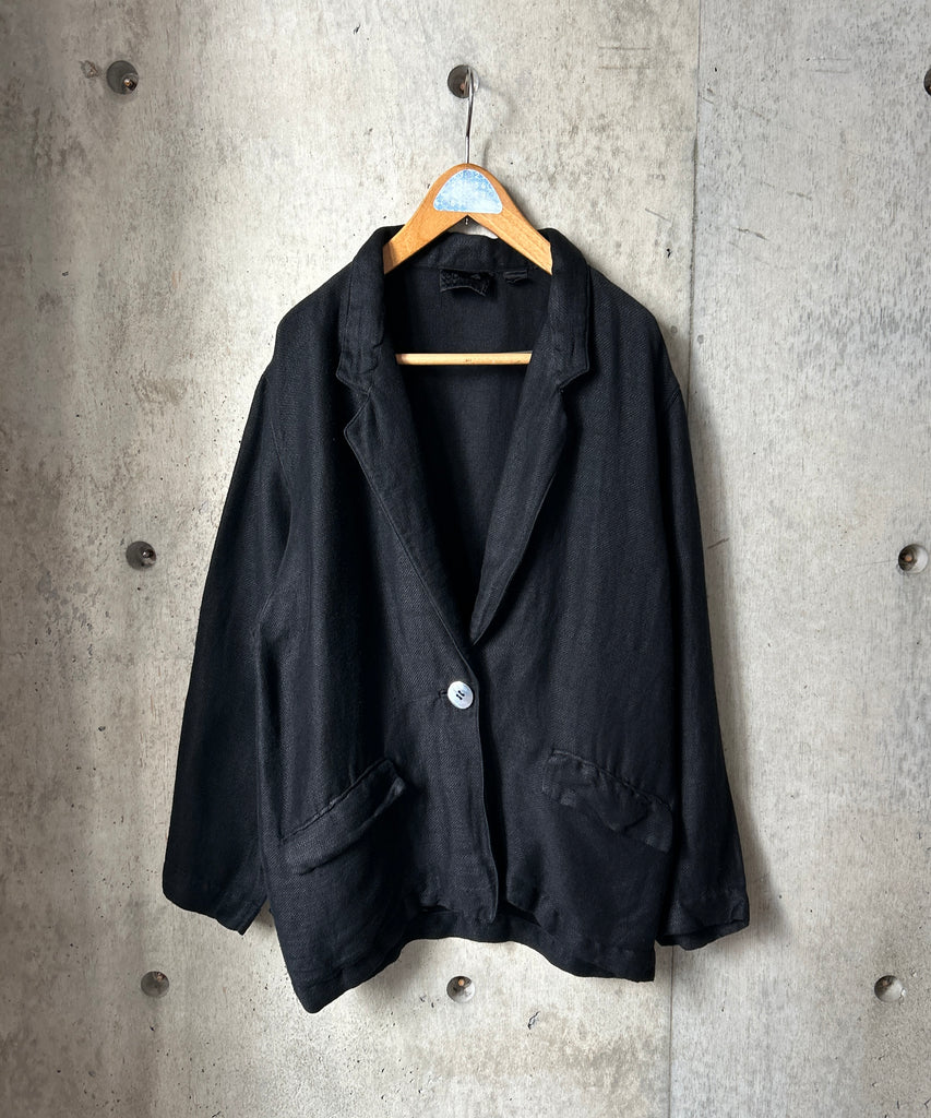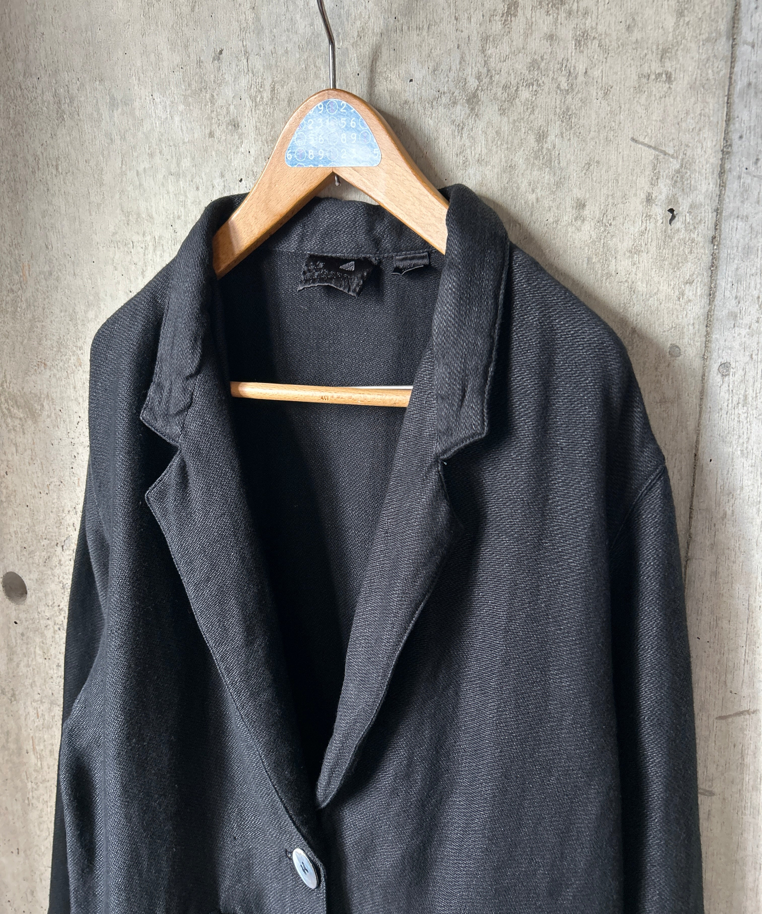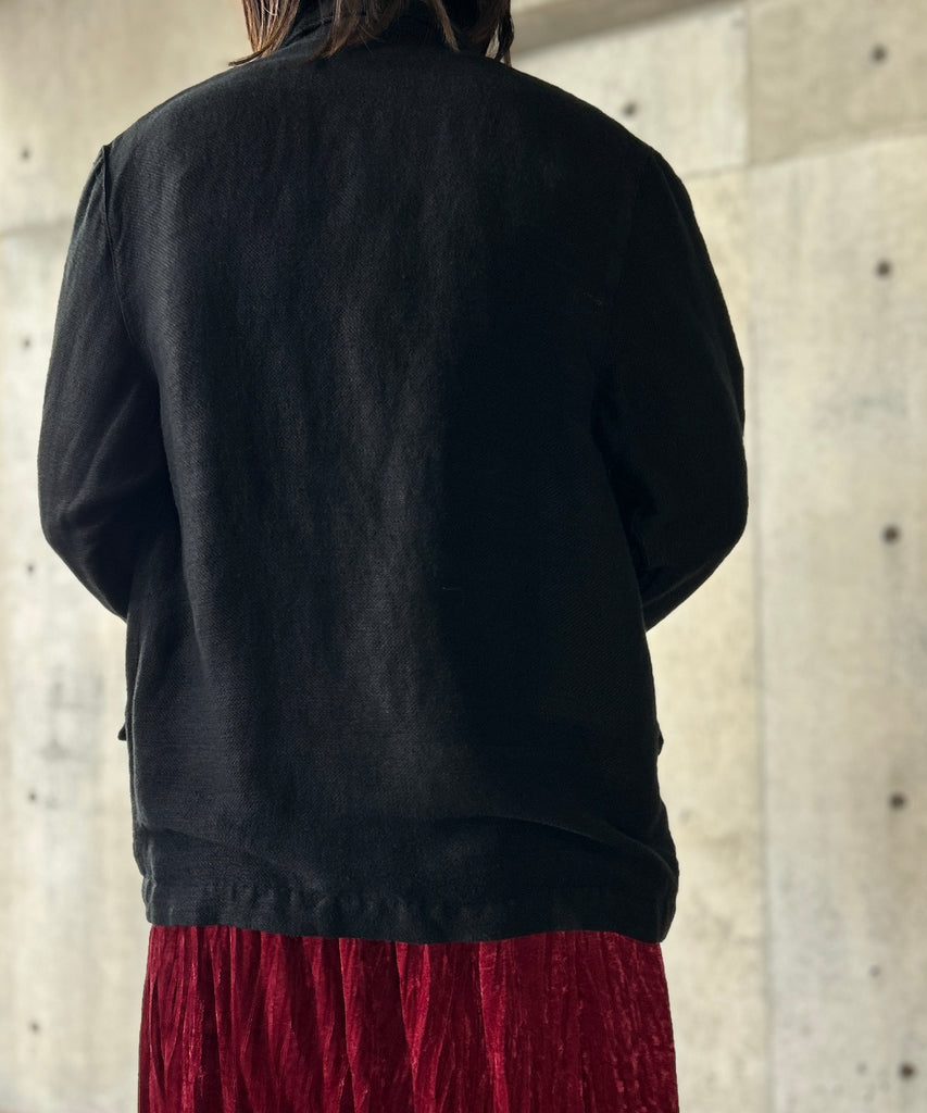 裏地なし、柔らかめのカジュアルなカジュアルな生地感のジャケット。