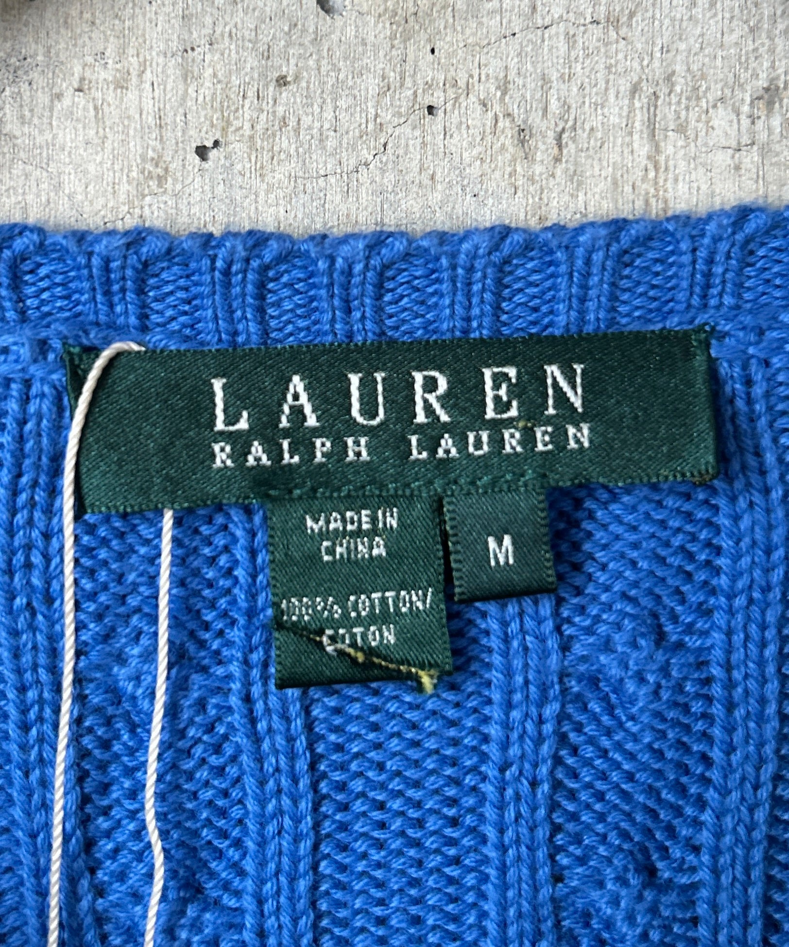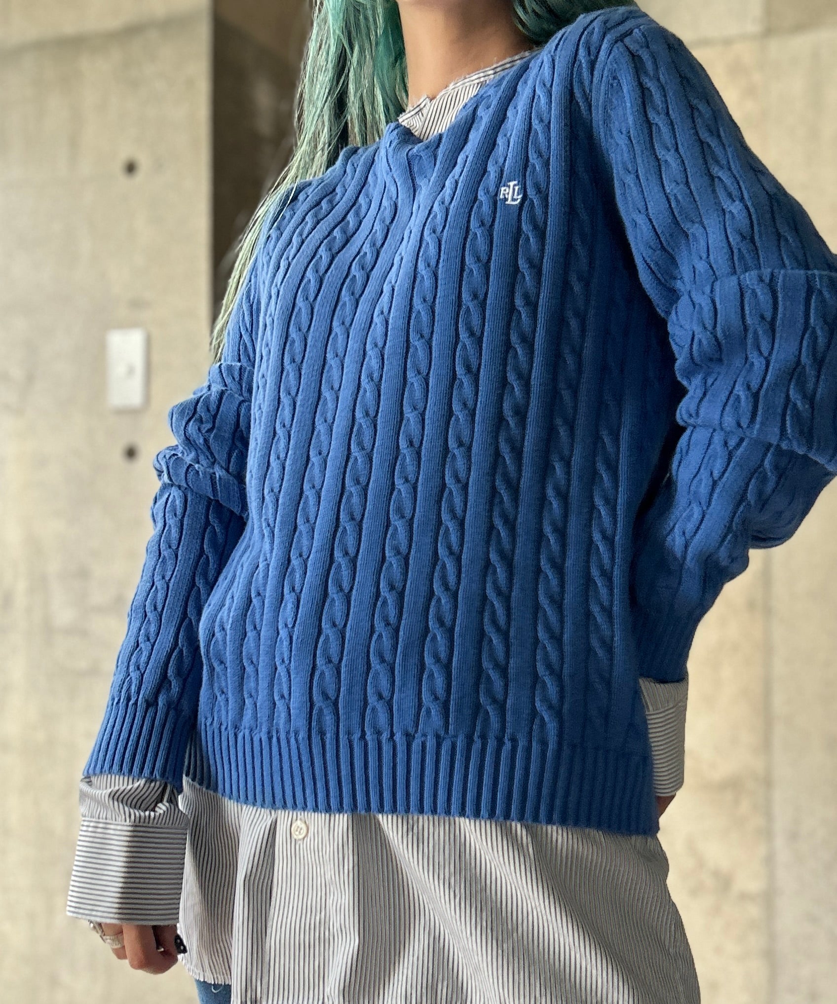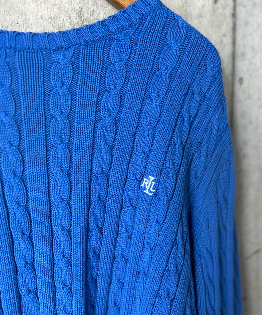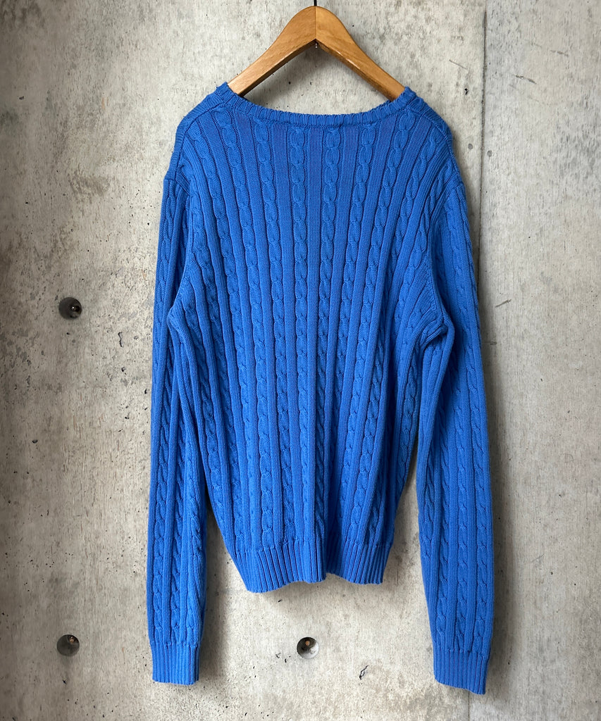 細めのケーブル編み、胸元のワンポイント刺繍がシンプルすぎないgoodデザイン。